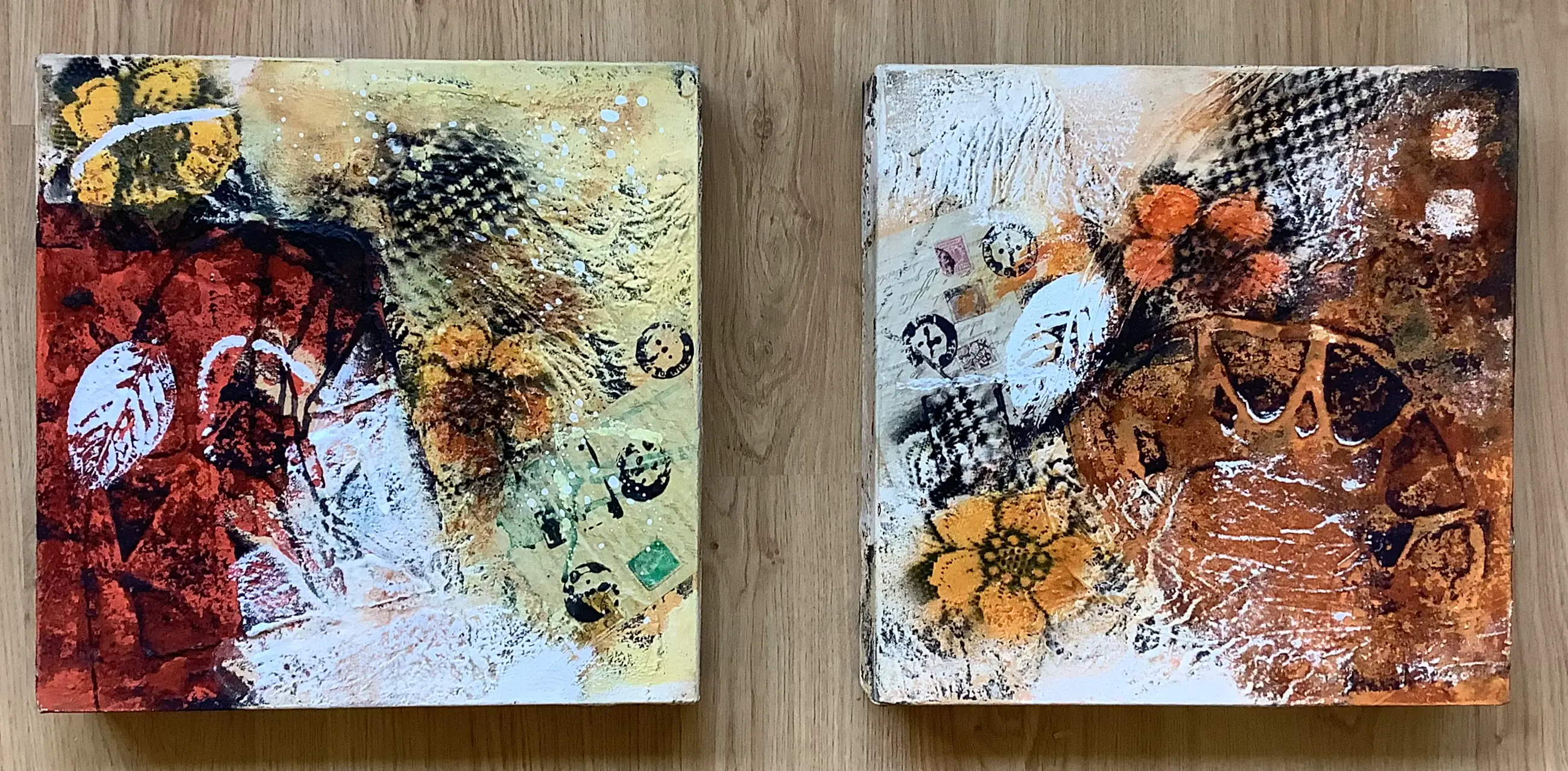 Afmeting schilderij: Beide 40 x 40 cm, hoogte 7 cm!