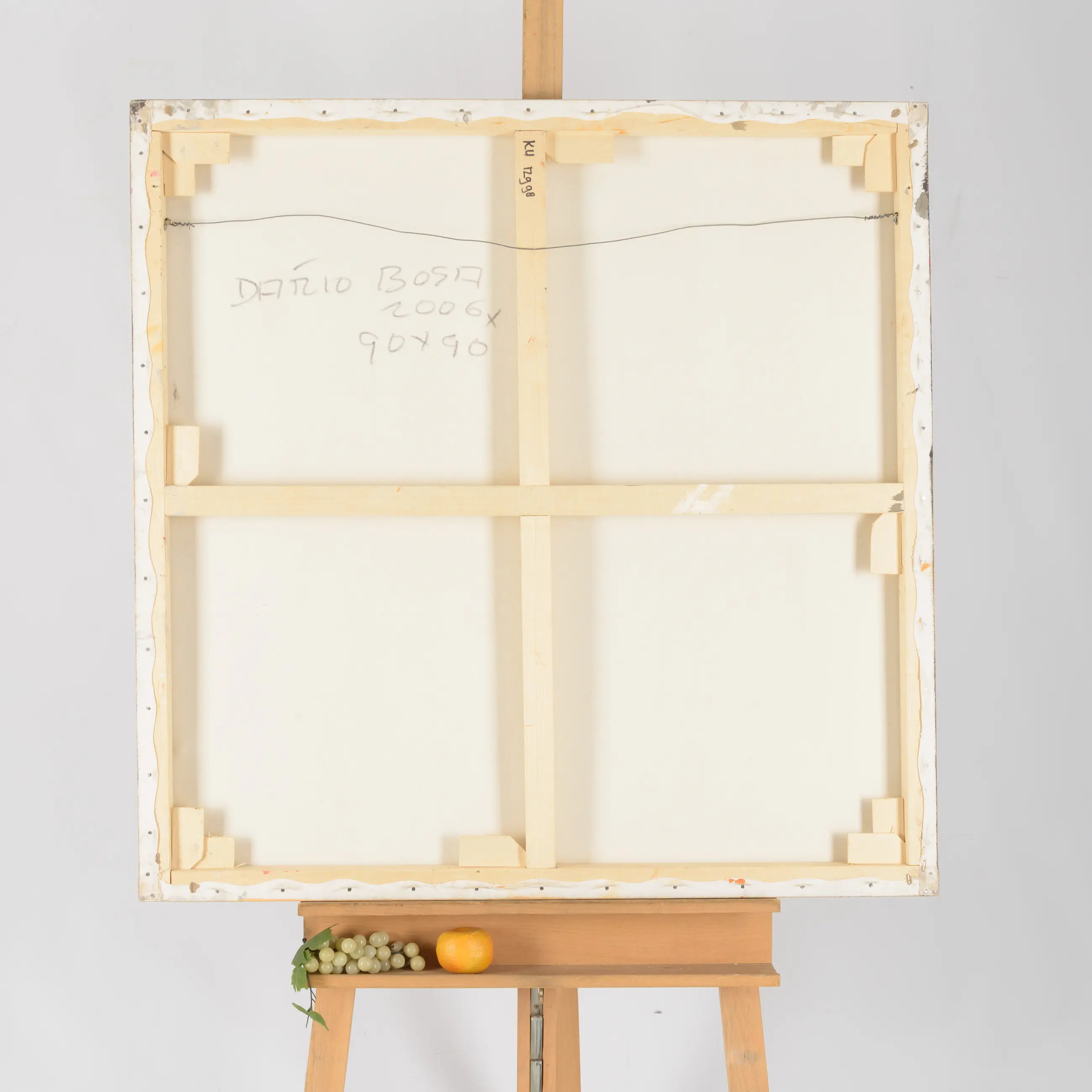 Dit grote werk op doek van de Braziliaanse kunstenaar Dario Bosa is een krachtig voorbeeld van zijn veelzijdigheid en expressieve stijl. Met verf, stempels en verschillende gemengde technieken creëert Bosa een gelaagd en dynamisch geheel dat de toeschouwer direct aanspreekt. De combinatie van structuur, ritme en kleur maakt dit schilderij niet alleen visueel intrigerend, maar ook tastbaar en levendig.