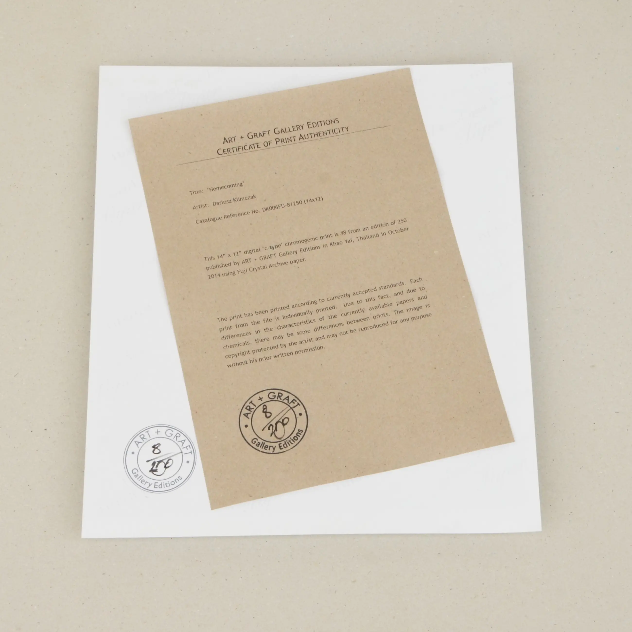 ● Plaat gesigneerd recto ● Genummerde galerijstempel verso ● Titel onder afbeelding ● PDF-certificaat van afdrukauthenticiteit op aanvraag