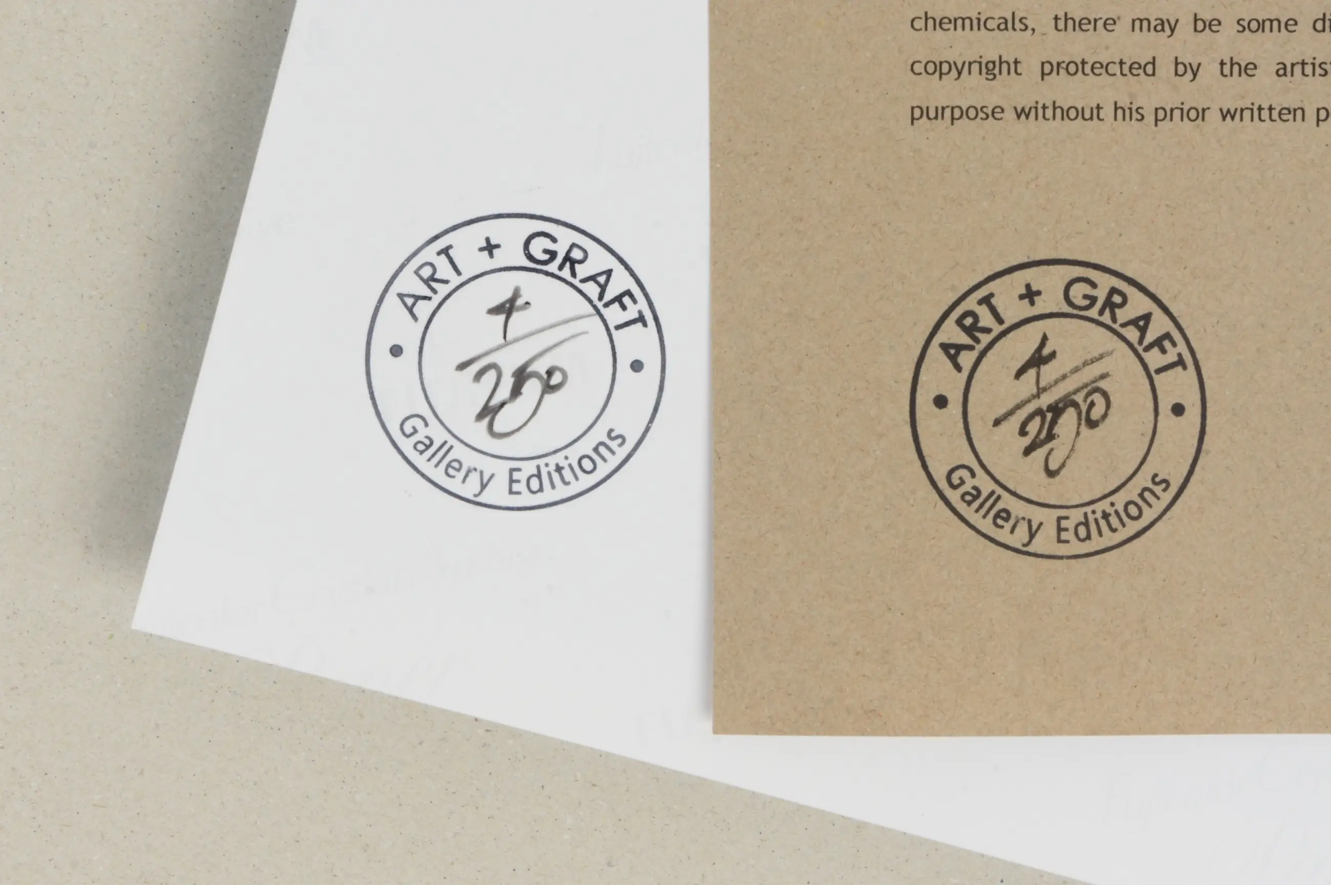 ● Plaat gesigneerd aan de voorzijde ● Genummerde galerijstempel op de achterzijde ● Titel onder de afbeelding ● Certificaat van echtheid van de afdruk