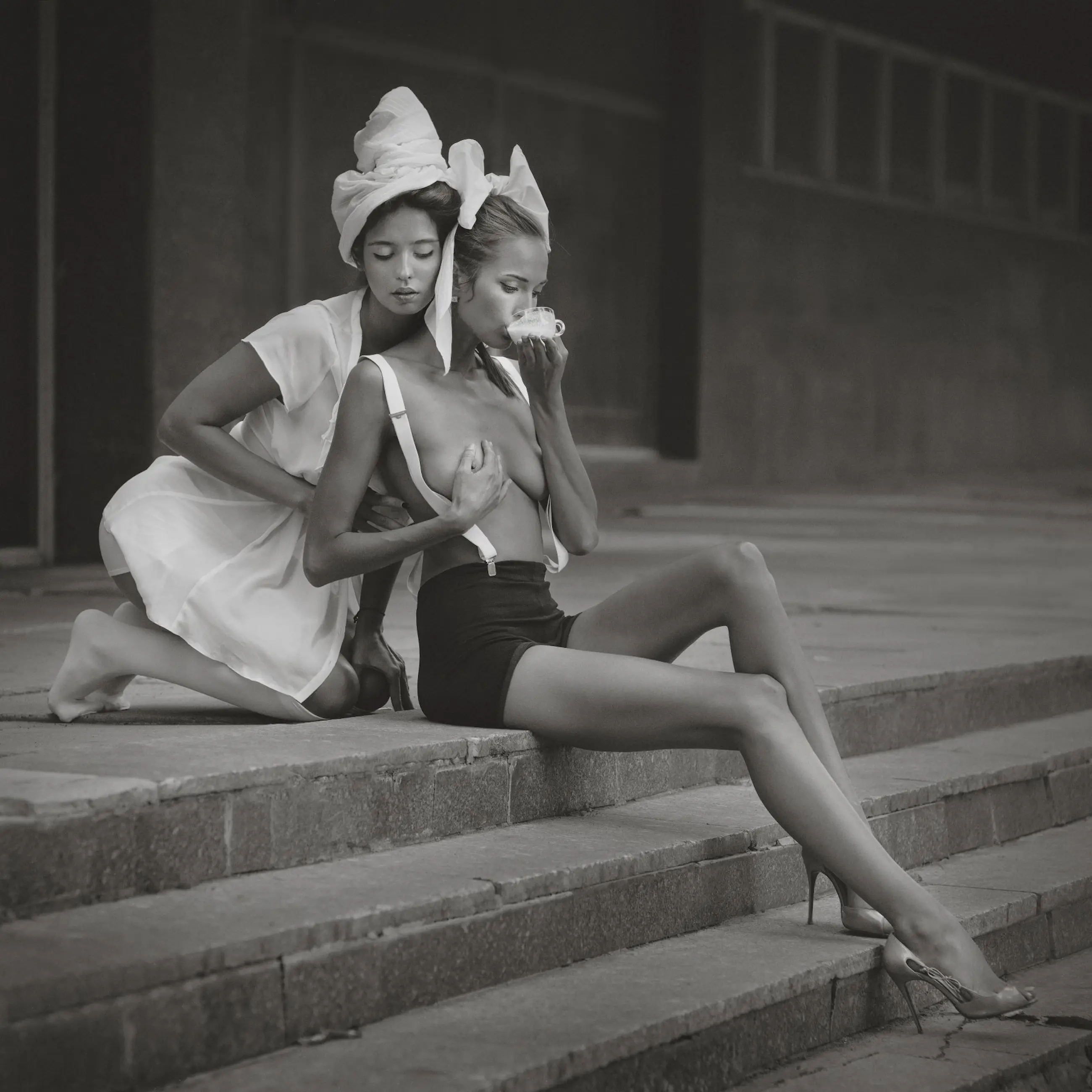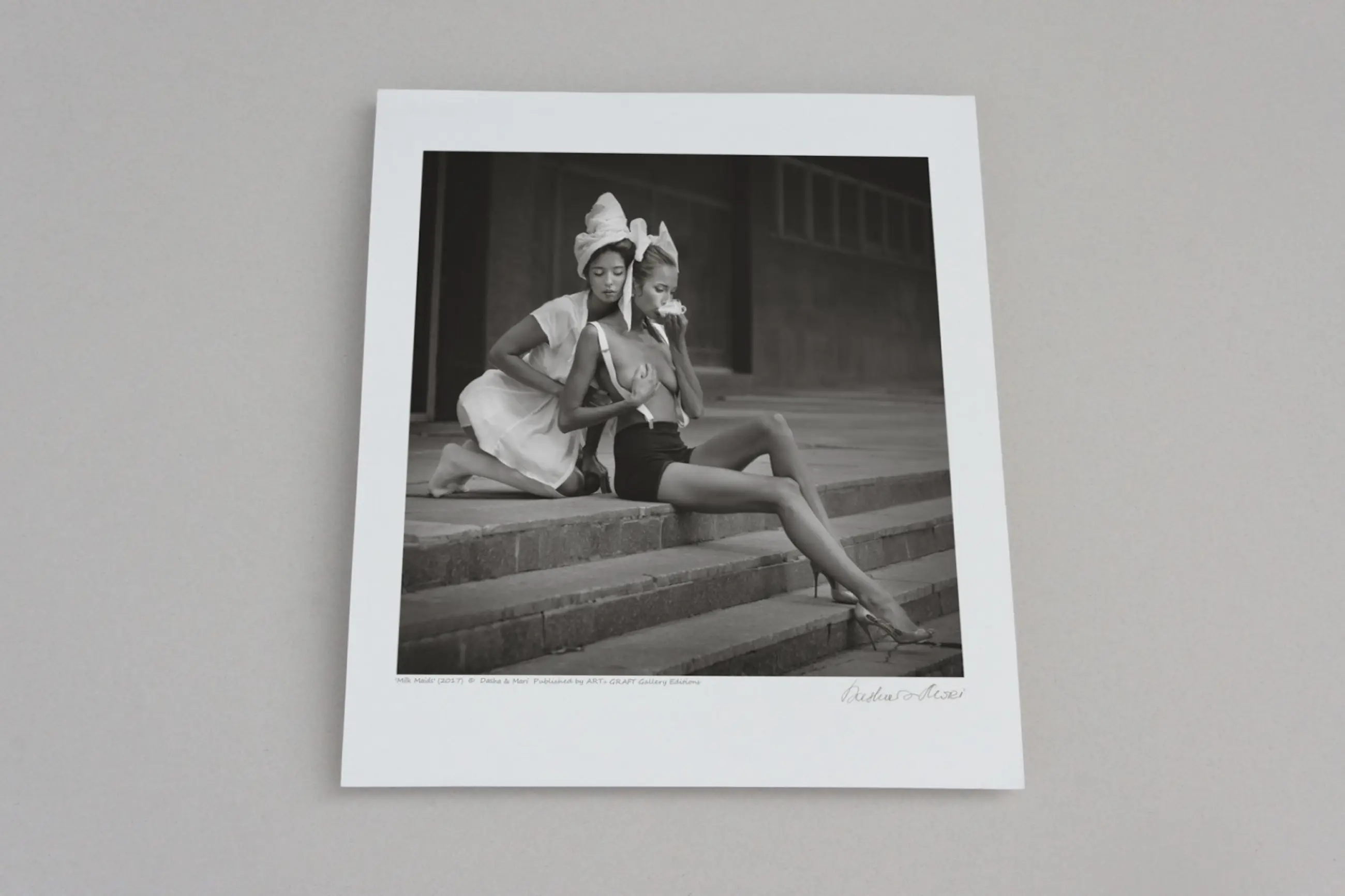 Dasha en Mari hebben een unieke manier om vrouwelijke schoonheid vast te leggen. Hun stijlvolle streven naar perfectie heeft al een indrukwekkend oeuvre opgeleverd dat brede erkenning heeft gekregen op het internationale toneel van de fotografie. Gesigneerde chromogene print op mat Fuji Crystal Archive- papier