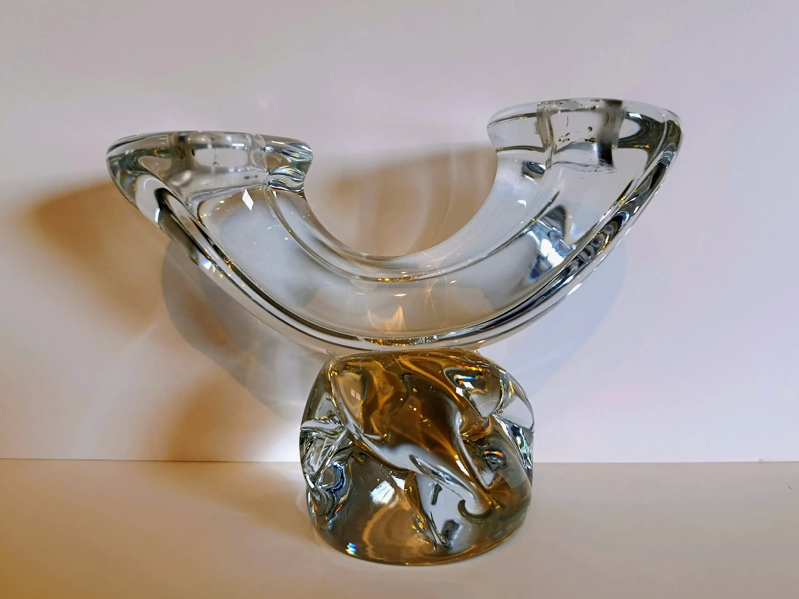 Deze prachtige kandelaar weegt 2,155 kg en is 15 cm hoog en 20 cm breed. Een waar kunstwerk dat uw interieur zal verrijken. De elegantie komt tot uiting in elk detail, en het merk en het gegraveerde Kruis van Lotharingen op de basis getuigen van de authenticiteit. Trakteer uzelf of een geliefde op dit kostbare object dat traditie en verfijning combineert. Epoque-Art.be