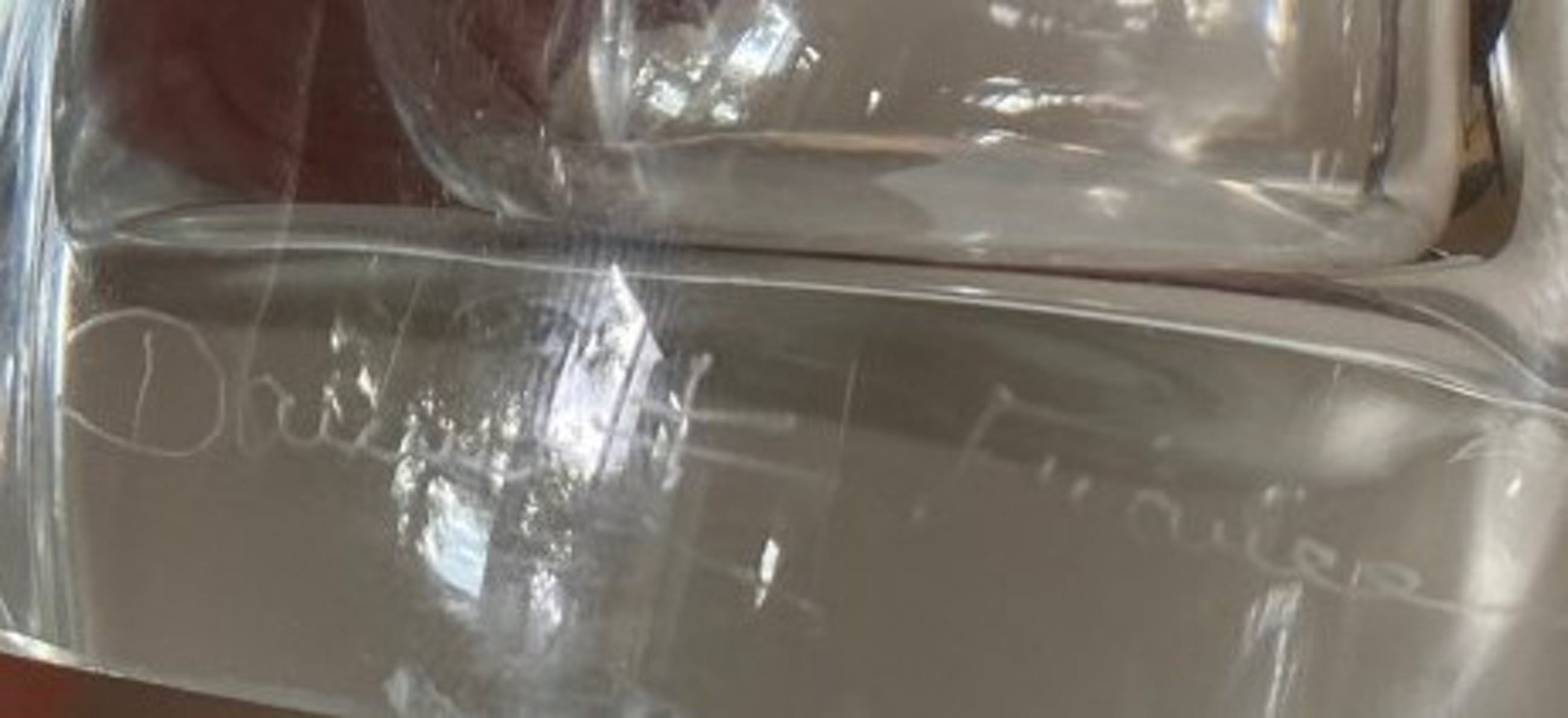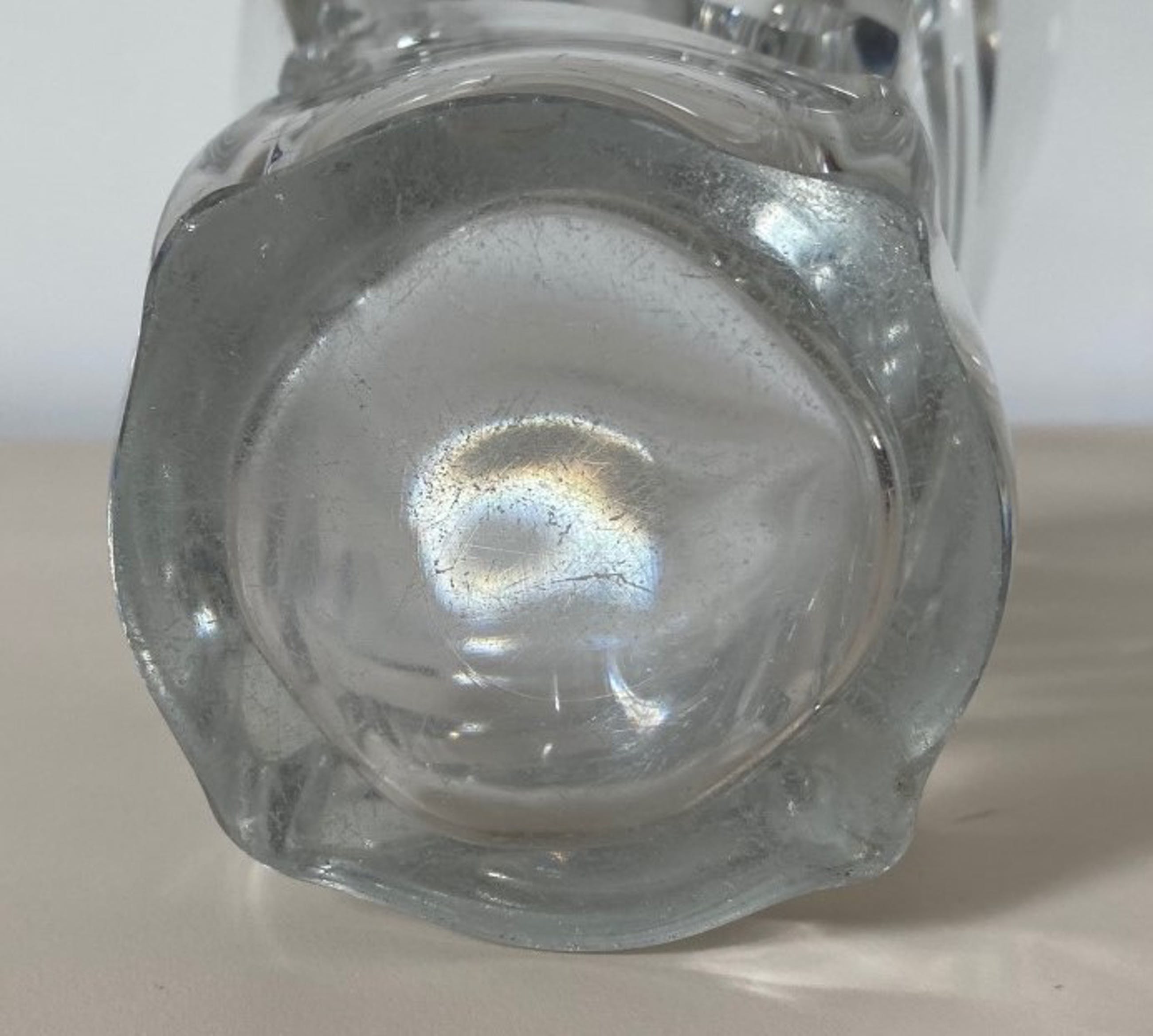 De vaas heeft aan de zijkant twee minimale stootpuntjes en op de voet een flinter.