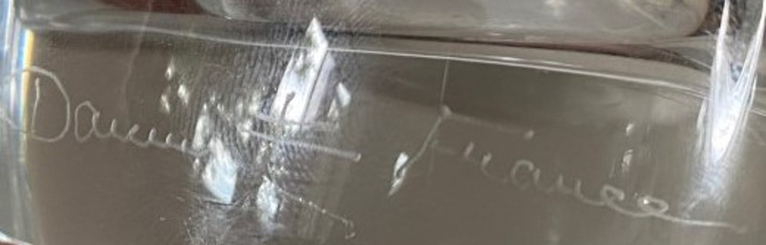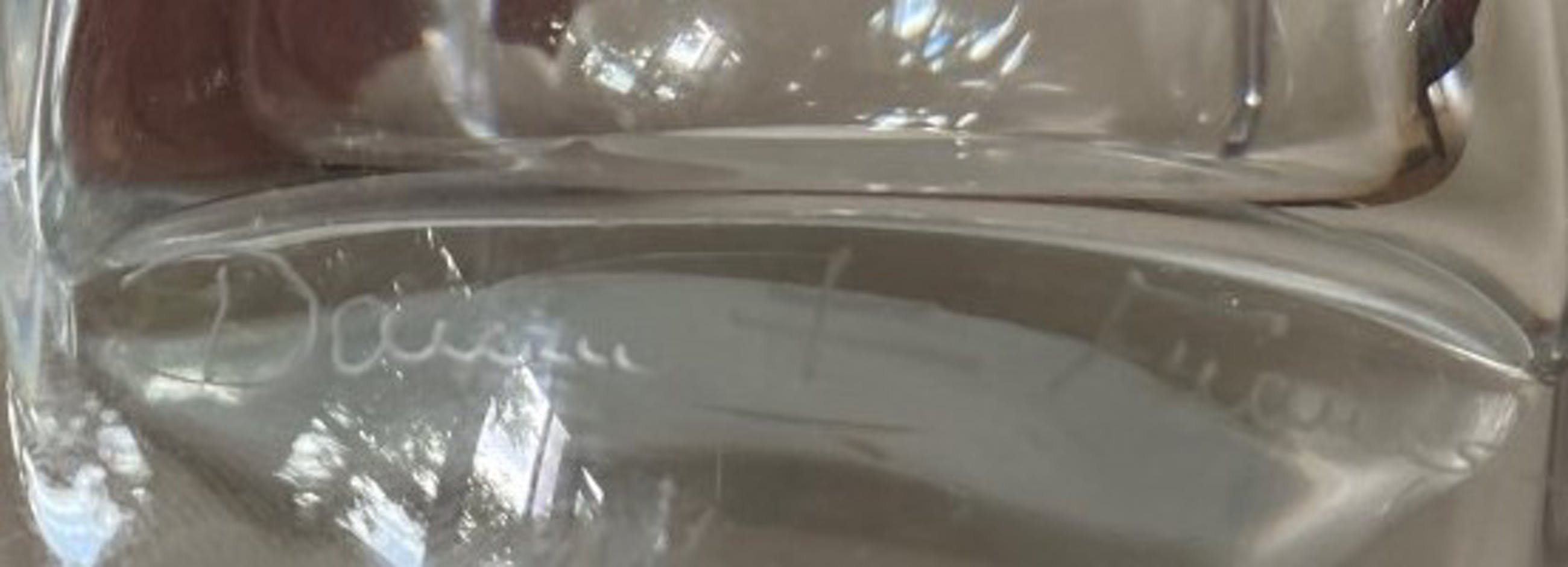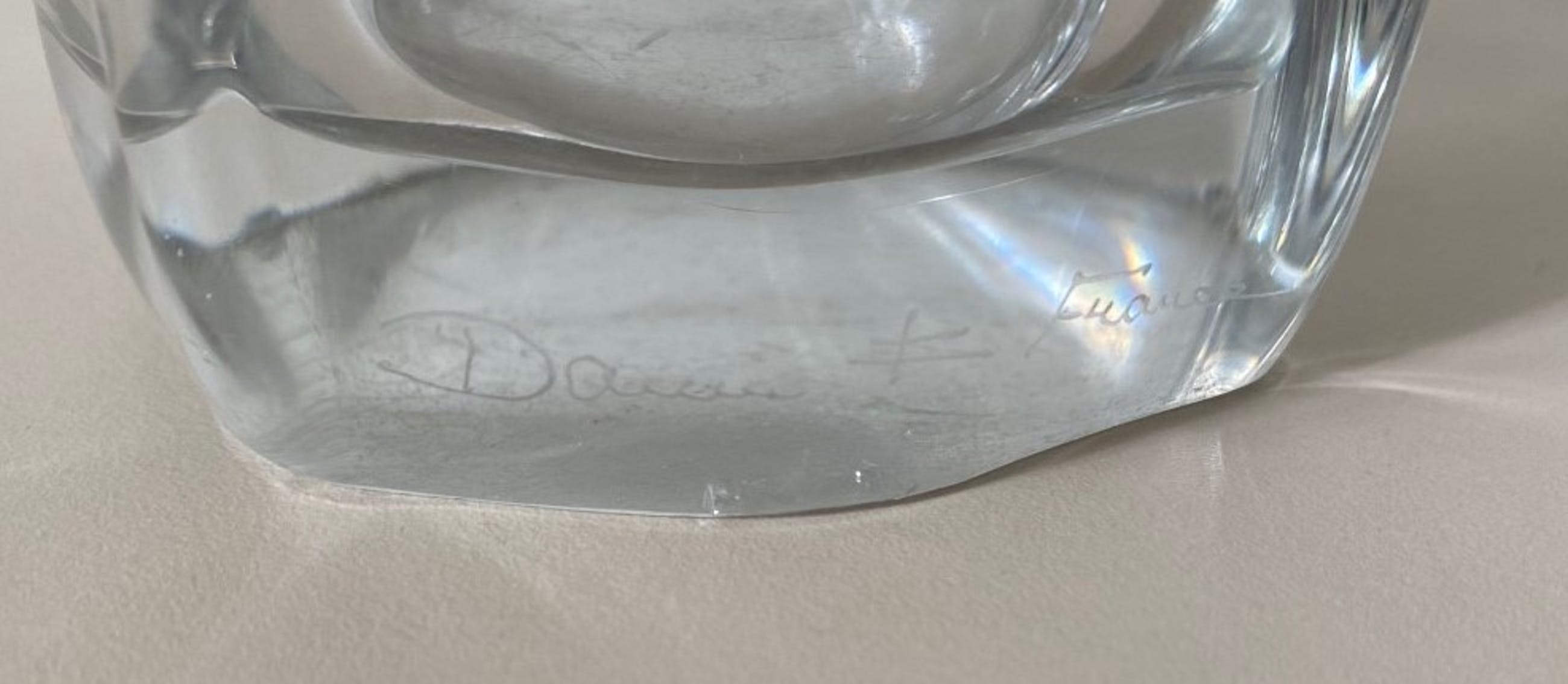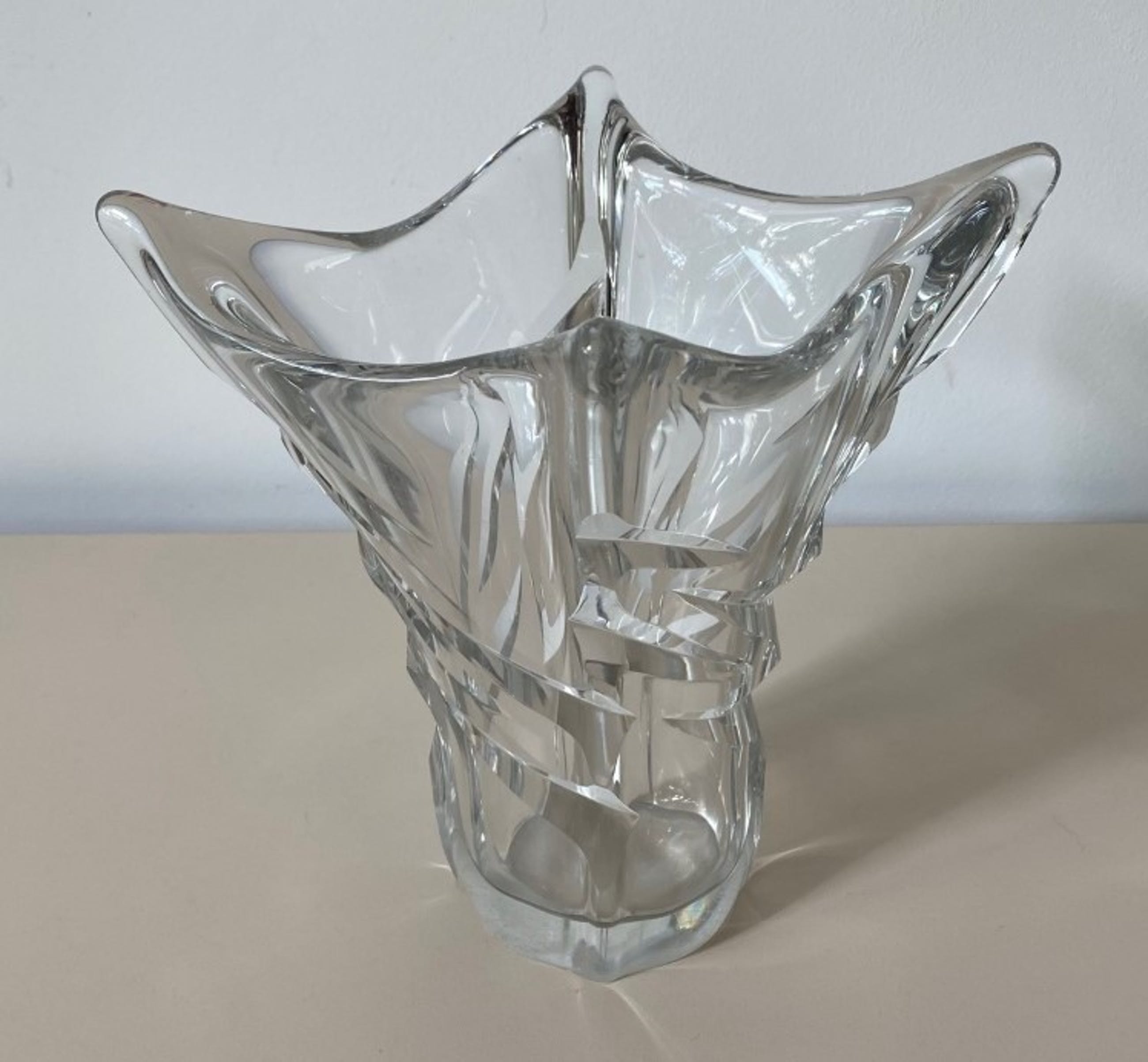 Kristallen facet geslepen vierkante vaas handgemaakt bij Daum uit Nancy in Frankrijk. In goede gebruikte conditie en aan de voorzijde met diamantpen gesigneerd.