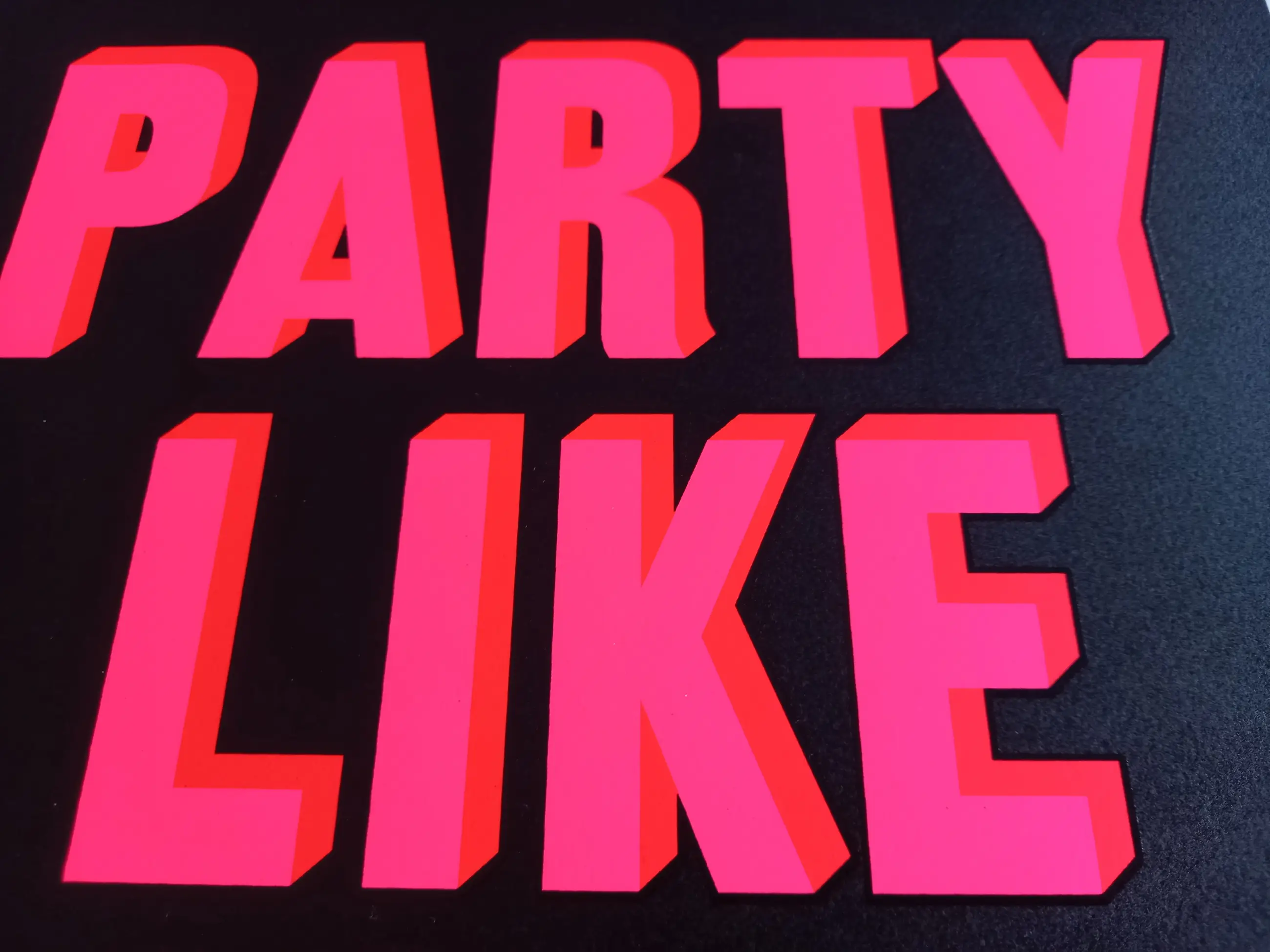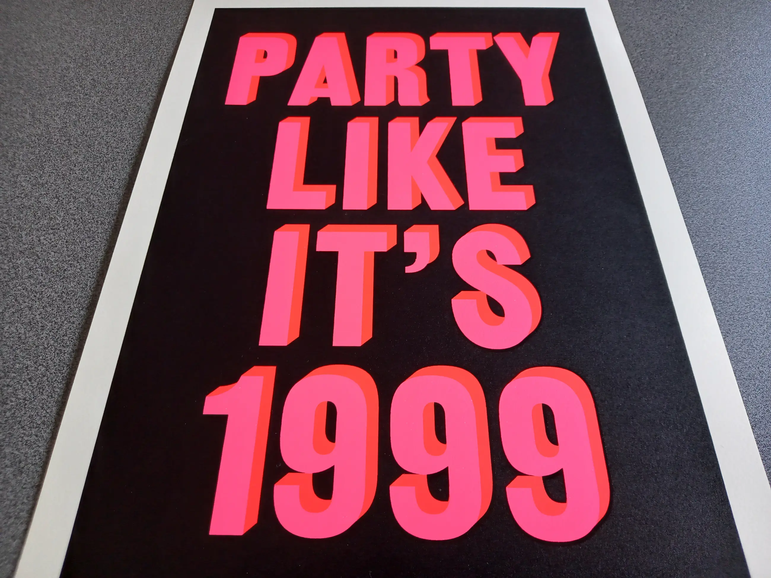Levendige zeefdruk in fluorescerende kleuren met matzwart van de Londense kunstenaar Dave Buonaguidi, ook bekend als Real Hackney Dave.