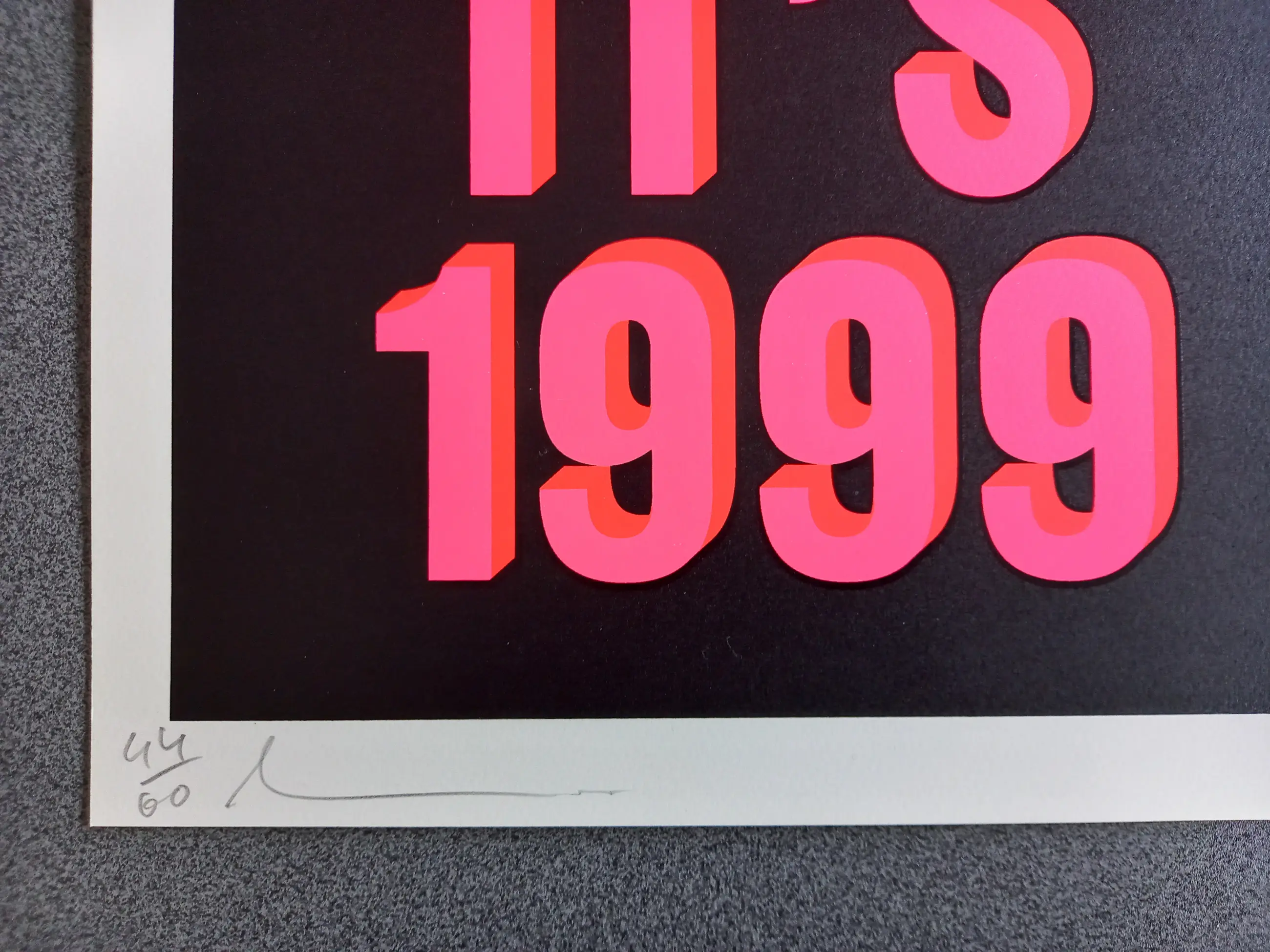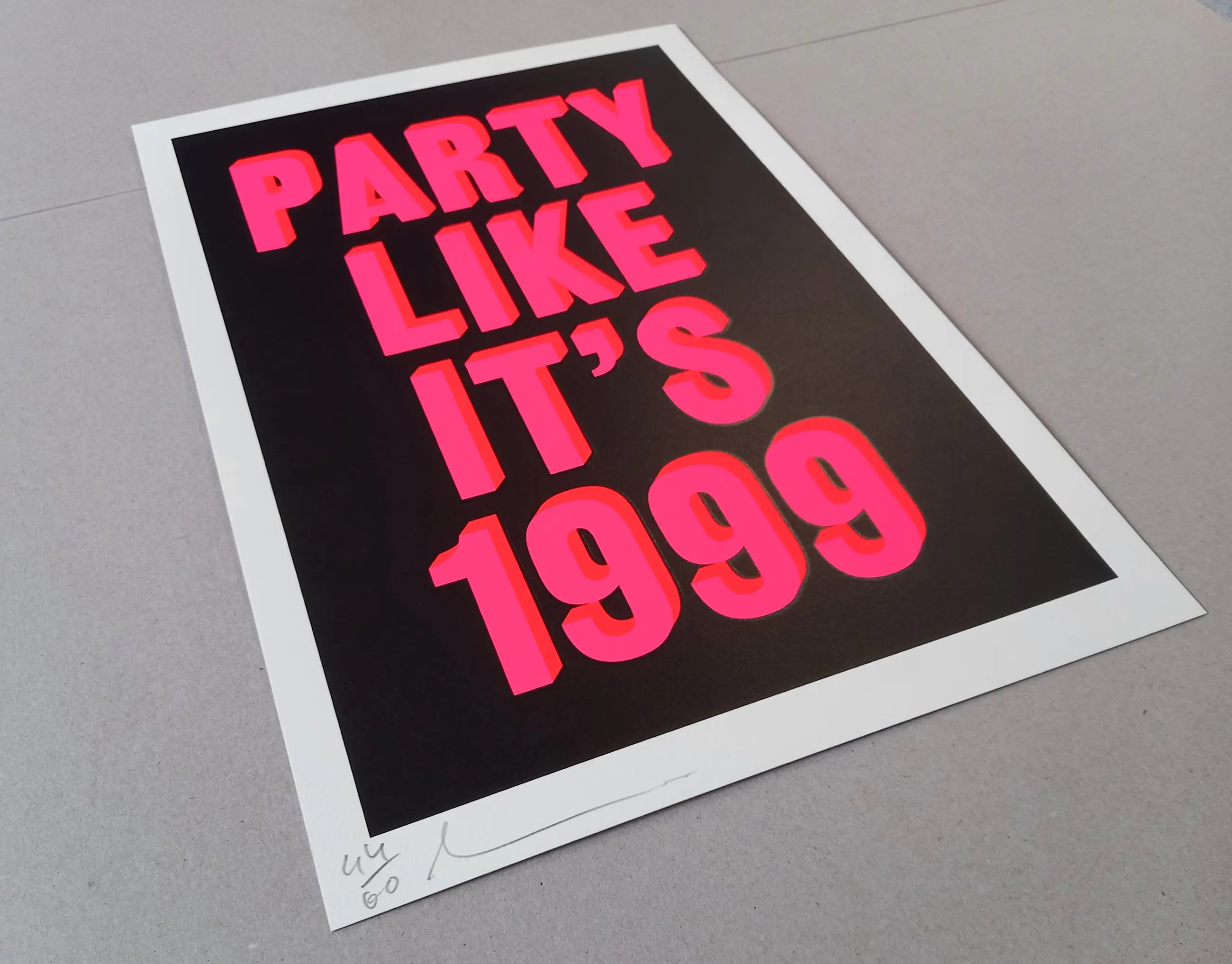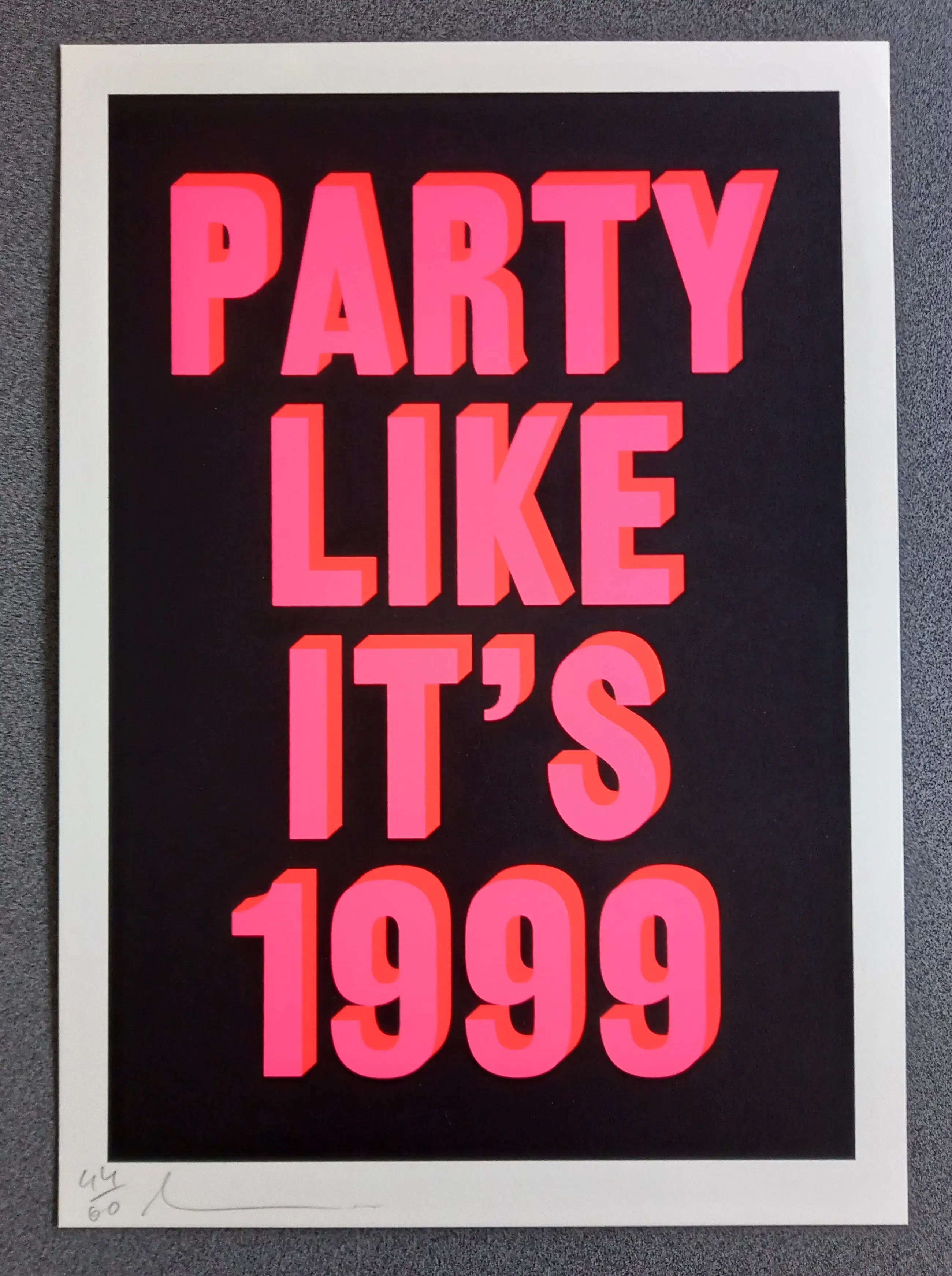 De zeefdruk is linksonder gesigneerd en genummerd 44/60.
