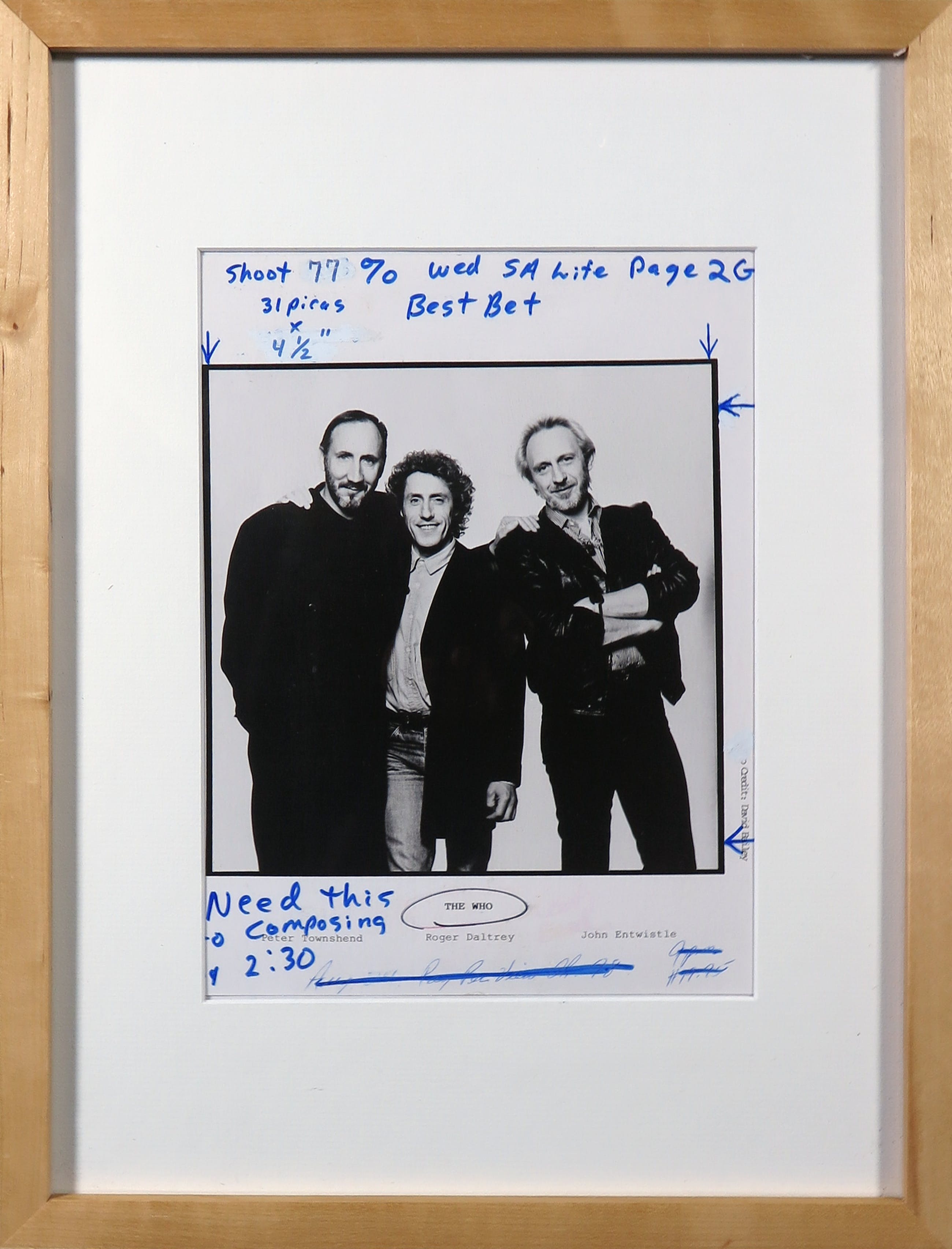 Op de foto is op verschillende plekken met de hand aantekeningen gemaakt door de redactie van een magazine. De foto is backstage gemaakt bij Live Aid in 1985 door fotograaf David Bailey.
