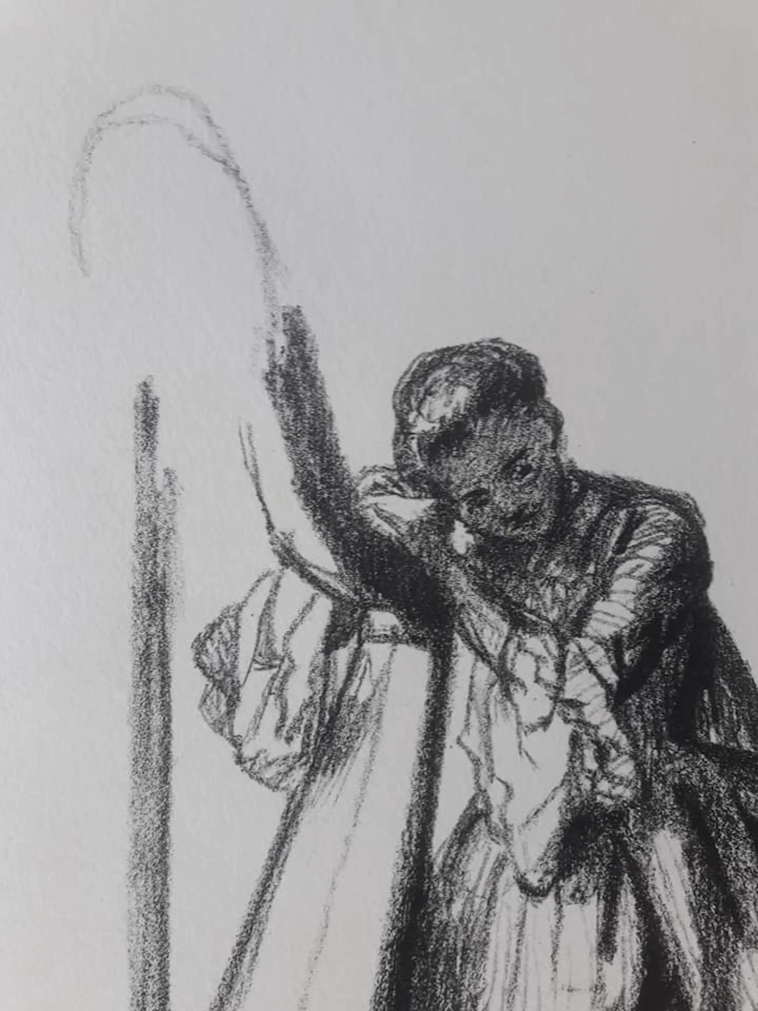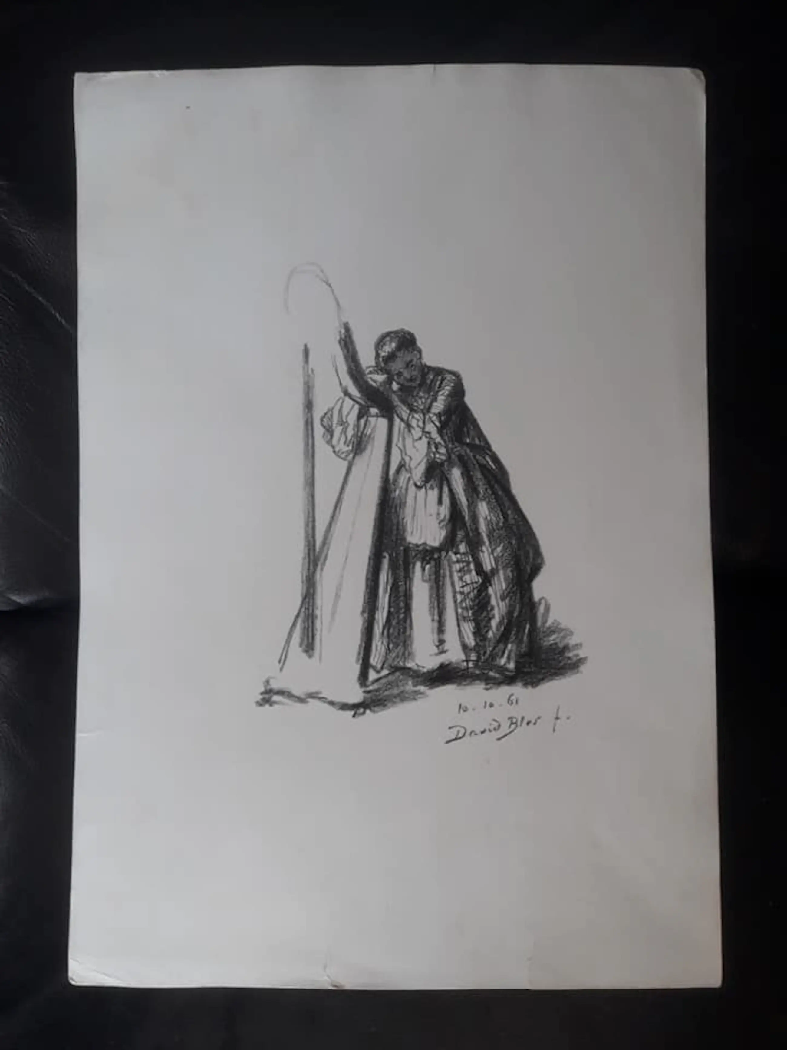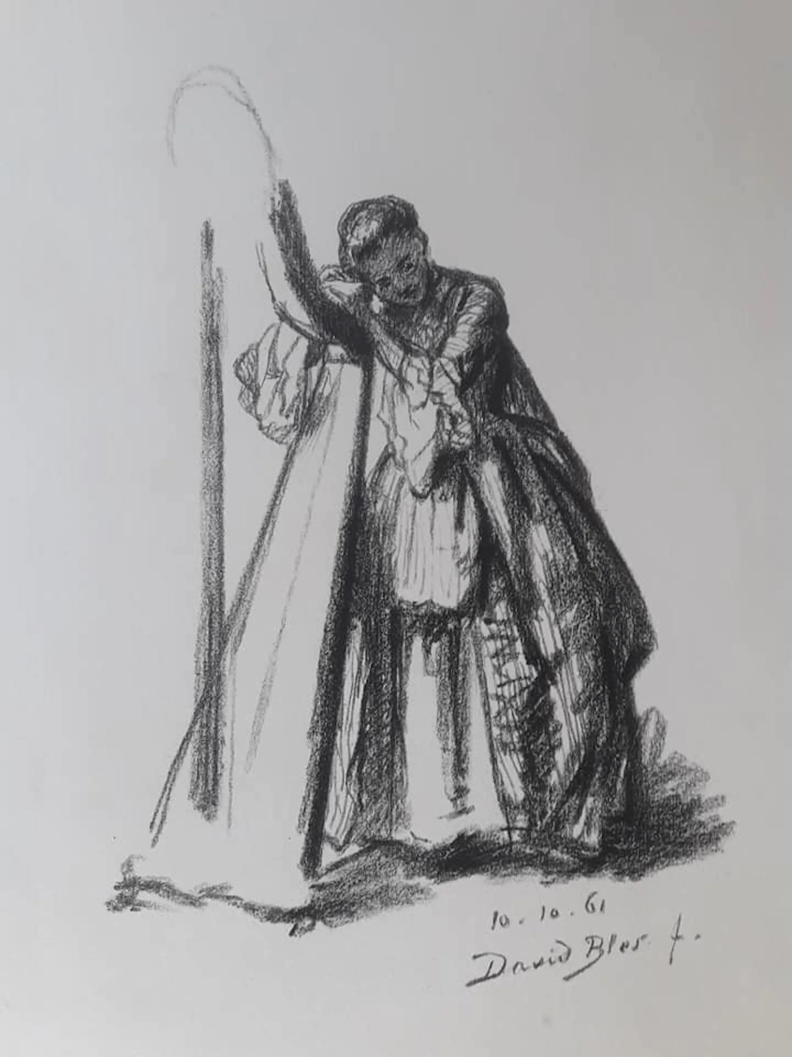 David Bles lihografeerde zoals anderen tekenden. Je moet wel erg goed naar deze voorstelling kijken om te kunnen ontdekken dat er sprake is van een litho en niet van een tekening. Los van deze constatering is ook het nauwkeurige waarnemen en registreren van deze harpspelende musica debet aan de indruk we hier naar een tekening kijken in plaats van naar een litho.