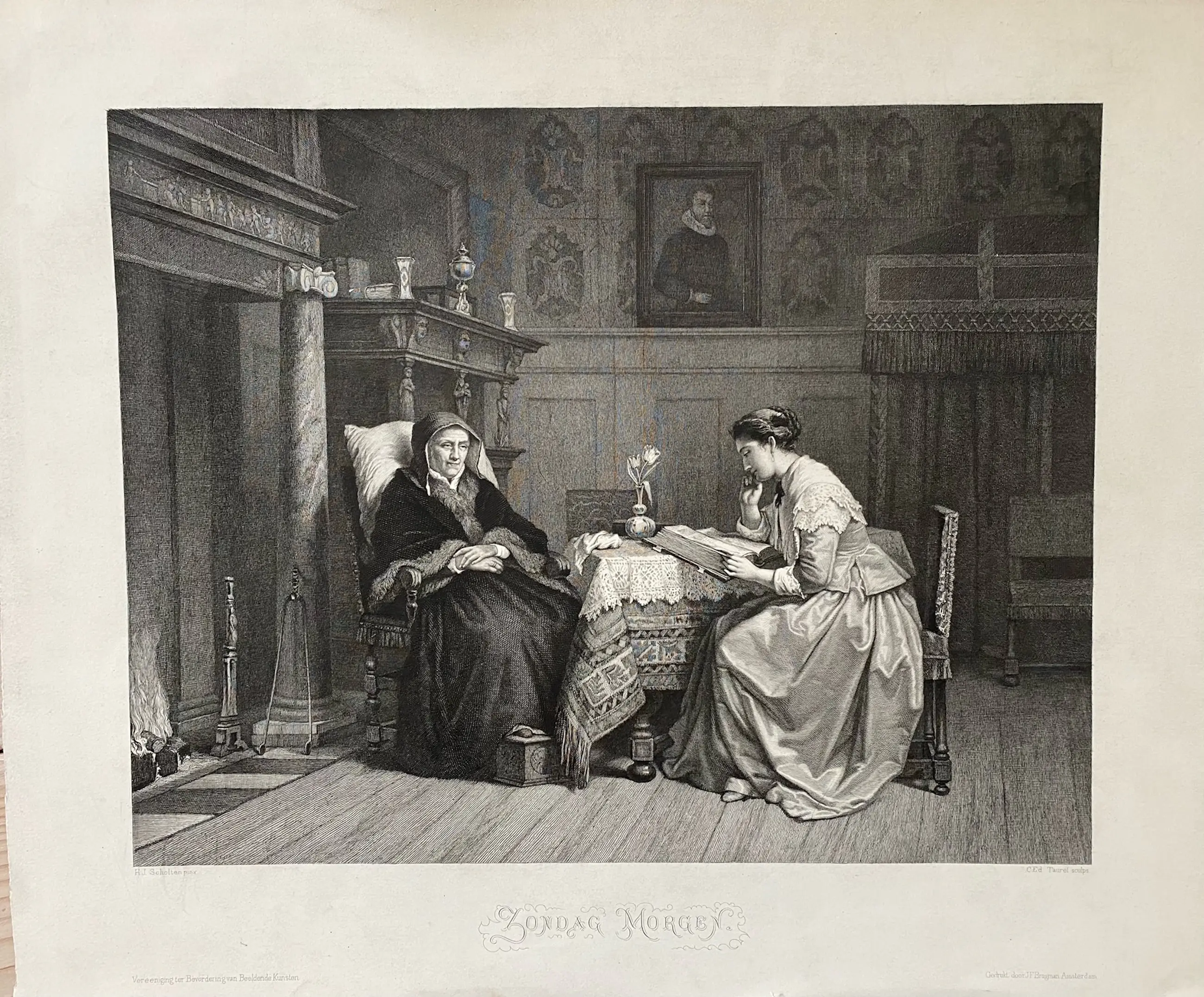Oa gereproduceerd werk van: - David Bles - HJ Scholten - Paul de la Roche - Toulmouche - Lankhout - J. Vetten - Meissonier