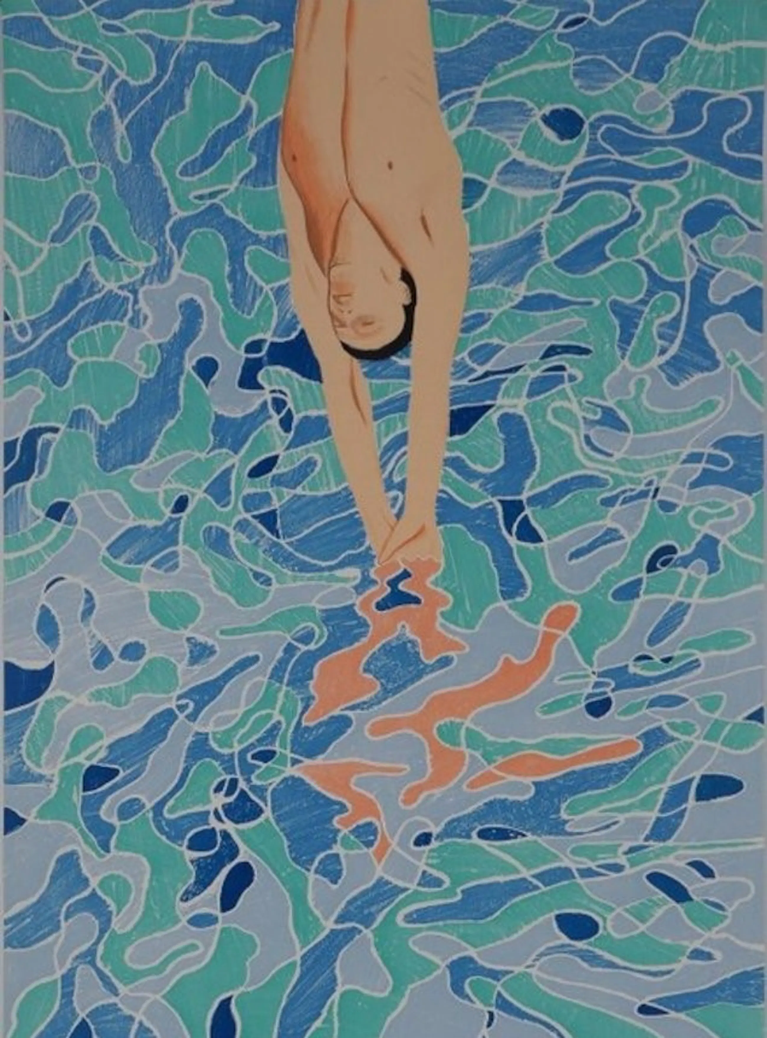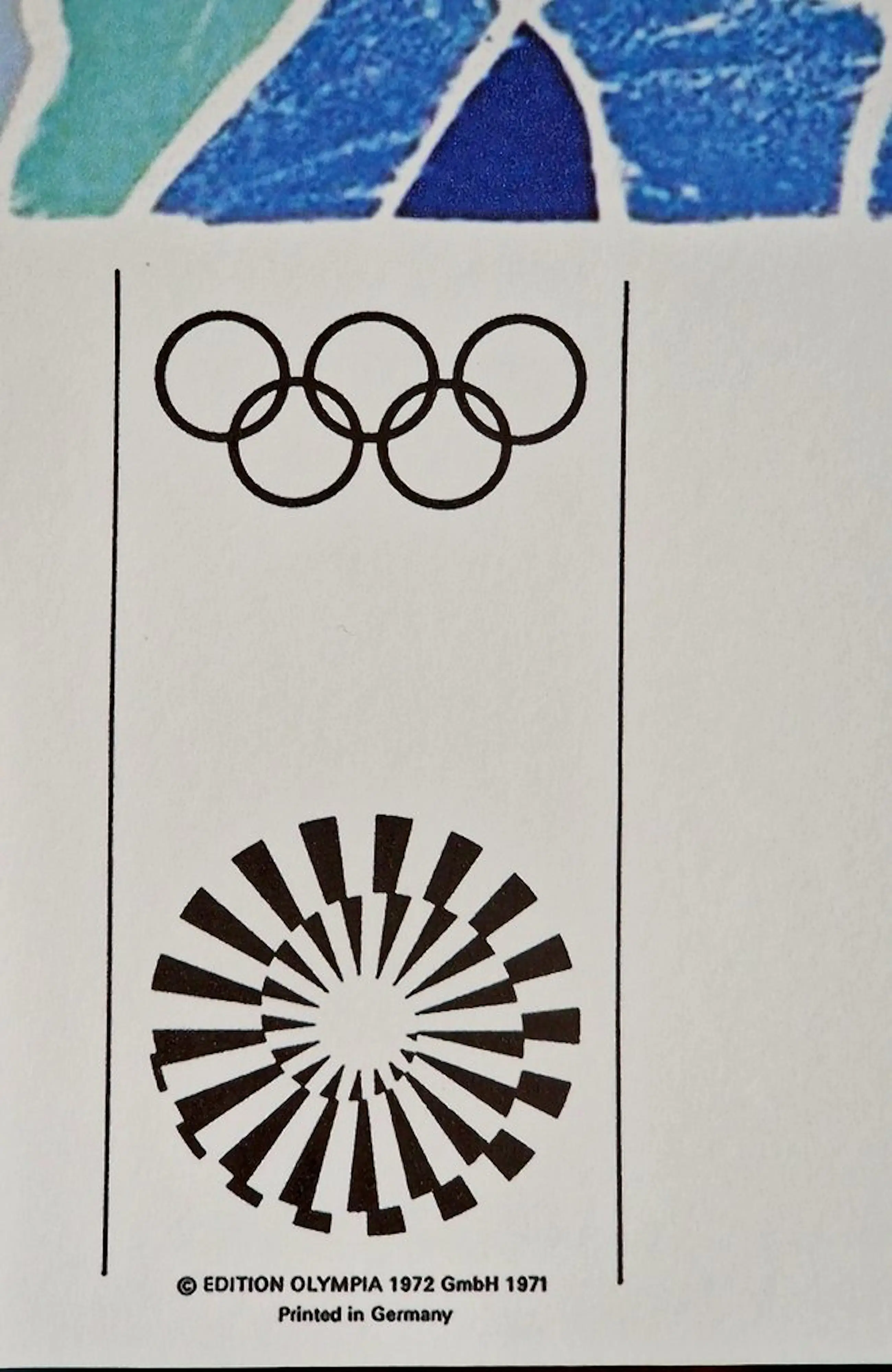 Iconisch affiche in de herkenbare stijl van de Engelse pop art artist David Hockney. Gemaakt ter gelegenheid van de Olympische spelen in München van 1972. In druk gesigneerd en gedateerd.