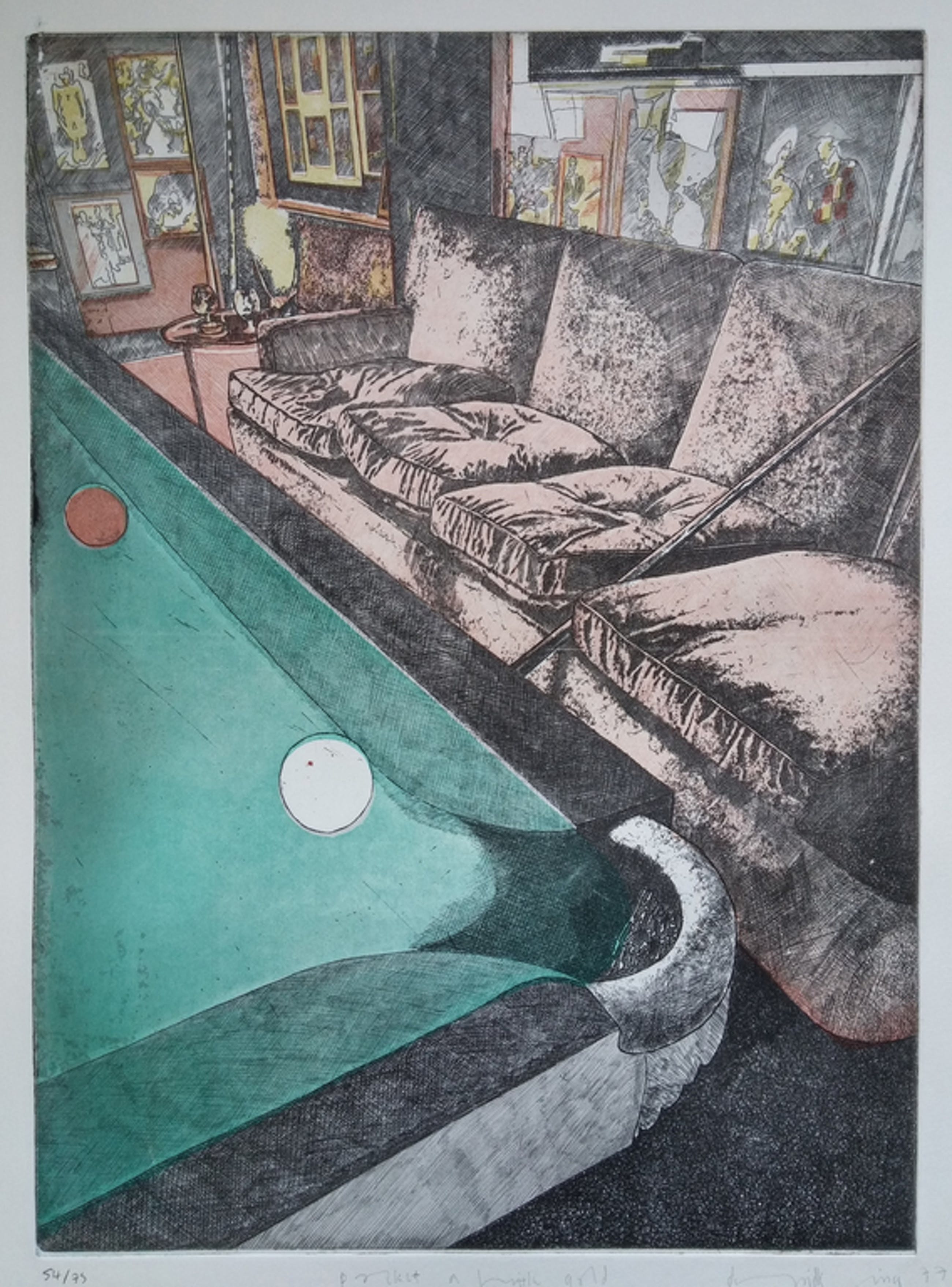 David King: Pocket a little Gold - Ets/aquatint uit 1977 - Gesigneerd rechts onderin.