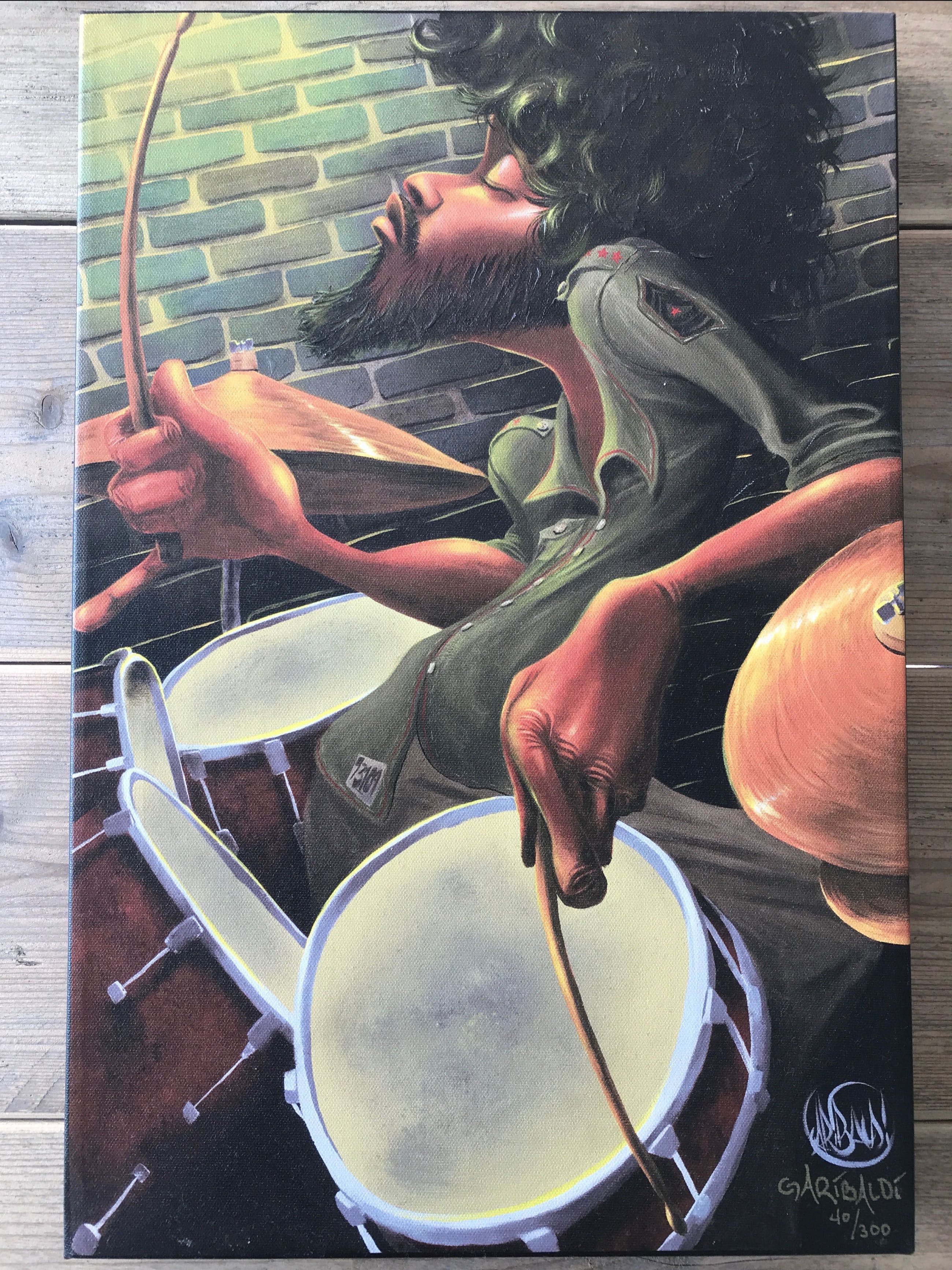 Combining his passions for music and art, David Garibaldi creates visual poetry. “Break Beat Fever” is a limited edition giclee on stretched canvas