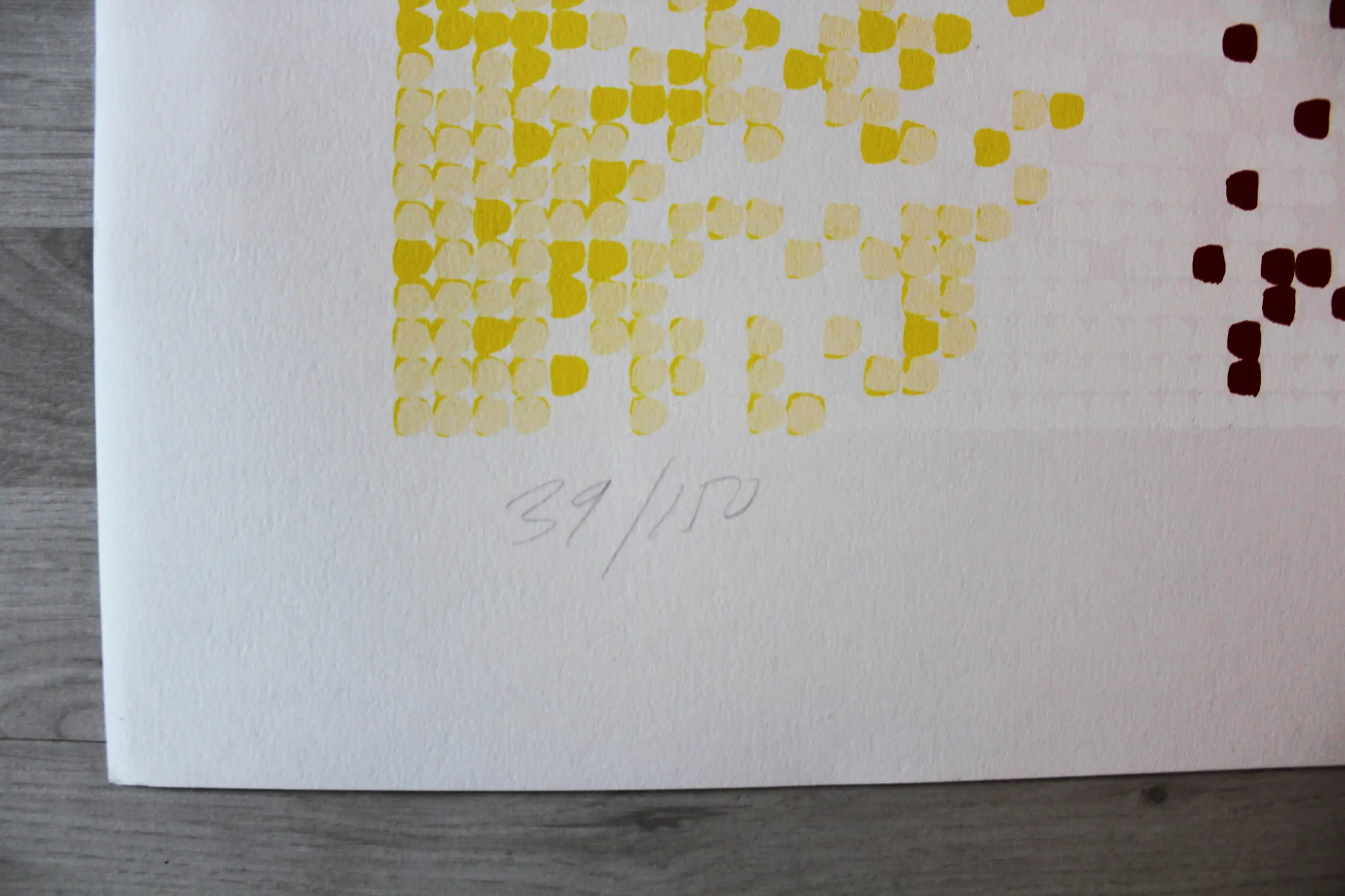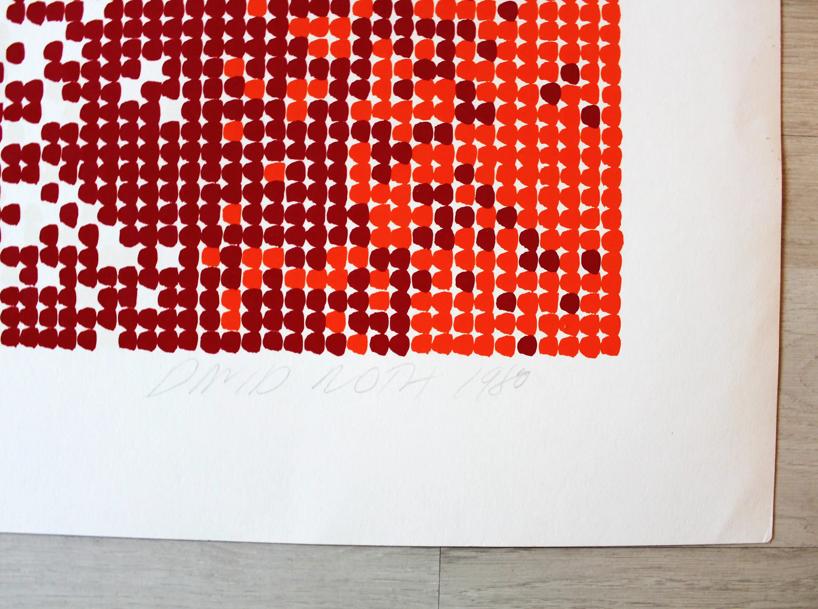 Kleurenlitho van David Roth (*1942). Abstracte compositie uit 1980. Techniek: Kleurenzeefdruk op handgeschept papier. Gelimiteerde oplage van 150. Origineel met de hand gesigneerd en genummerd door de kunstenaar.