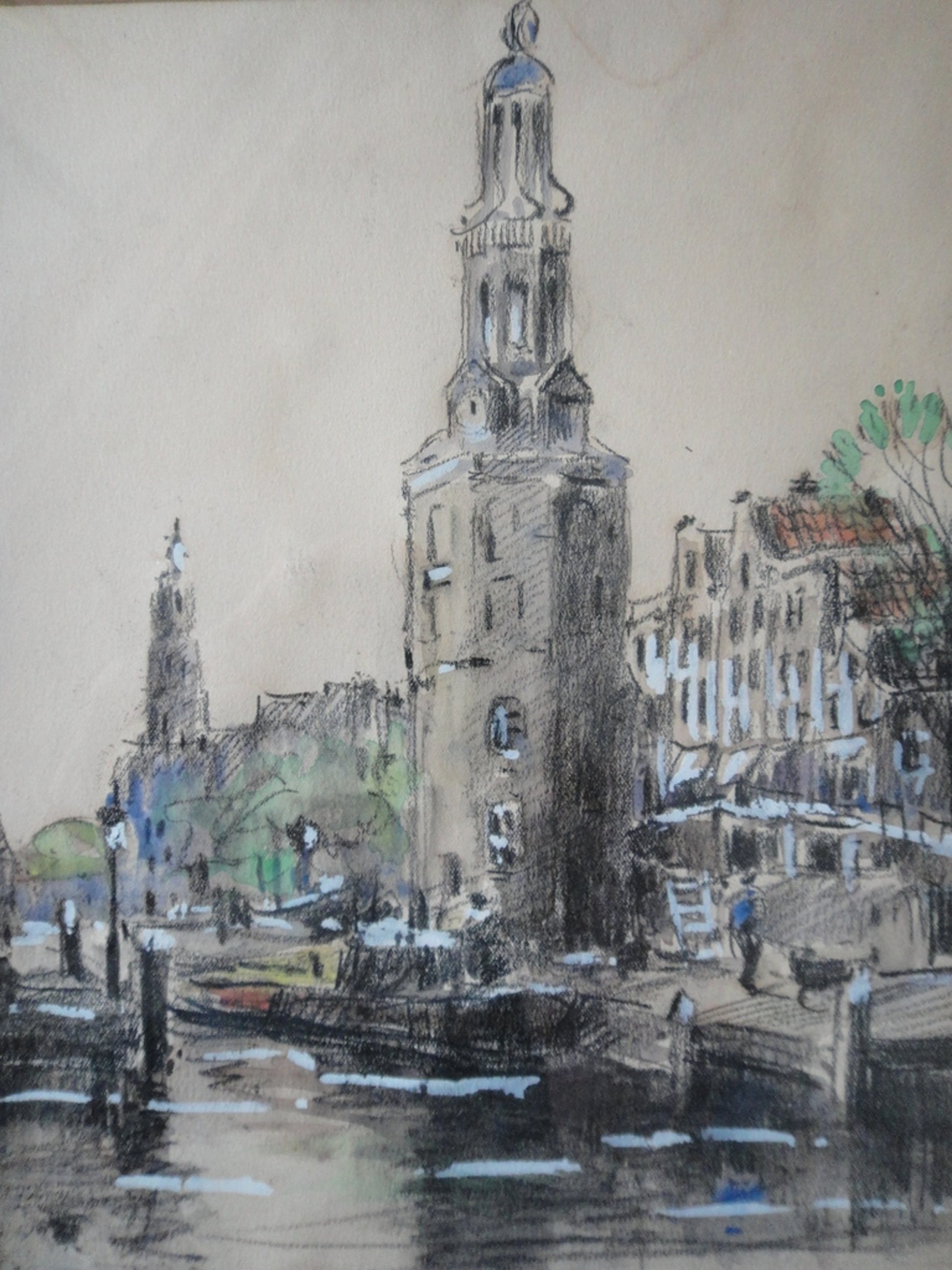 Gemengde techniek, in potlood gesigneerd: 'D. Schulman'.