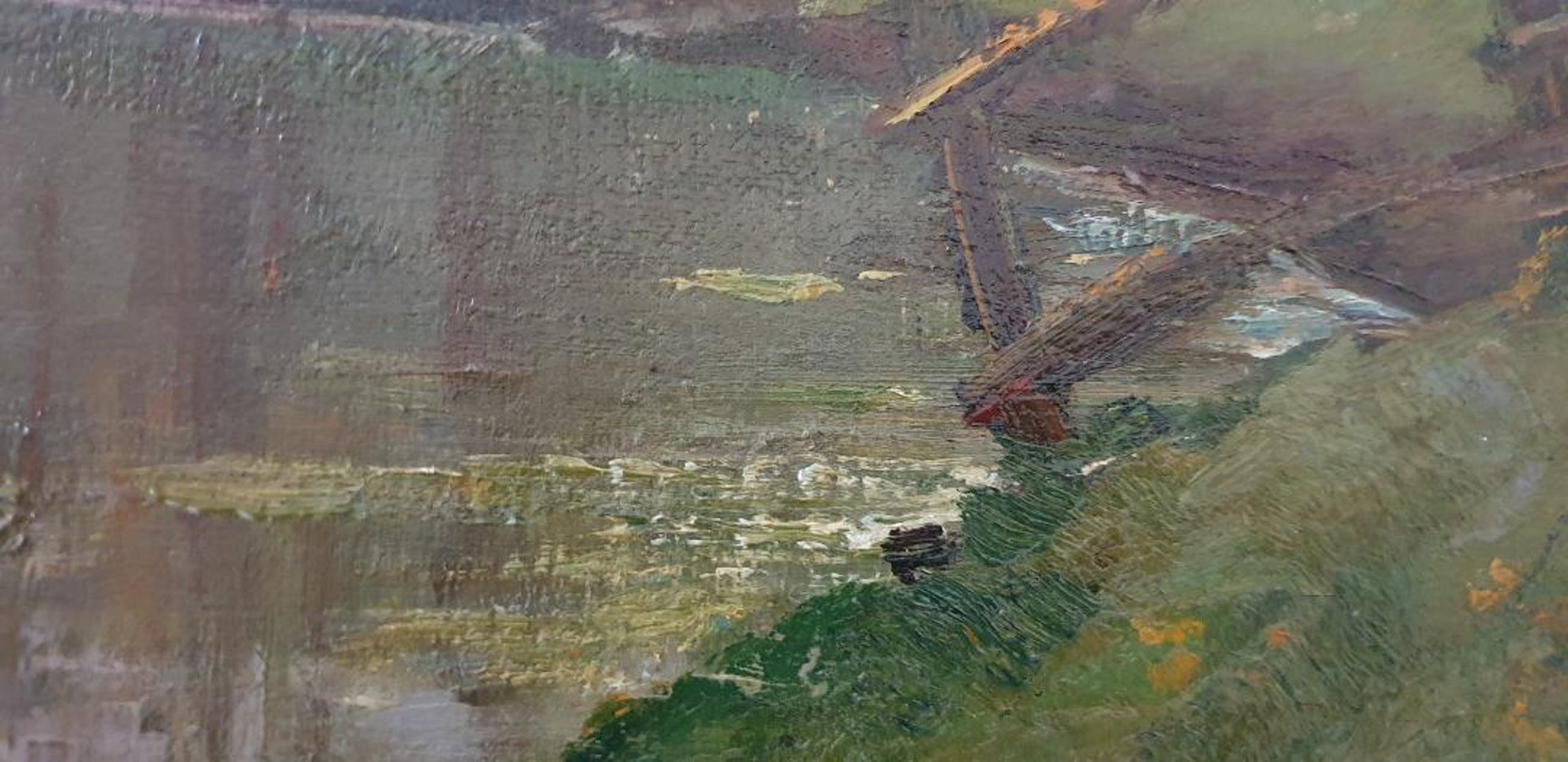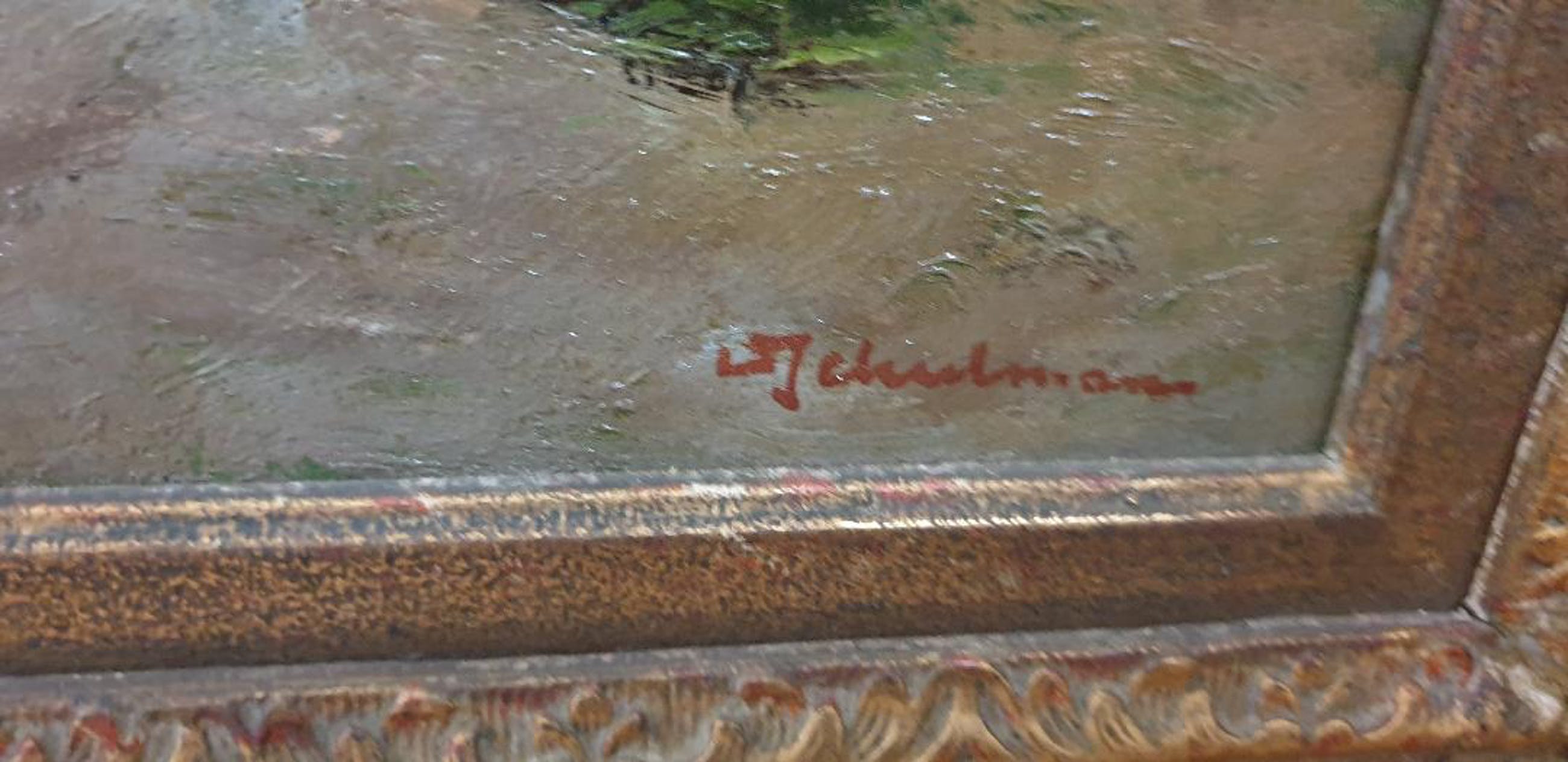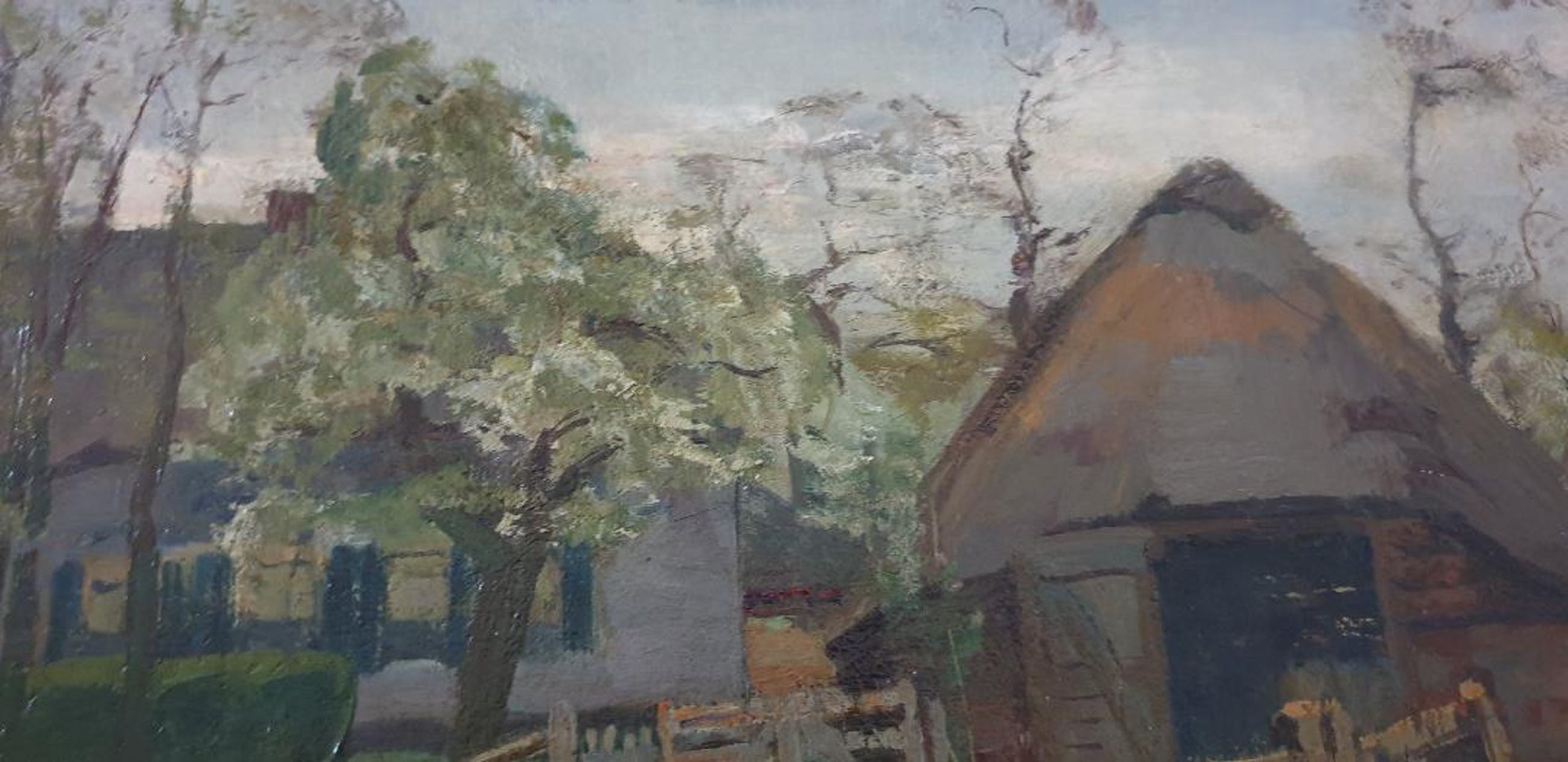 Fraai, langgerekt schilderij van David Schulman (Hilversum, 31 oktober 1881 - Laren NH, 21 oktober 1966).