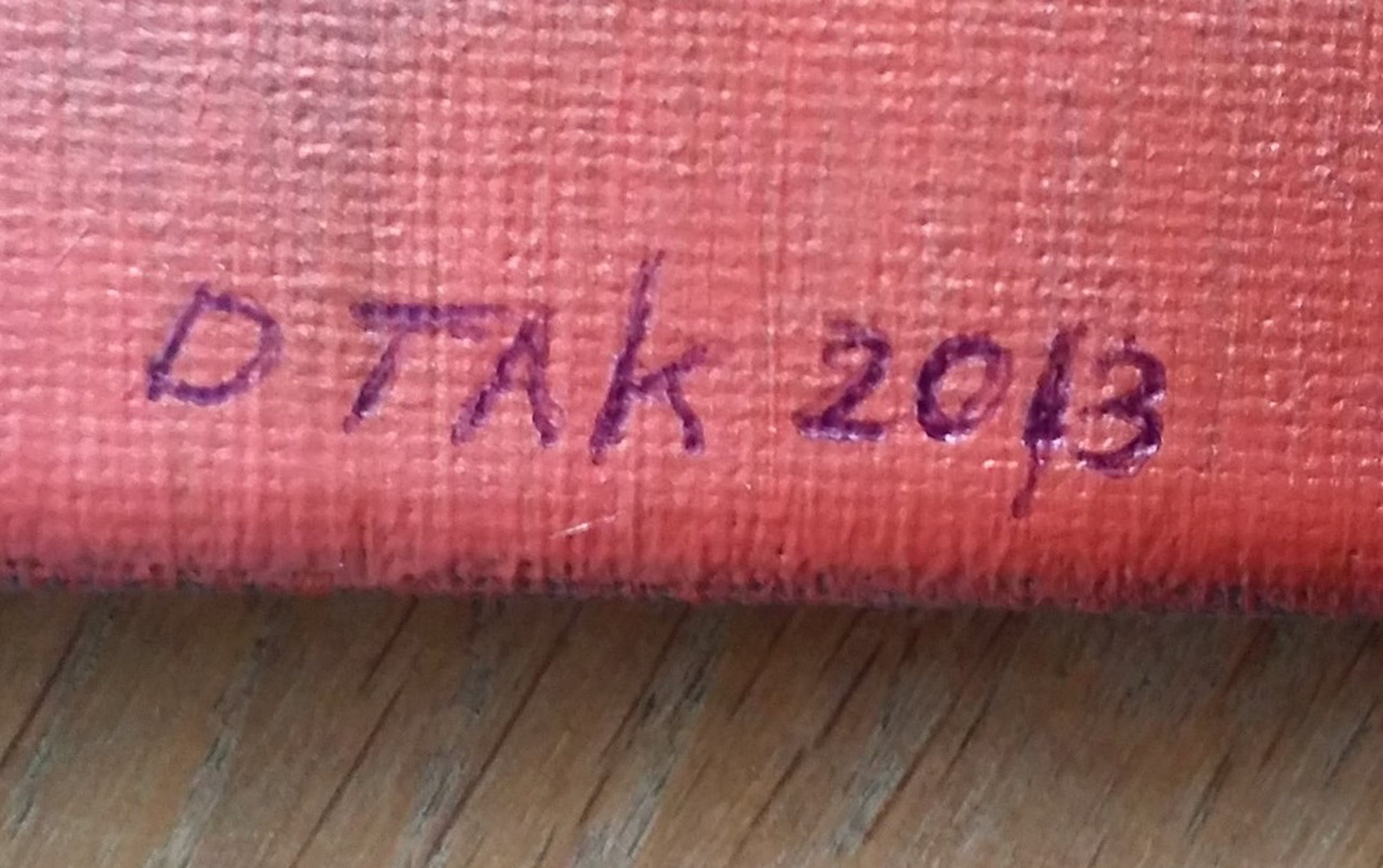 Met de hand gesigneerd: r.b. (D. Tak 2013) en op achterzijde