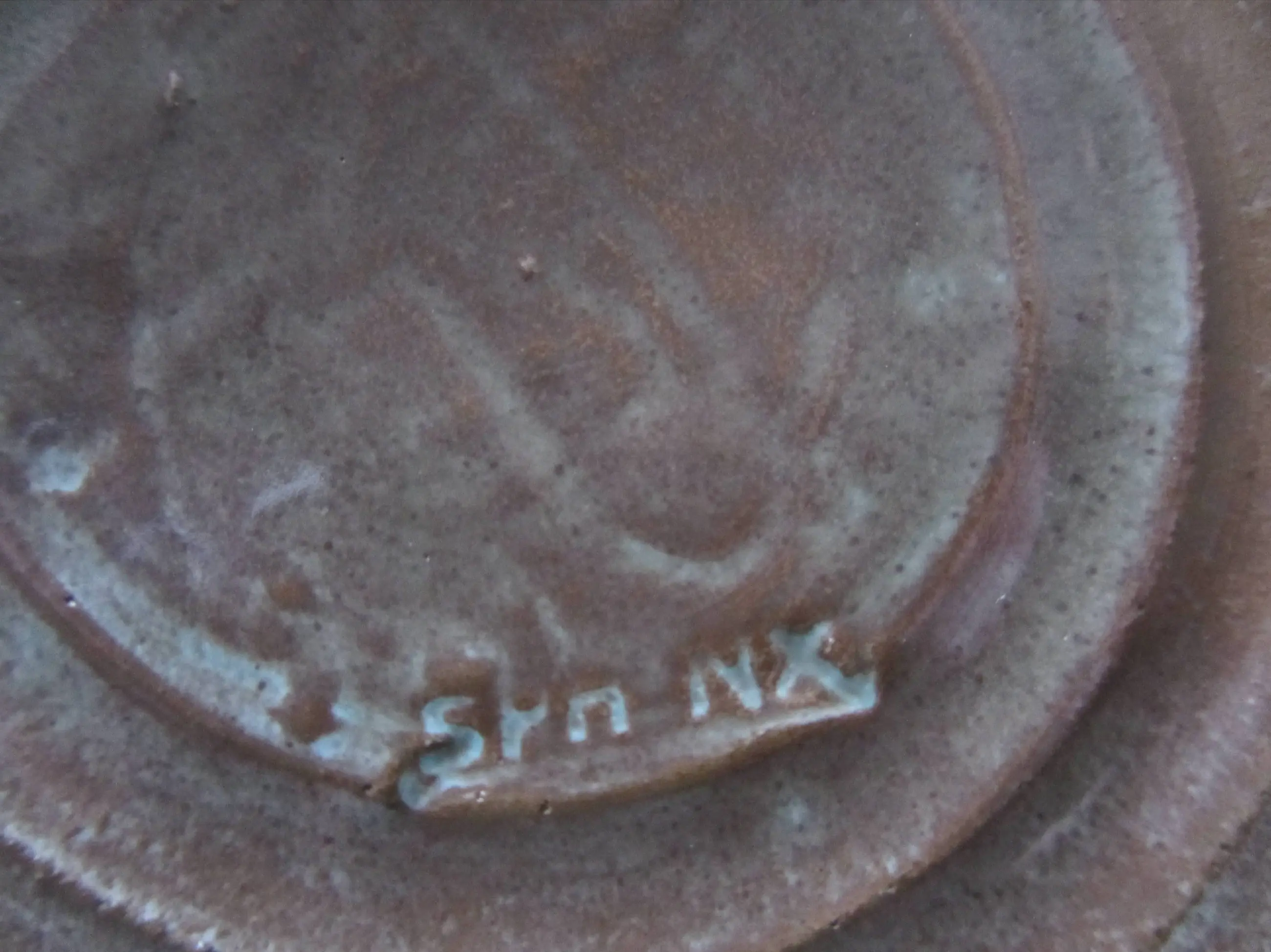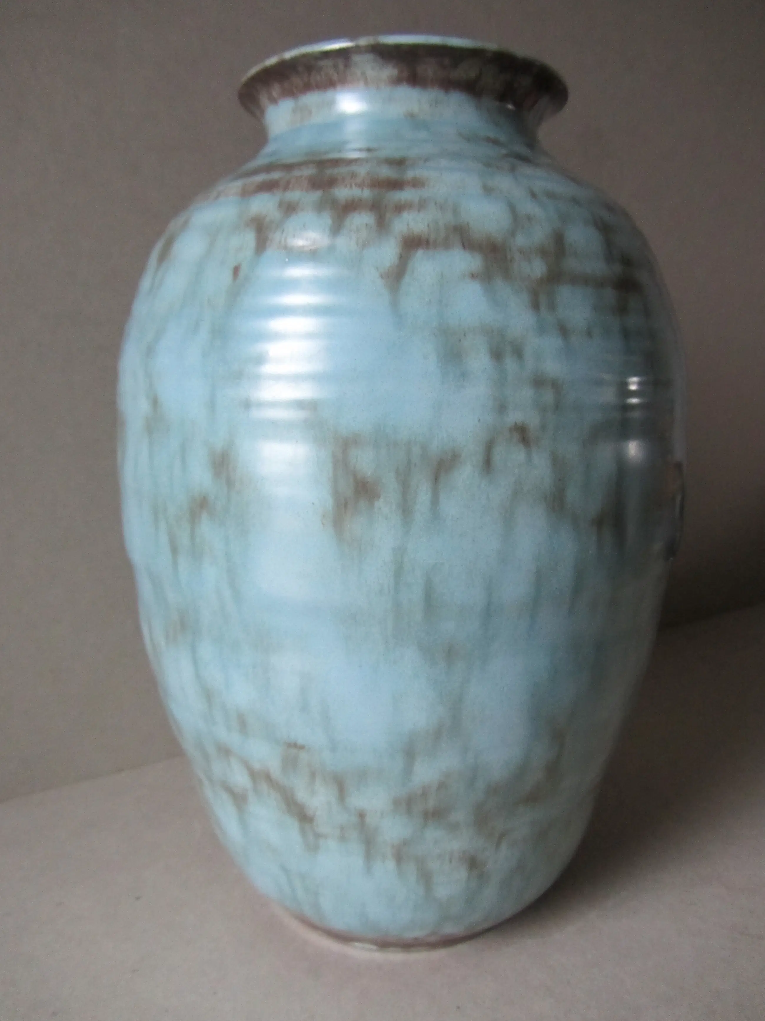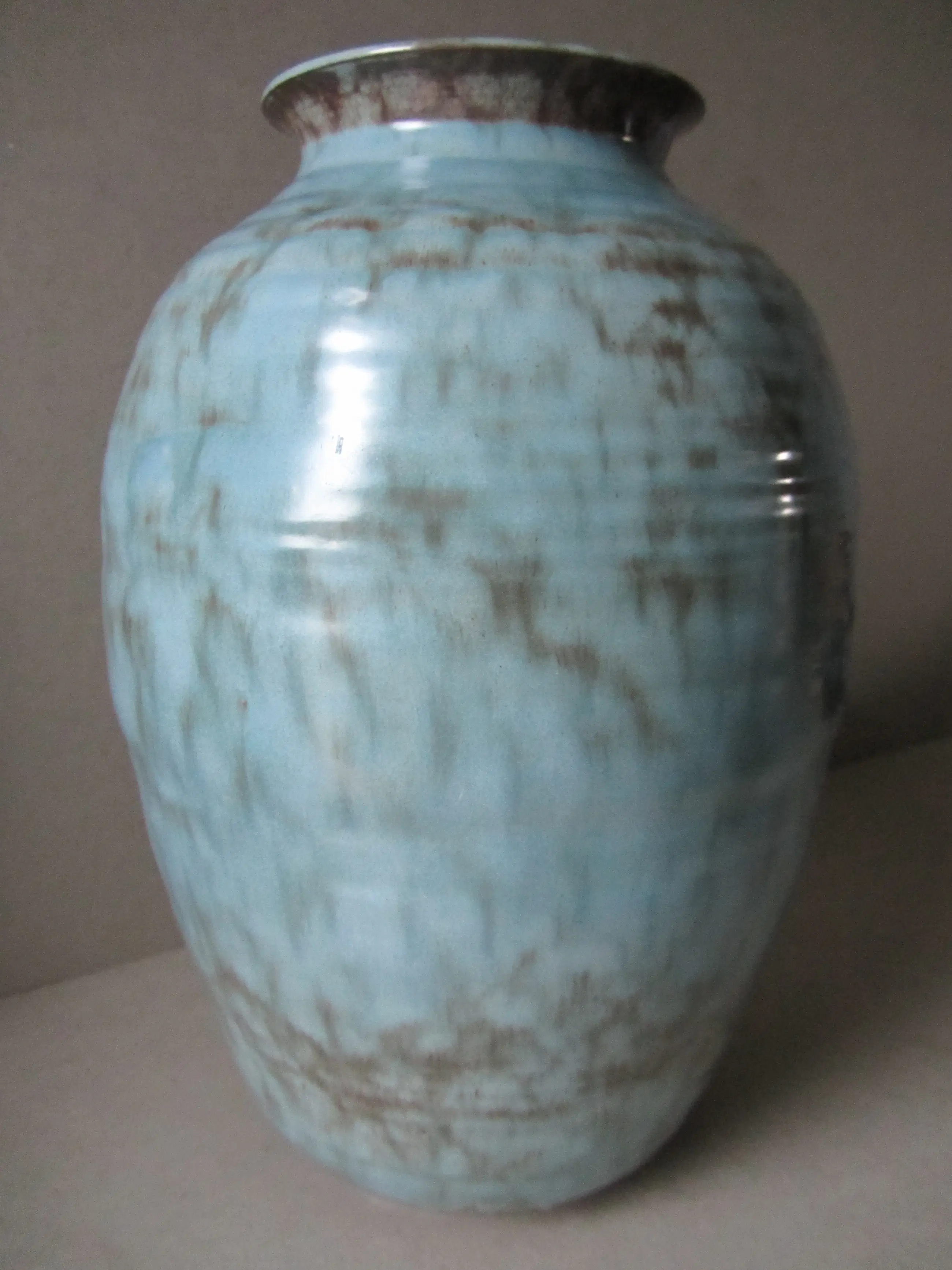 Vaas keramiek turquoise gemerkt Sphinx. Afmeting: hoogte 28,5 cm. breedte 19 cm. Jaren