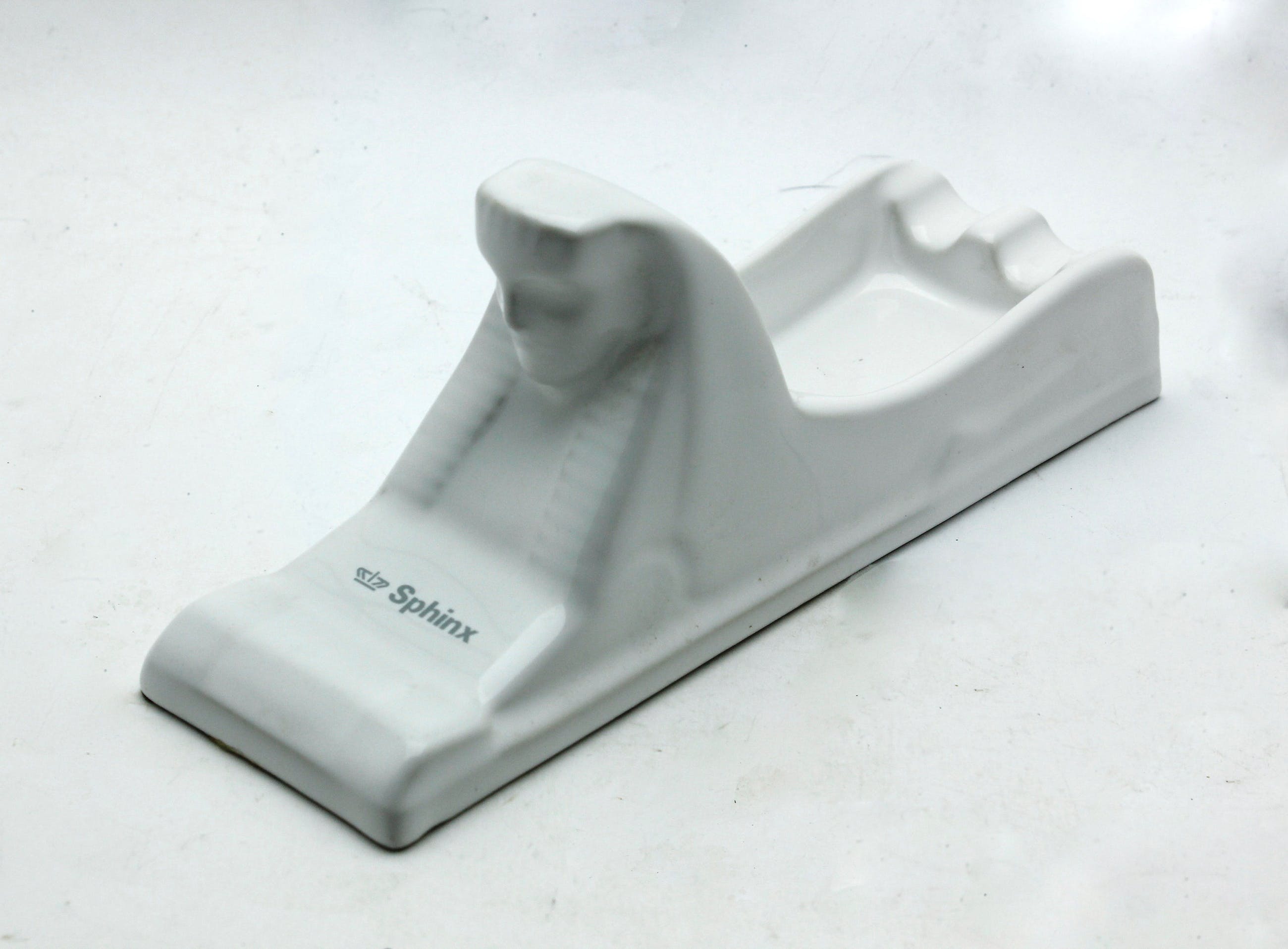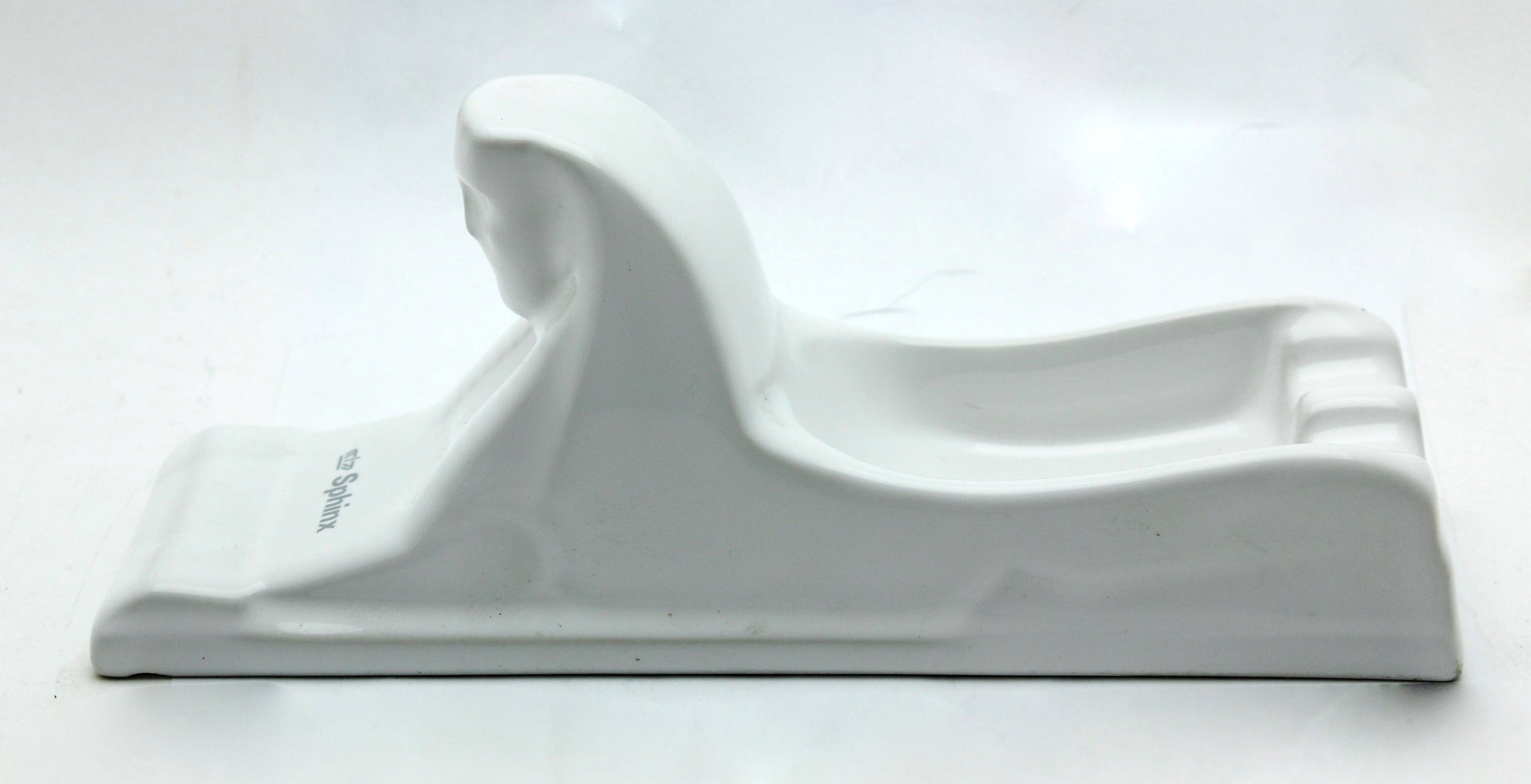 Wit mat geglazuurde aardewerk asbak en een zwart glanzend geglazuurd zeepbakje in de vorm van een "Sphinx", uitgevoerd door Petrus Regout voor Royal Sphinx, Maastricht. Deze is in nette gebruikte staat. Het logo van Royal Sphinx is op de voorzijde zichtbaar. We verzenden internationaal met een extra veilige Track & trace service