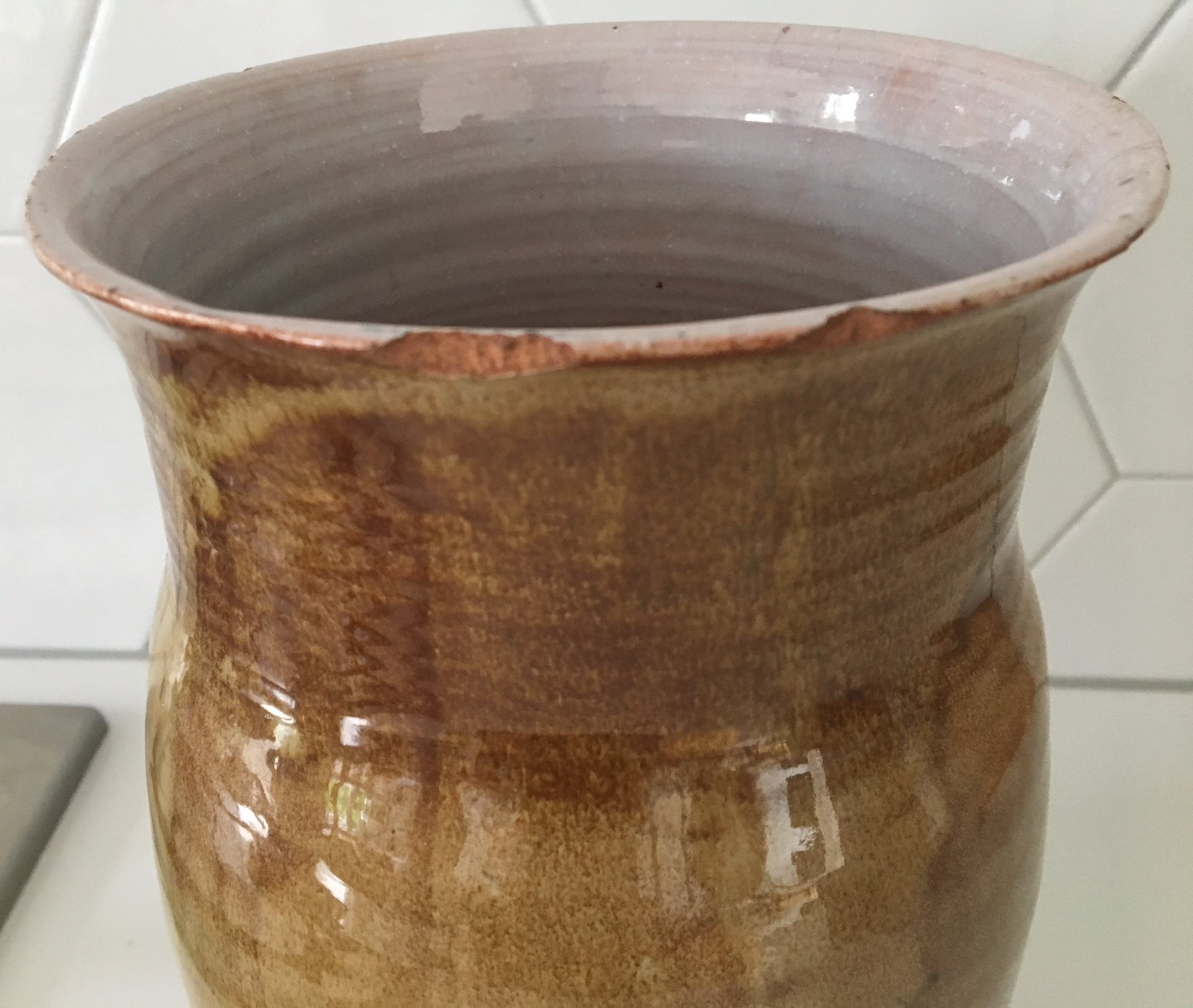 Grote vaas van De Vier Paddestoelen uit Utrecht. Helaas in beschadigde conditie . Gemerkt aan de onderzijde een voorzien modelnr 42 en type III.