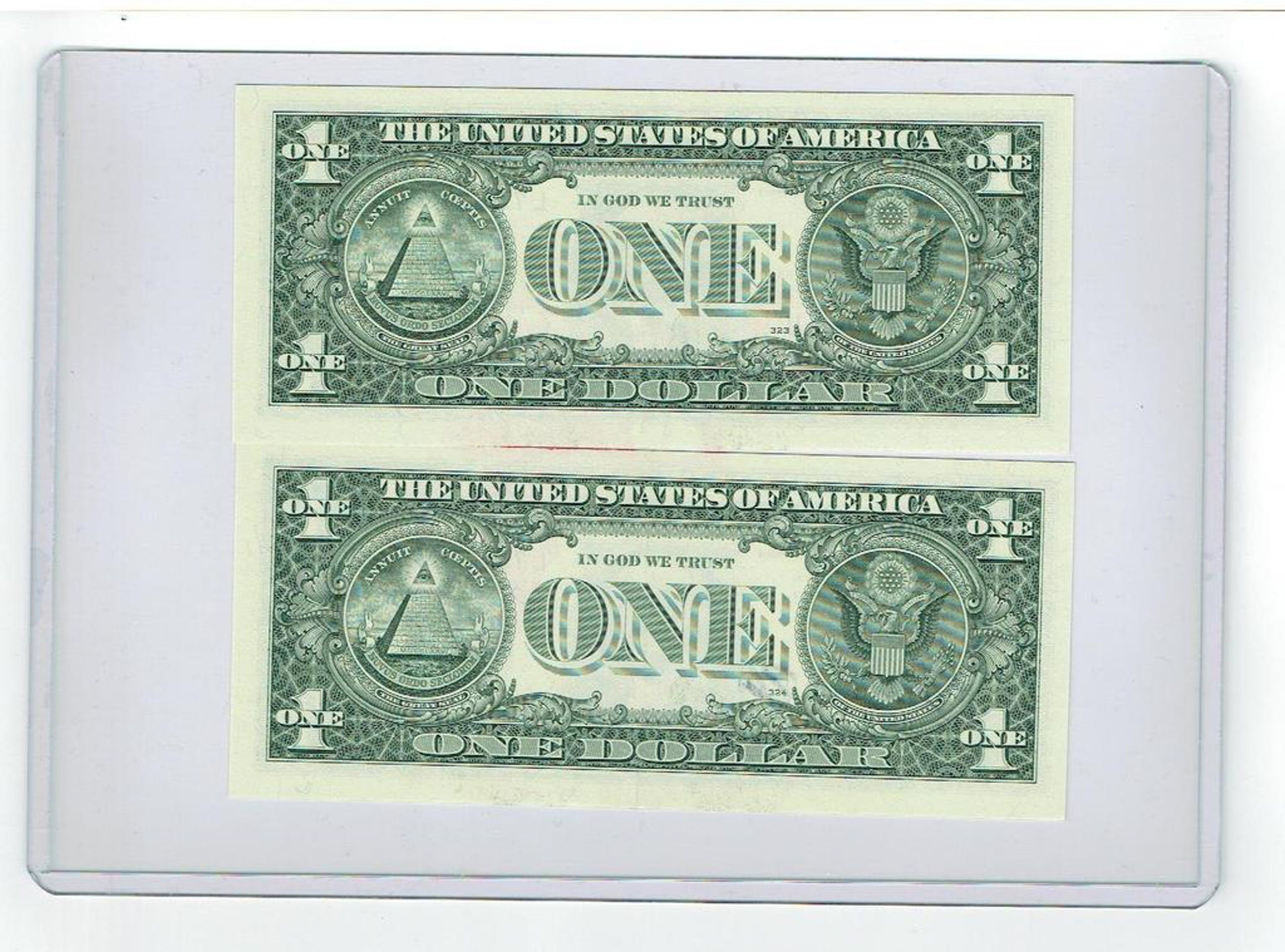 Drie originele werken op originele dollar biljetten In Plastic casing