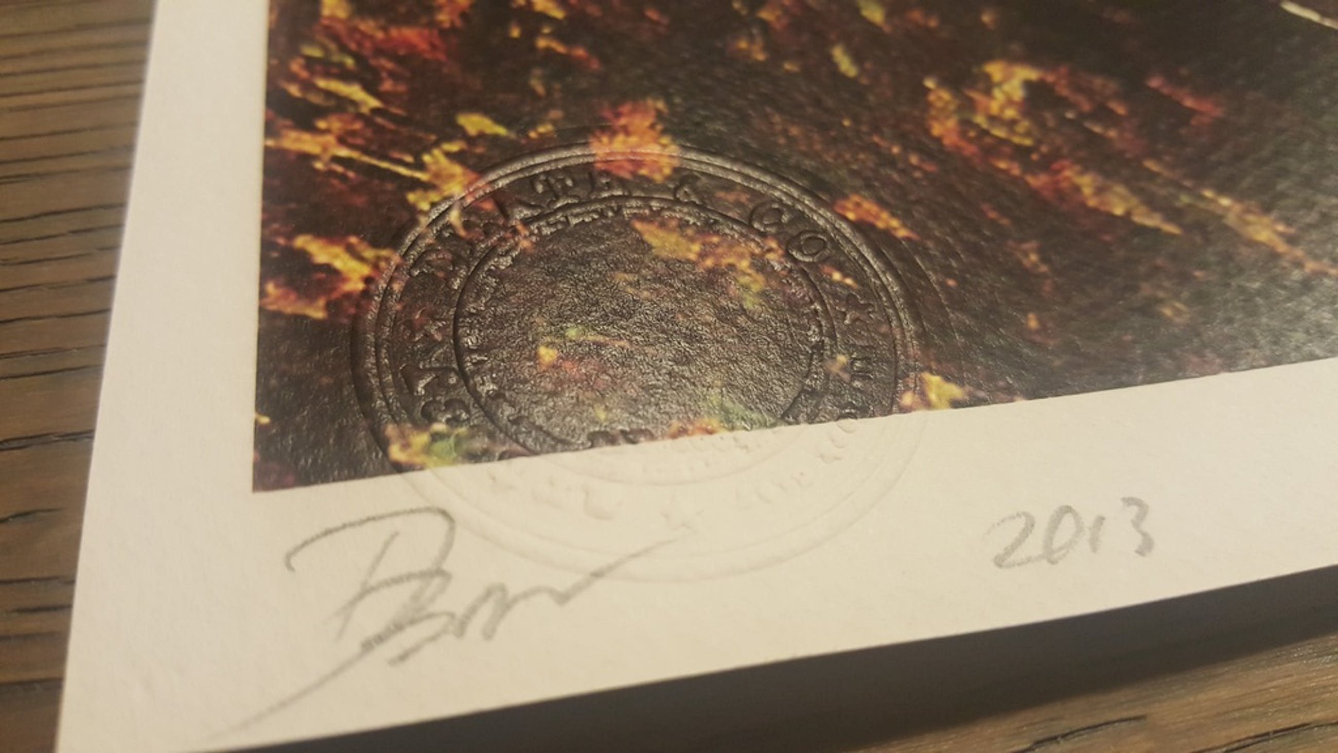 Gesigneerd: met de hand gesigneerd en gedateerd door droogstempel