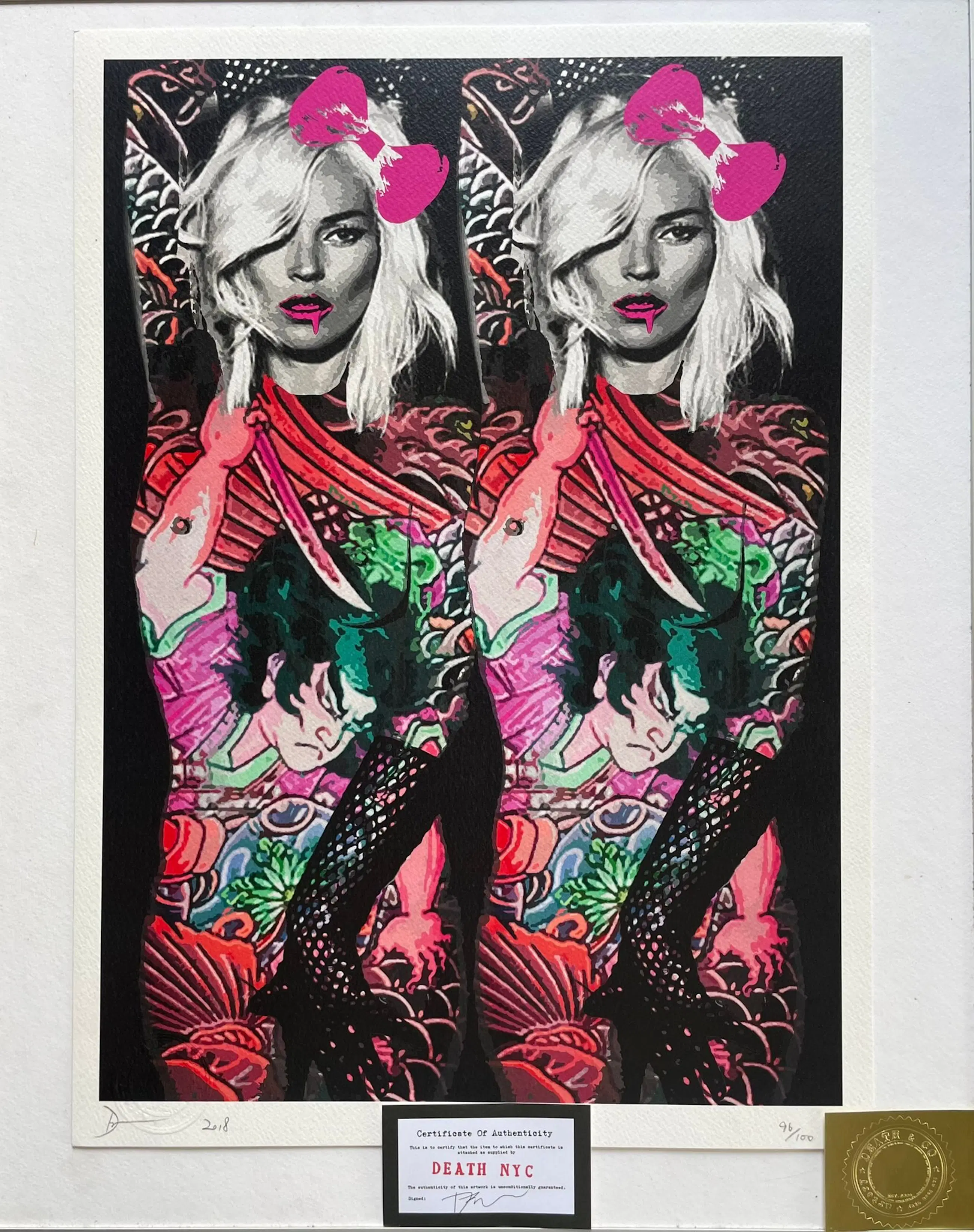 In haar werk bespot Death de media, door de beelden van de populaire cultuur te verdraaien. Een van haar bekendste werken is de voorstelling van Mao Zedong met een roze strik in zijn haar en roze lippenstift.