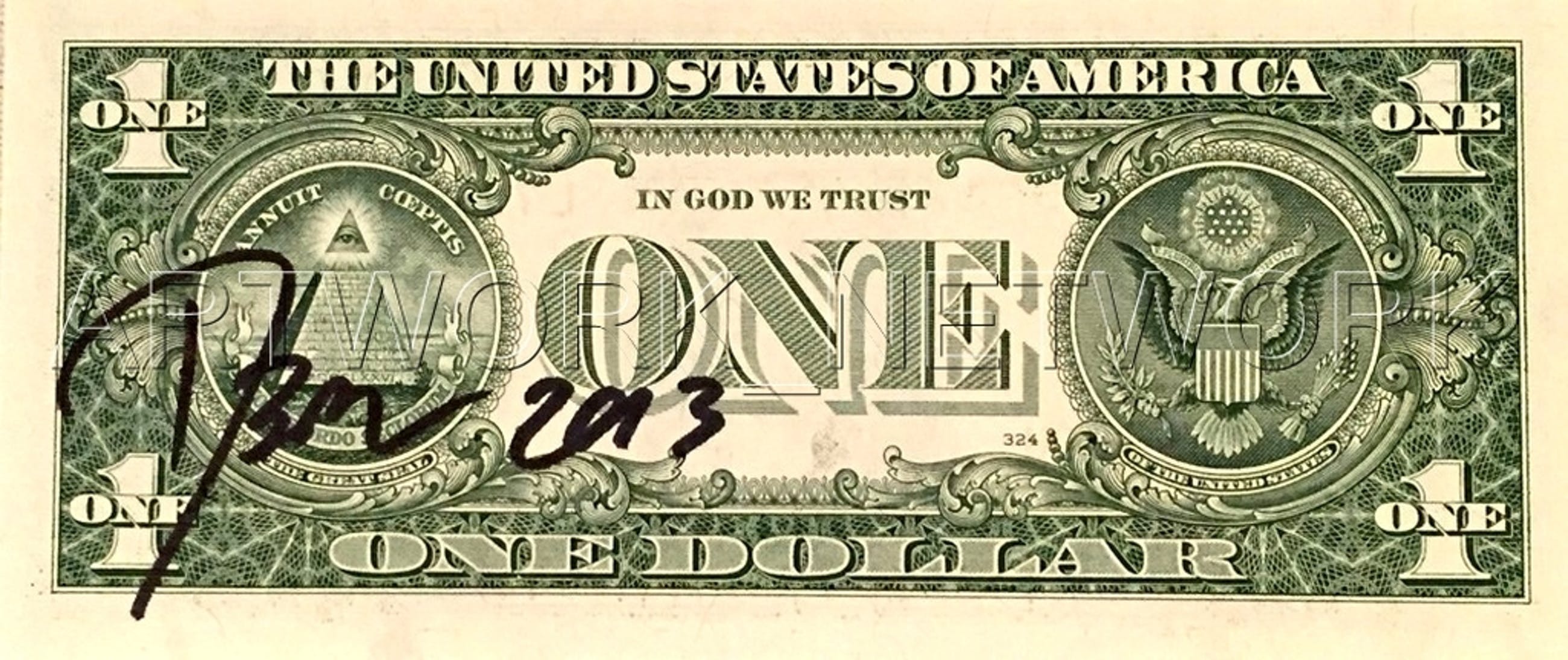 Original Painting on US bill – "Red Snow"