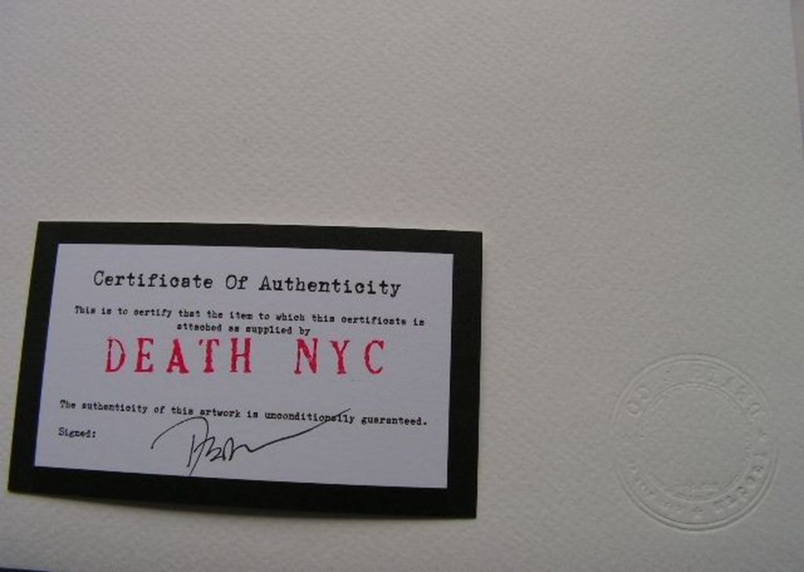 Met certificaat gesigneerd door Death NYC.