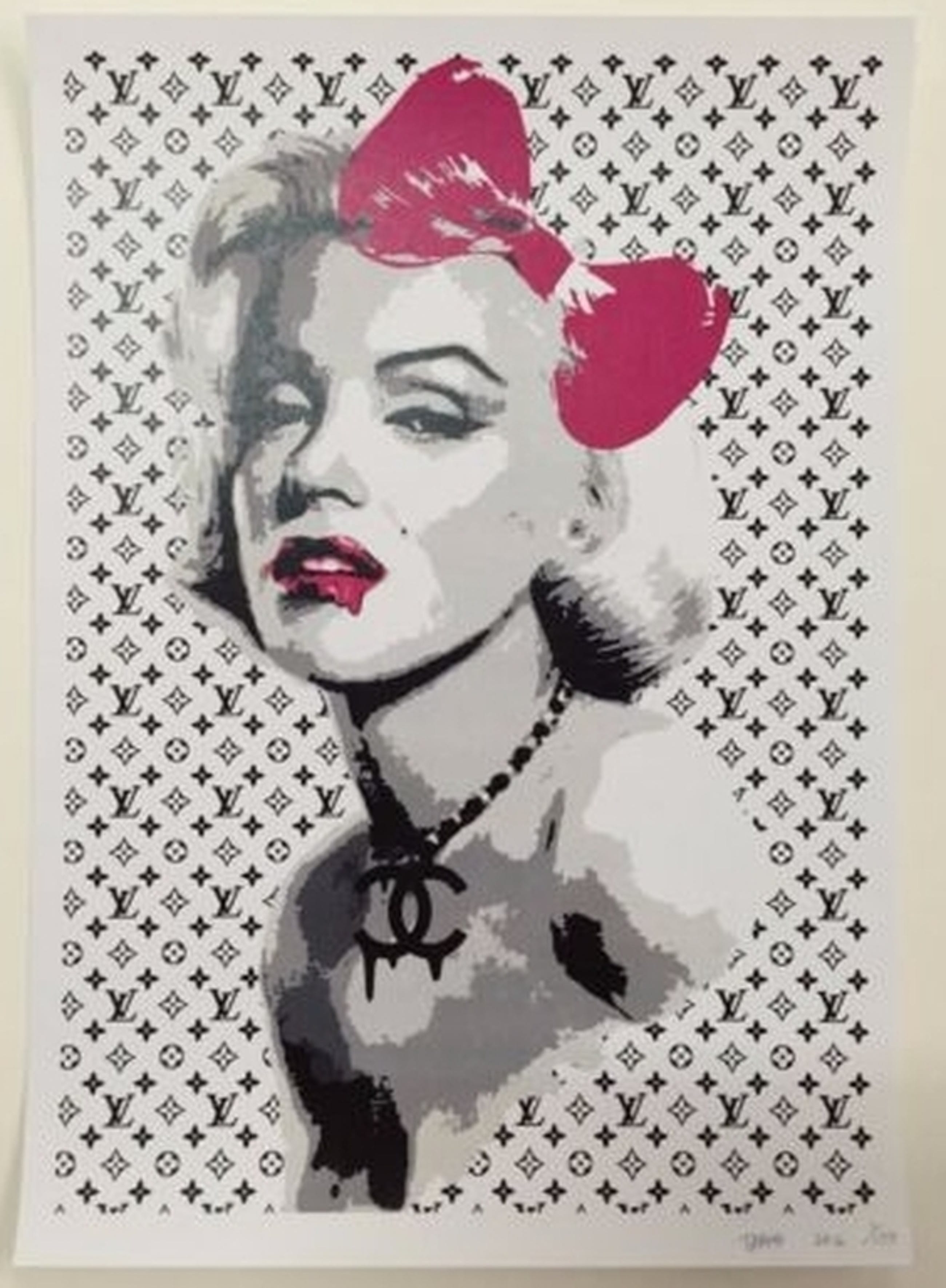 DEATH NYC, zeefdruk 'Monroe Pink Drip' met Louis Vuitton logo uit 2012, oplage 100 exemplaren