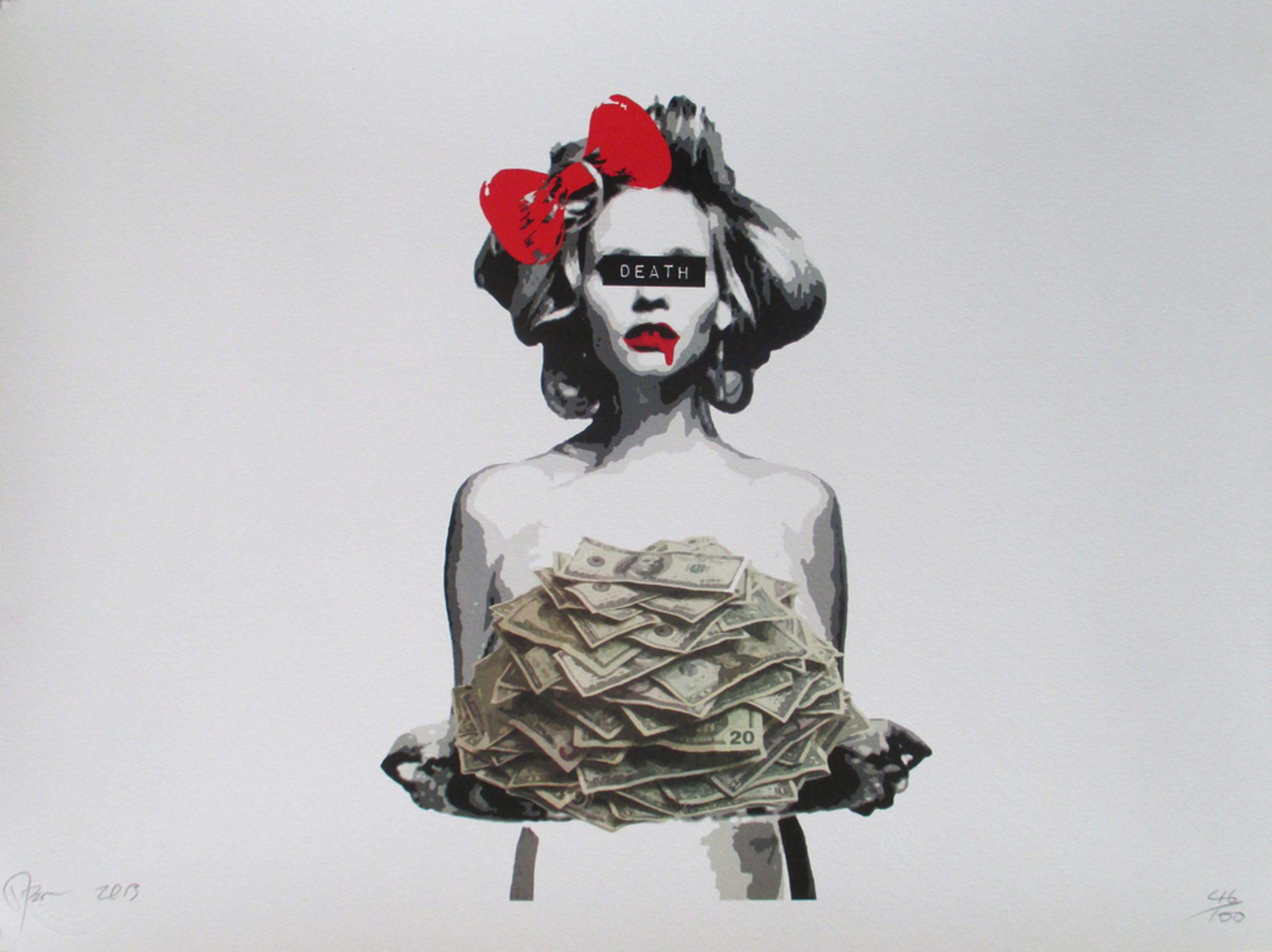 Mooie Street Graffiti Pop Art van kunstenares DEATH NYC. De zeefdruk is handgesigneerd en voorzien van een COA incl. blindstempel.