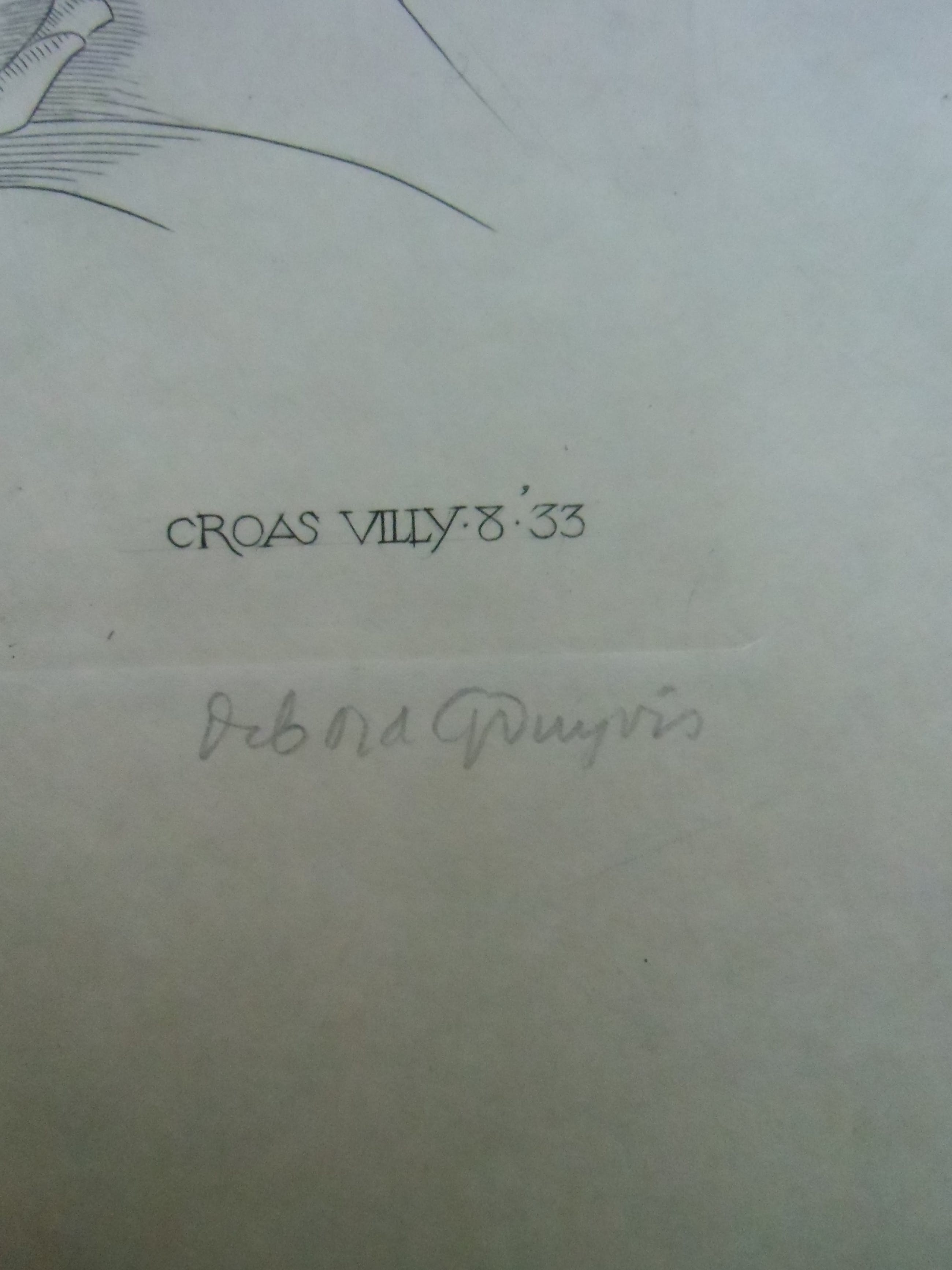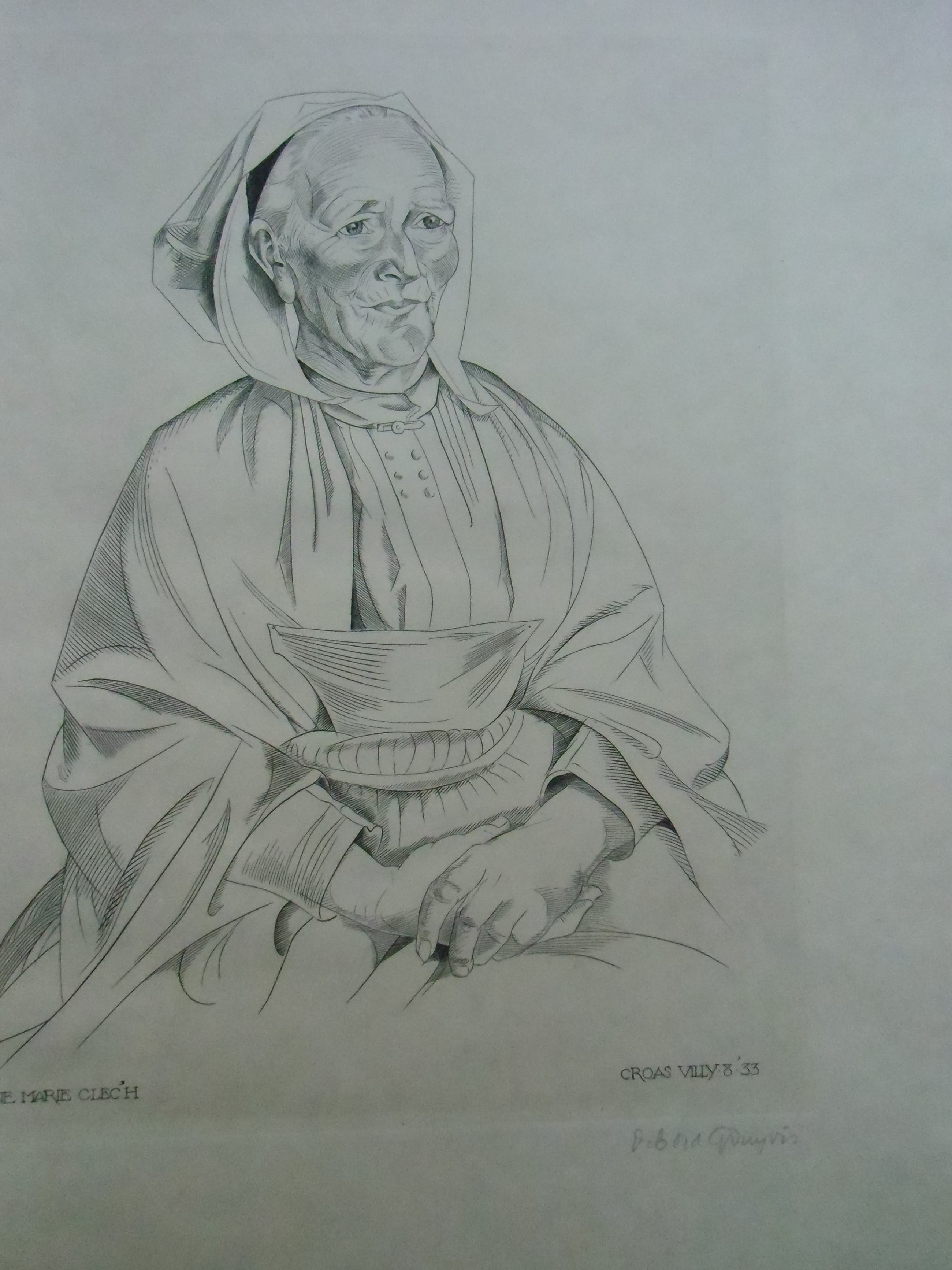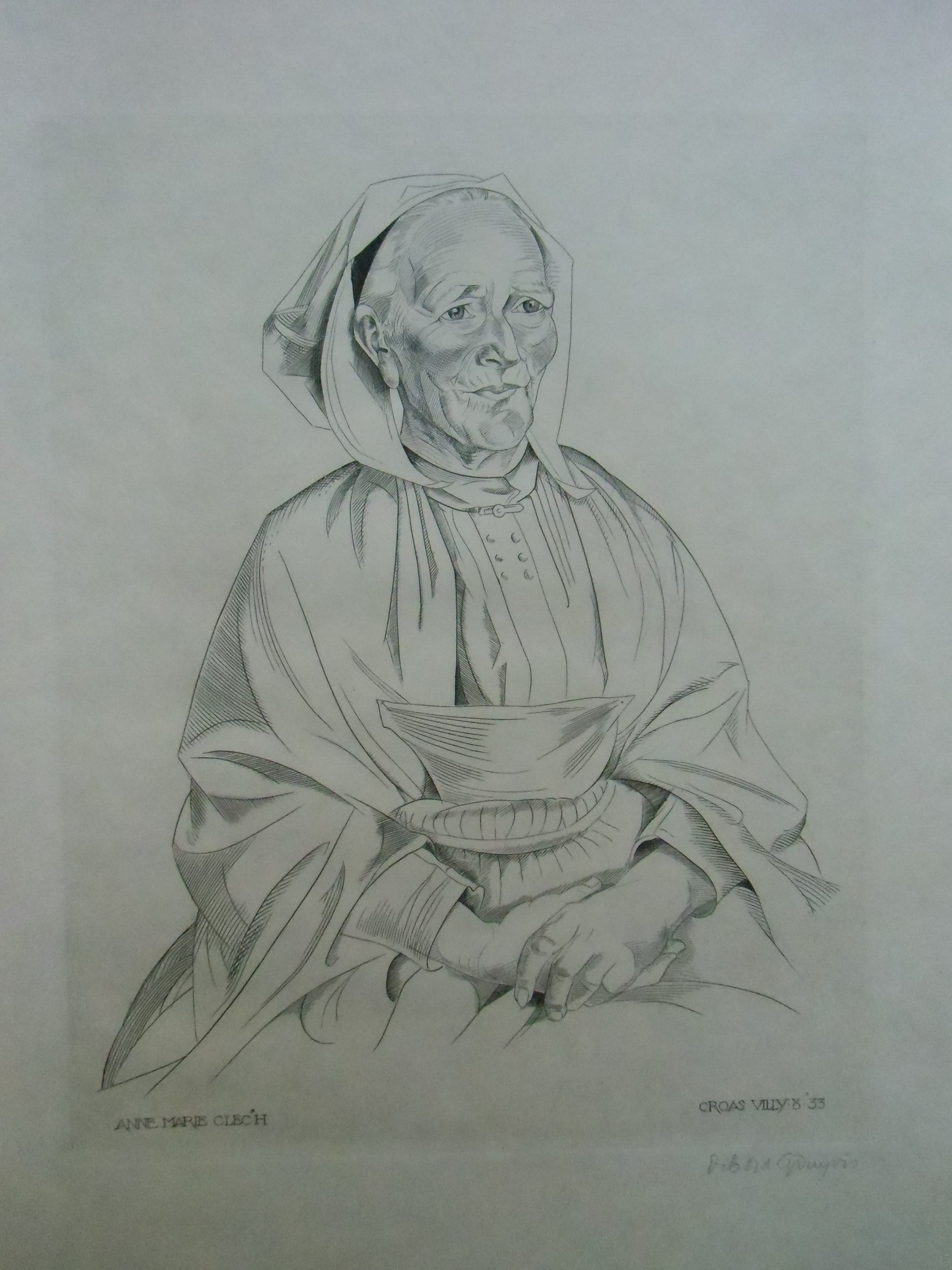 In de jaren dertig van de vorige eeuw maakte Debora Duyvis verschillende reizen naar de westkust van Frankrijk en portretteerde daar vooral Bretonse vrouwen. Kopergravure afgedrukt op chamois papier van mooie kwaliteit. Potlood gesigneerd in zeer goede conditie.