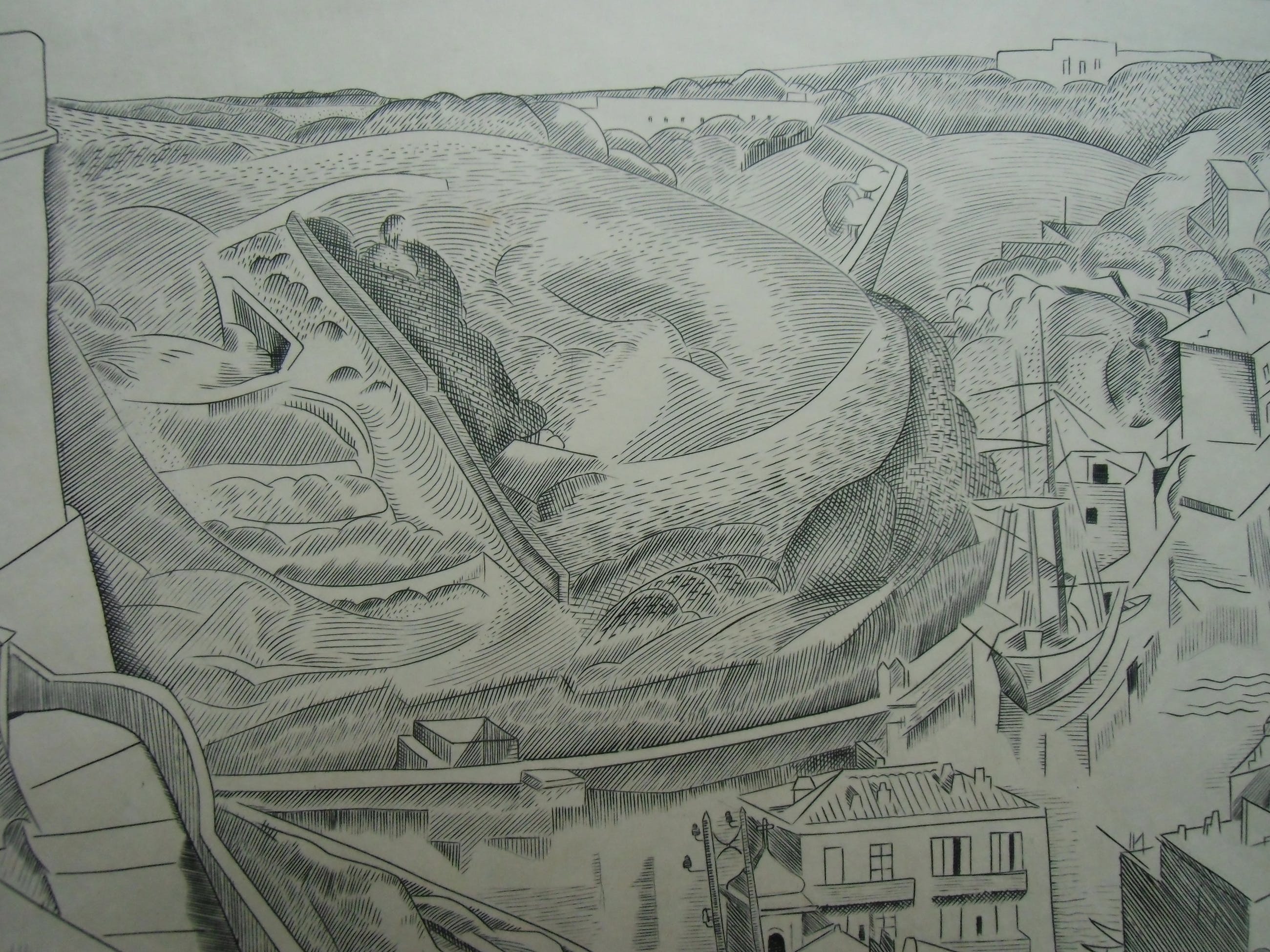 Fraai beeld van de haven van Bonifacio ( in potlood l.o.Bonifacio (Corse)). Duyvis reisde in de twintiger en dertiger jaren van de vorige eeuw veel in het zuiden van Europa.Afmeting beeld 26 x 21 cm op een blad van 32 x 50 cm. Afgedrukt op chamois papier en r.o. gesigneerd met potlood.