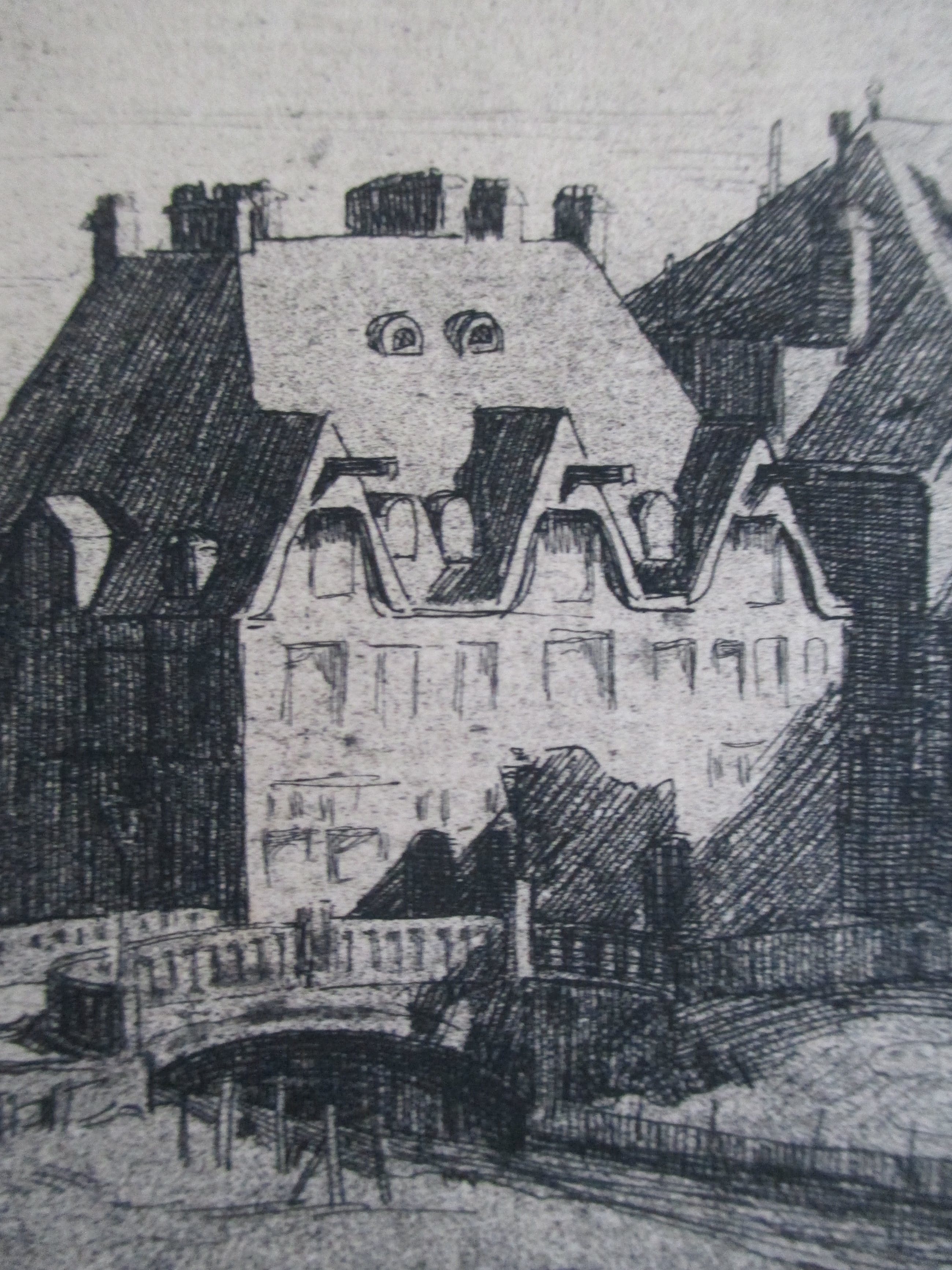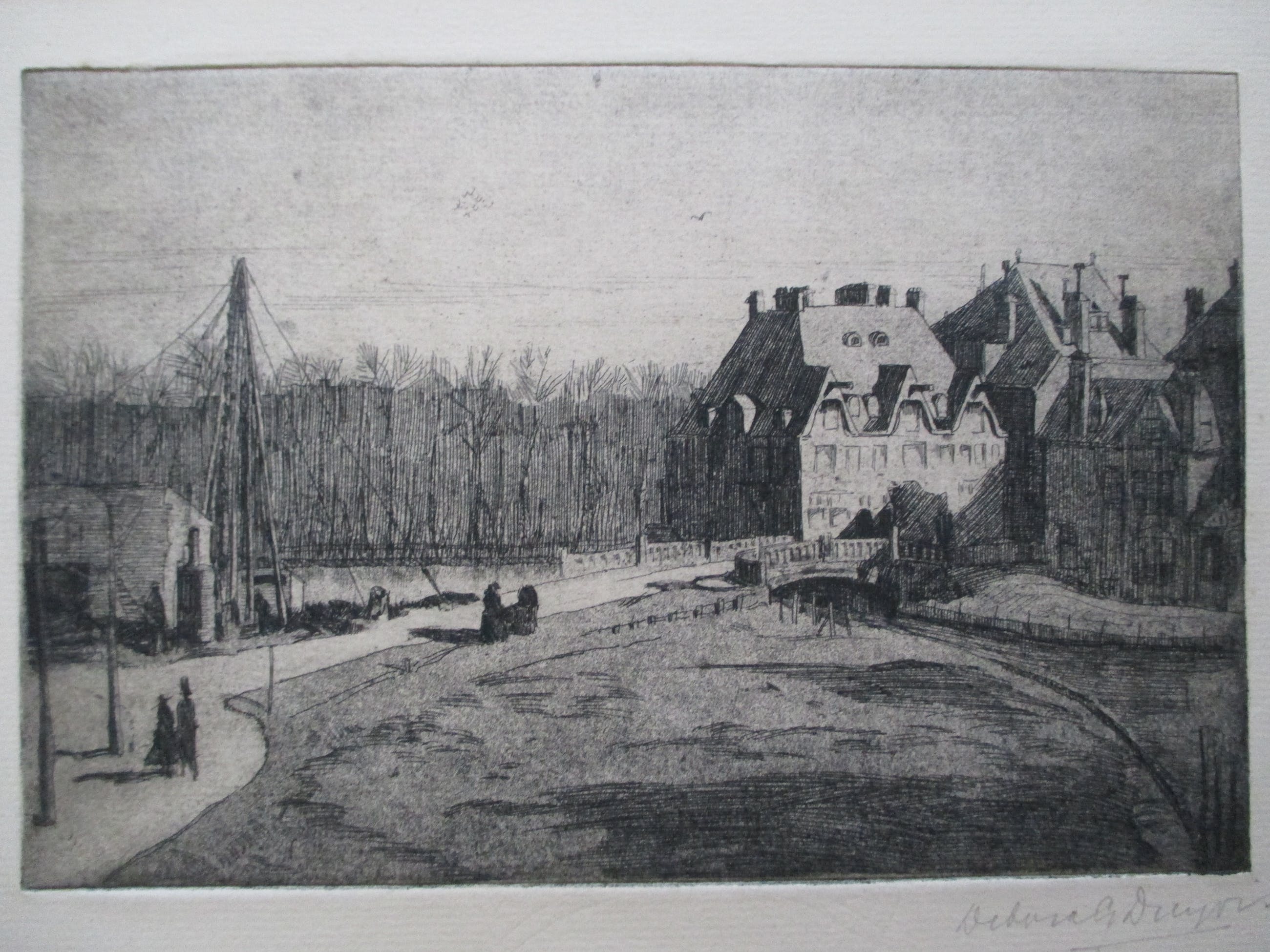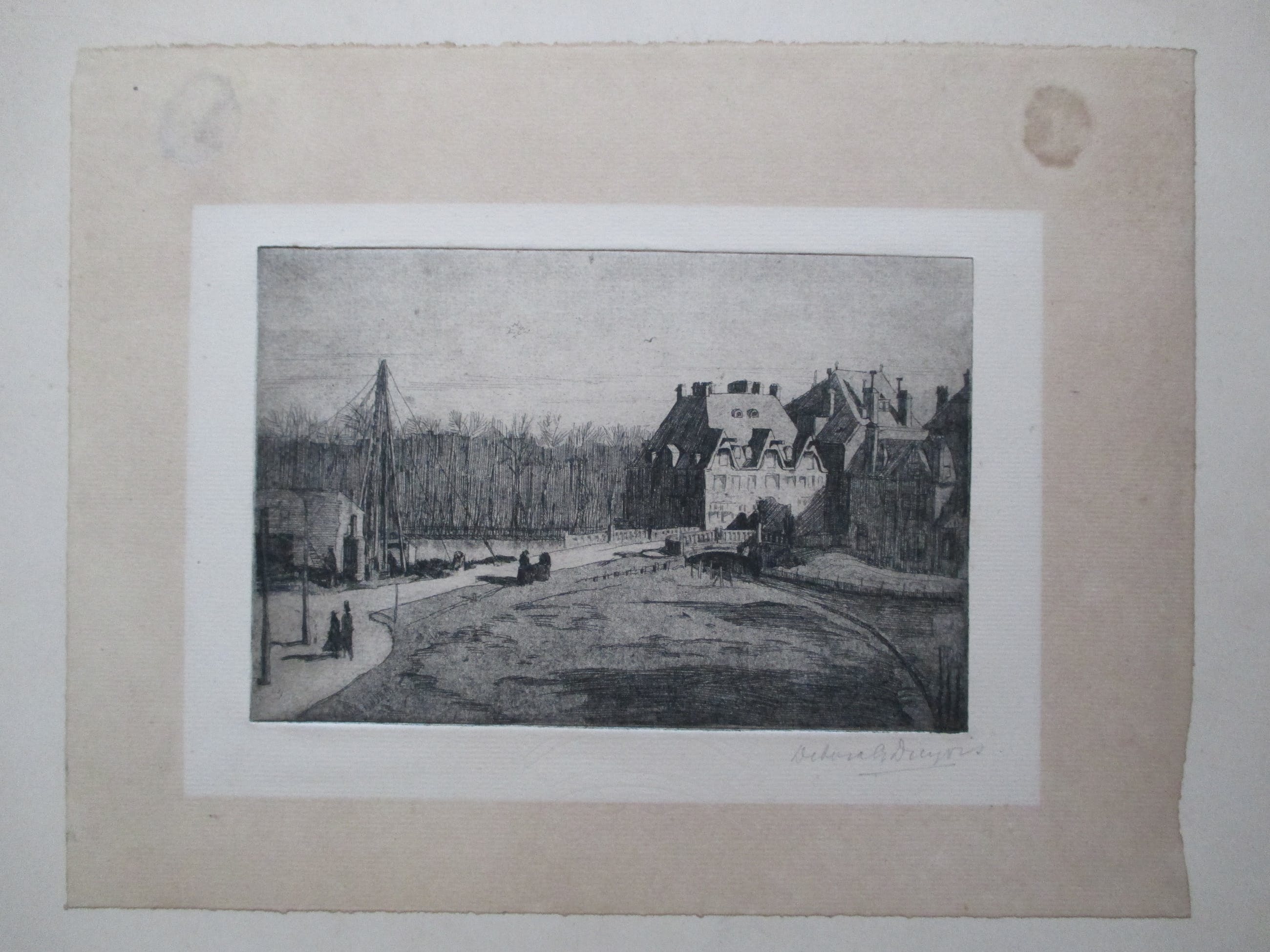 Ets van Debora Duyvis, r.o gesigneerd. Geplaatst in eenvoudig passe-partout.