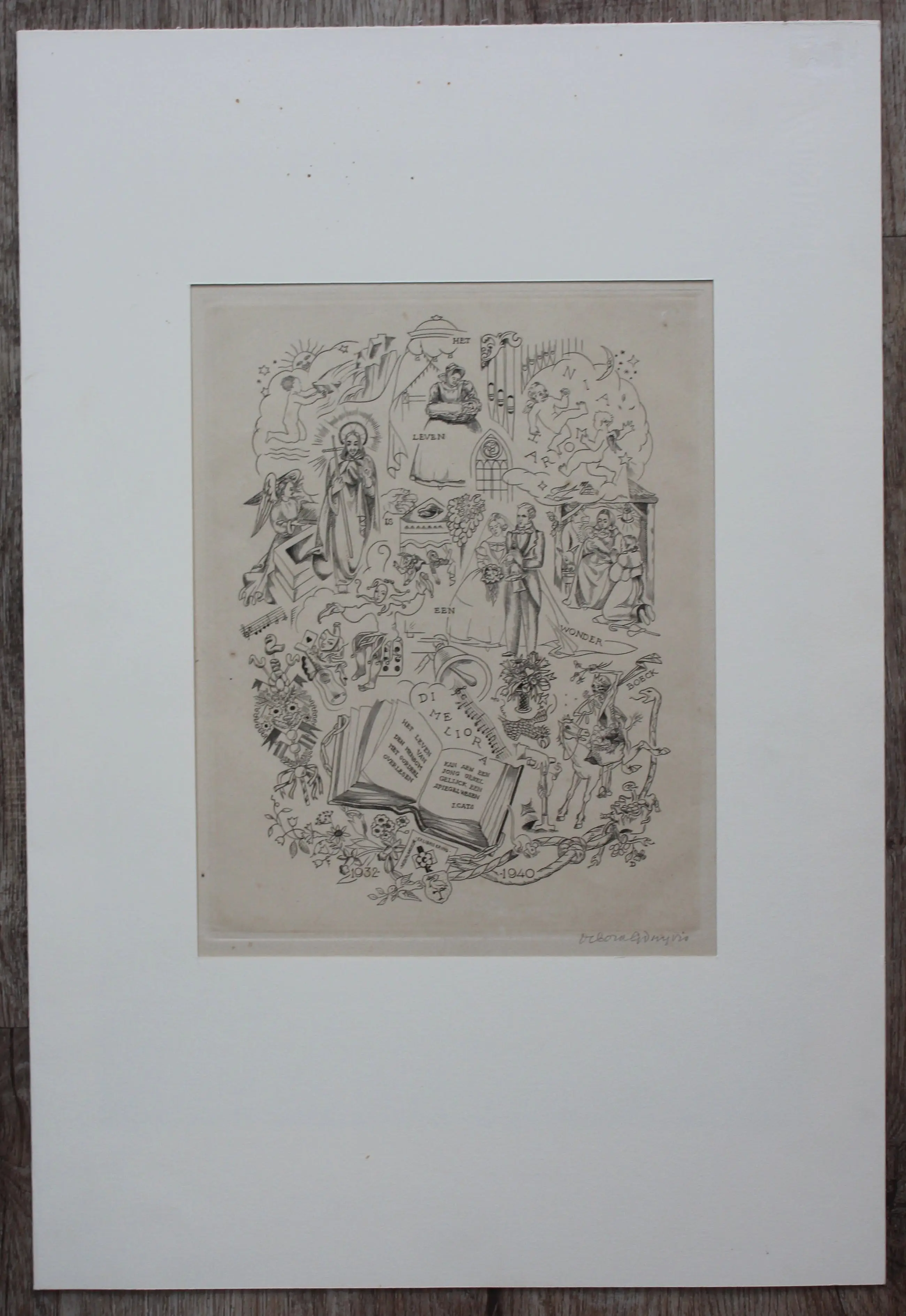 Ets van Debora Duyvis. Afm. blad incl passepartout: H50 x b34cm. Afmetingen voorstelling: H24 x b18cm. Het werk is rechts onderaan, met potlood, gesigneerd door de kunstenares. De authenticiteit van dit werk wordt volledig gegarandeerd. Een certificaat van echtheid kan, op verzoek, worden gemaild.