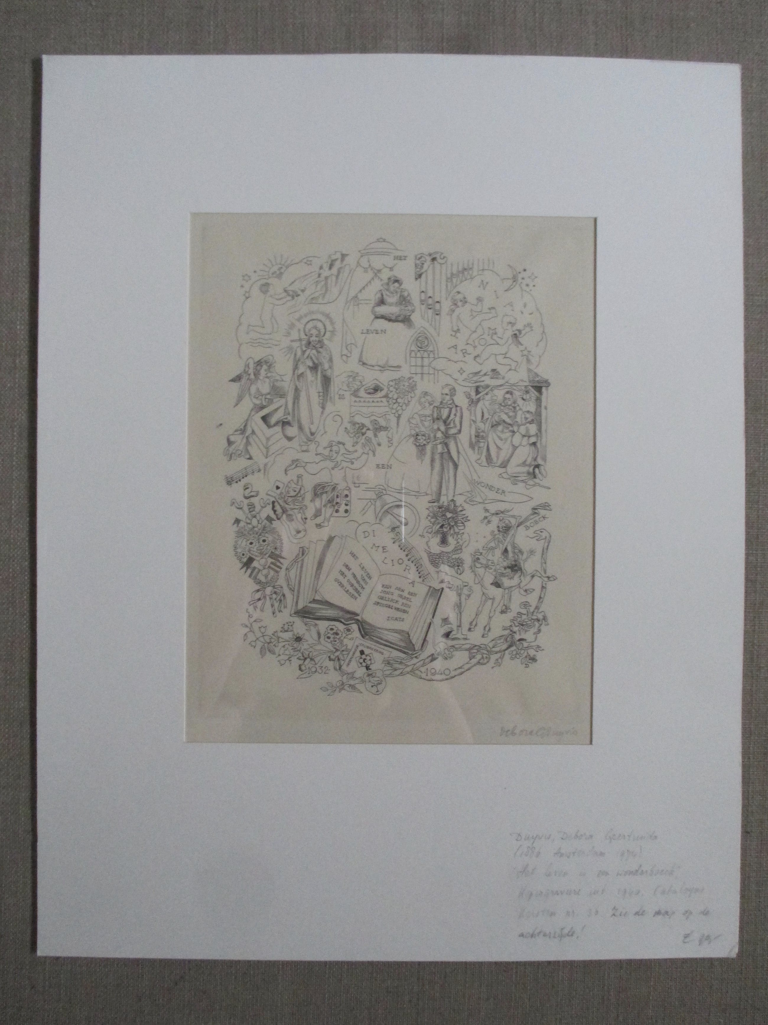Gravure van Debora Duyvis, gesigneerd in potlood. Geplaatst (bovenaan getipt) in eenvoudig passepartout. Verzending tussen twee platen, 8 euro, aangetekend 9,65