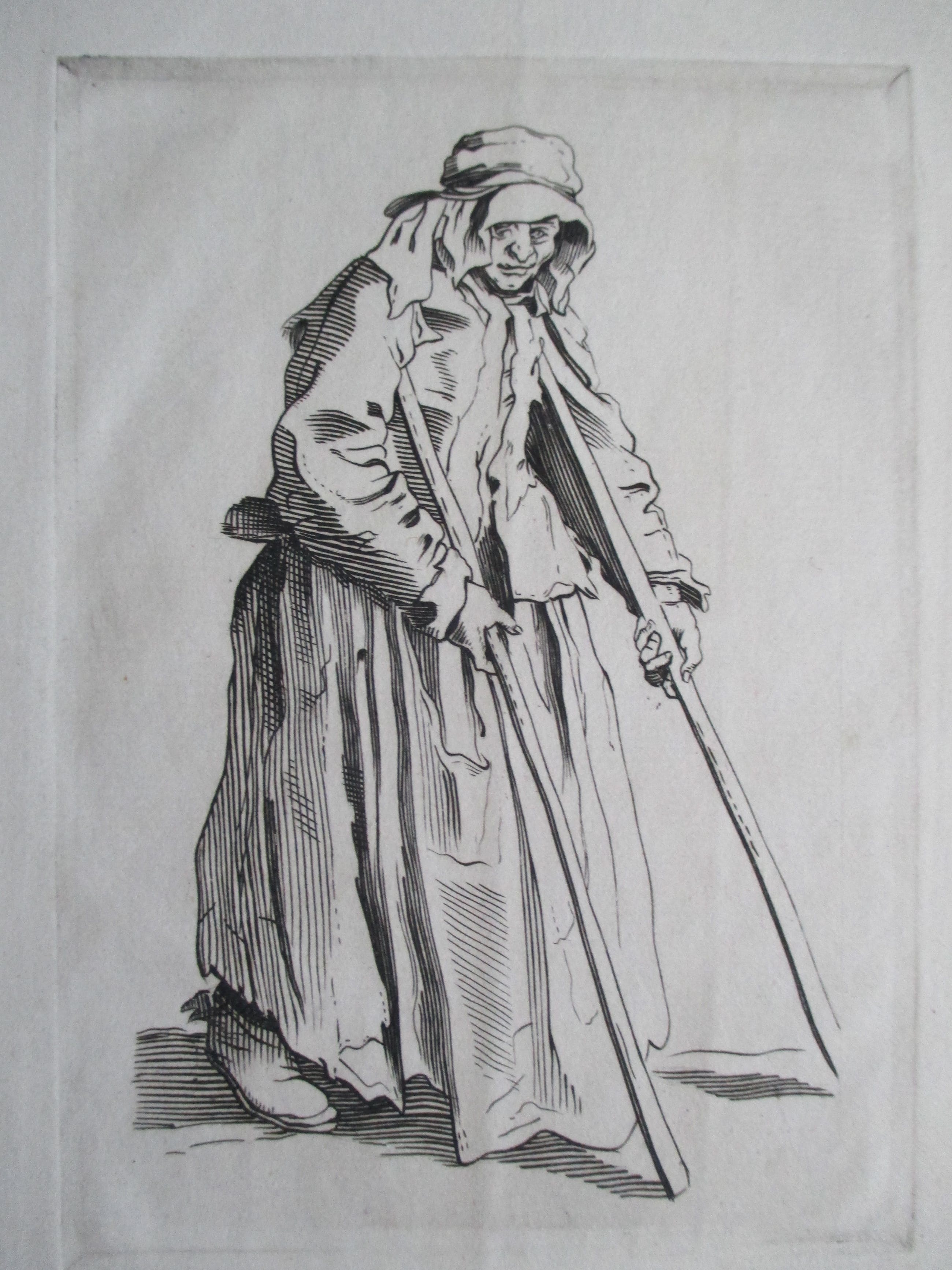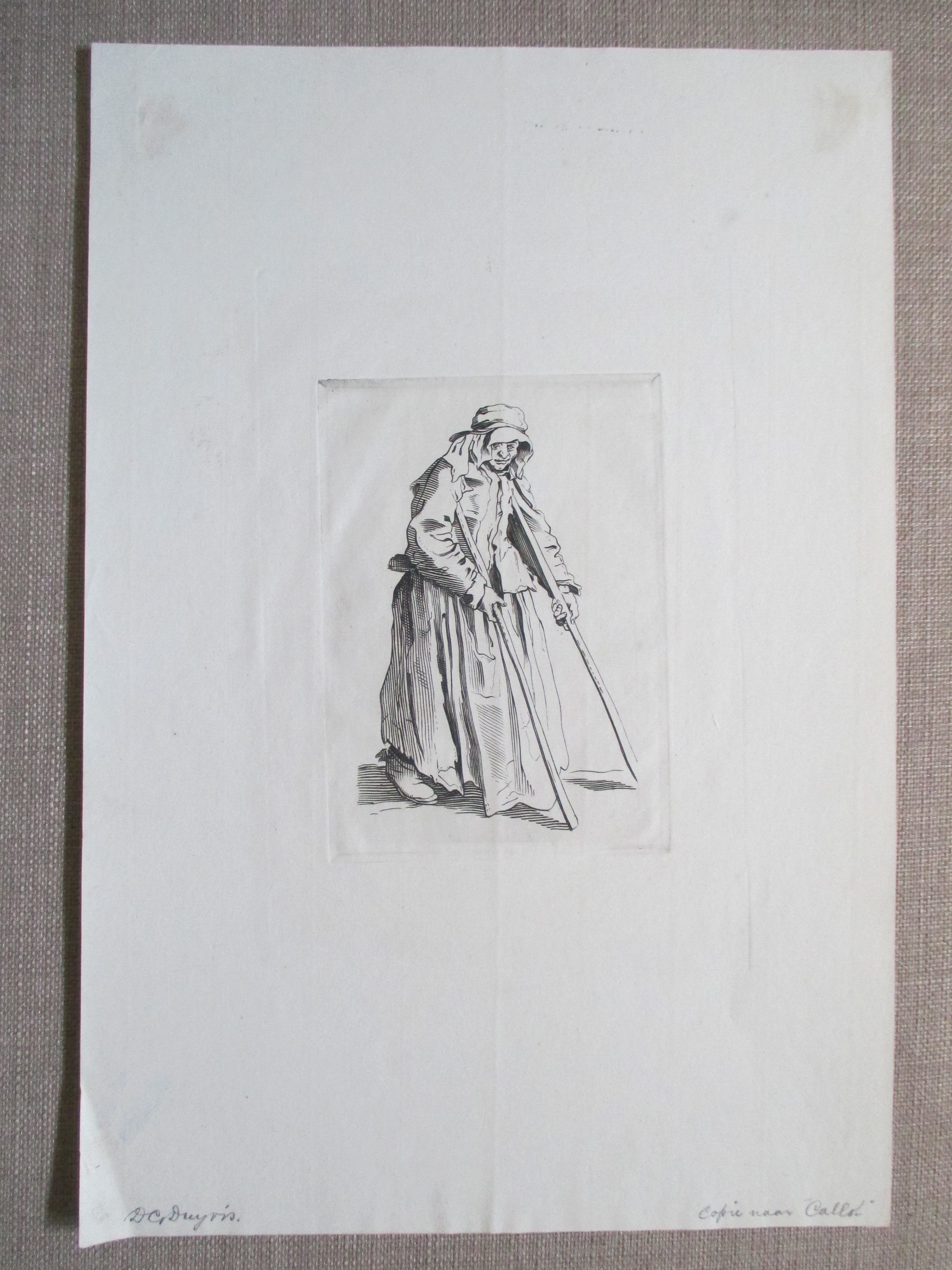 Gravure van Debora Duyvis, 'copie naar Callot', gesigneerd l.o in potlood. Afm. beeld 14x10 cm.