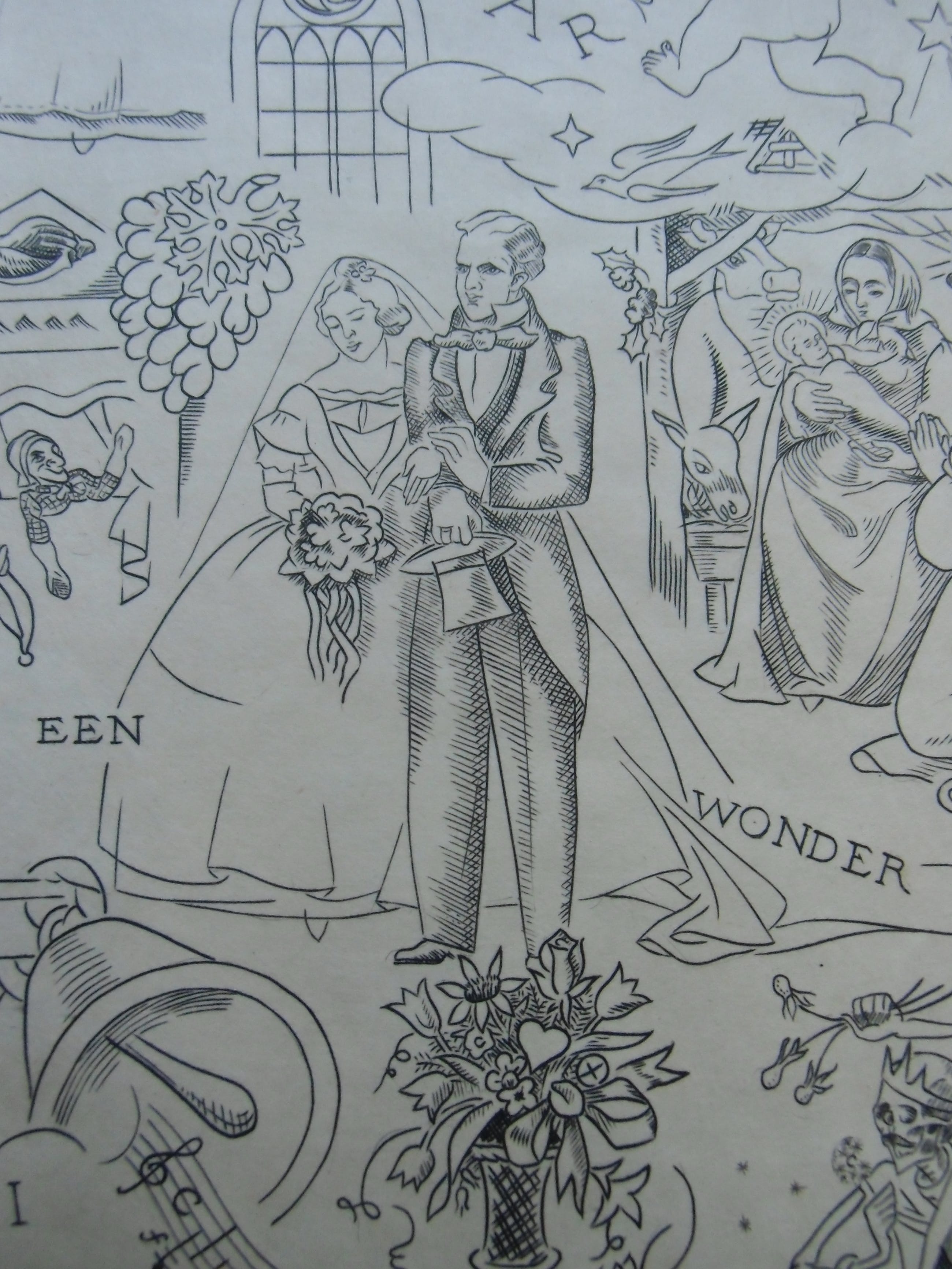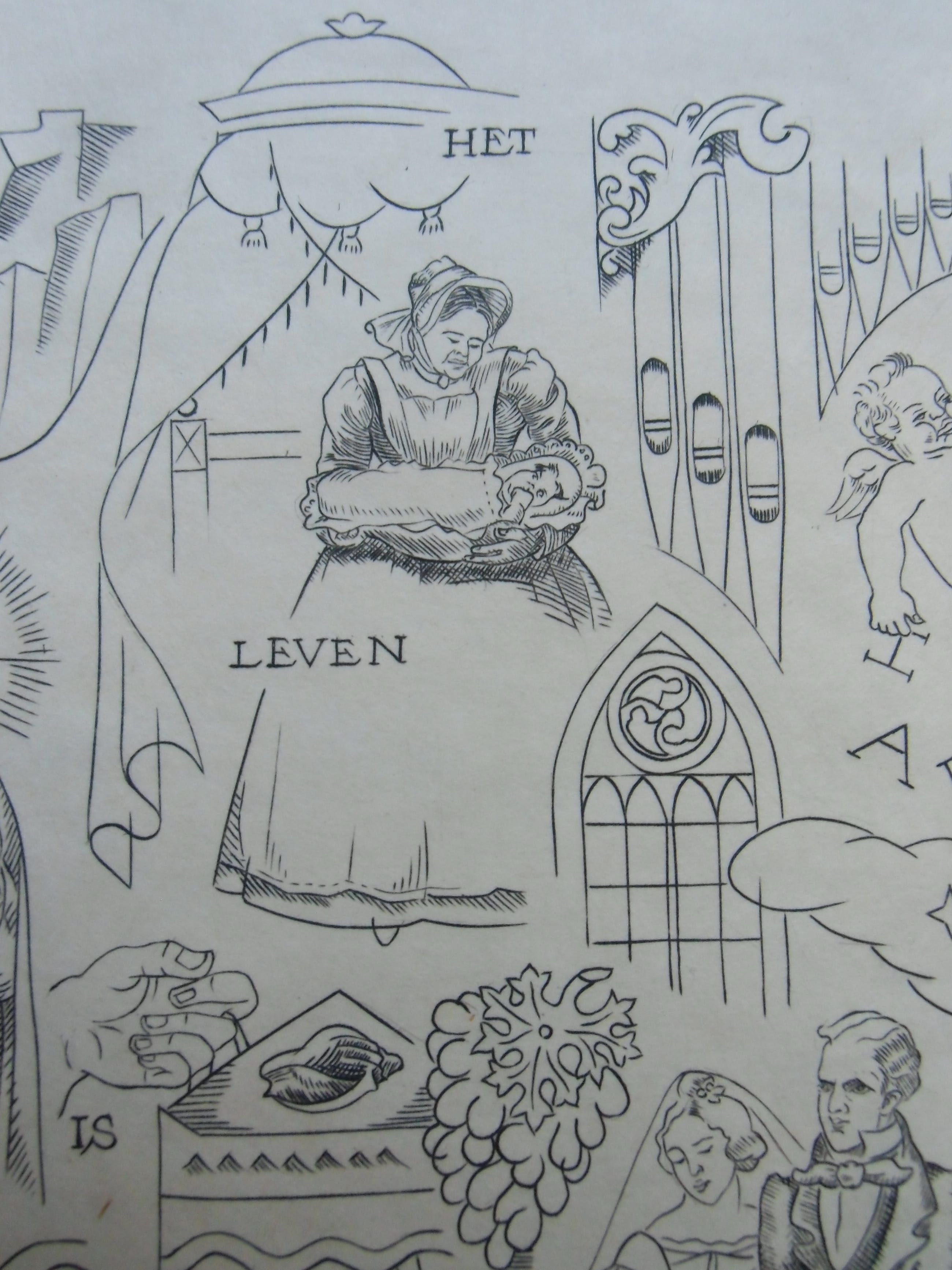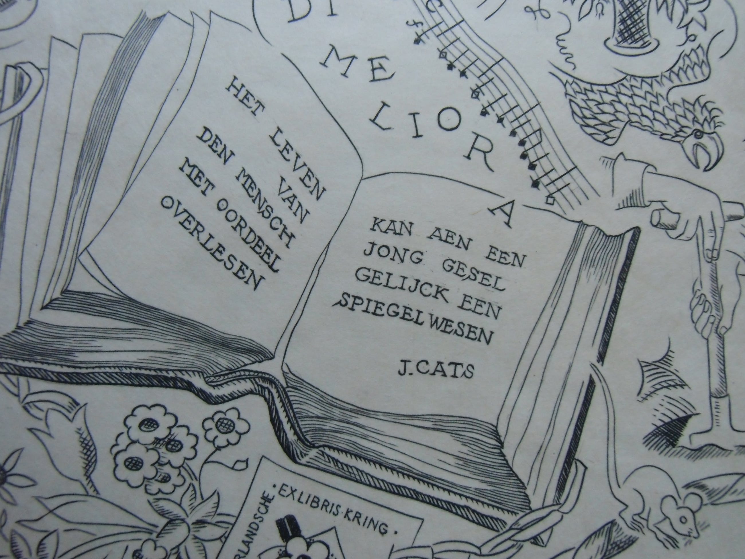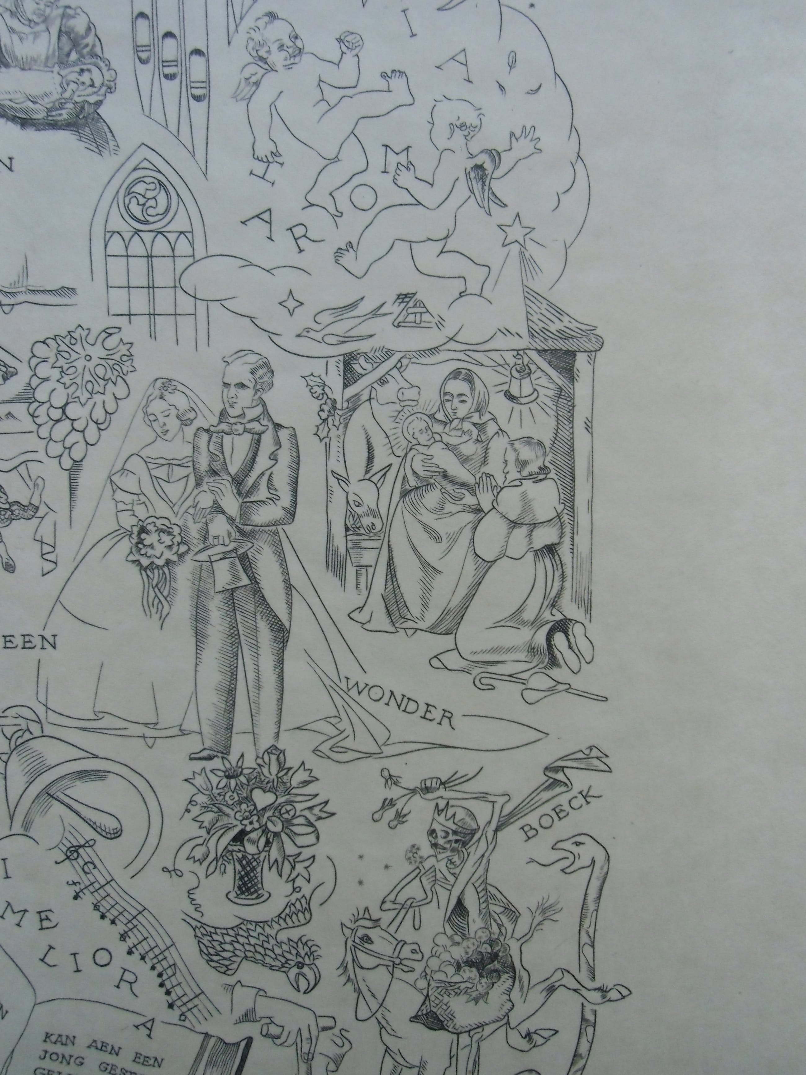 Kopergravure uit 1940 op chamois papier vélin. Afmeting beeld 23.3 x 16.7 cm. Blad 40 x 29.5 cm. Zeer goede conditie. Uitgave van de Nederlandsche Exlibris Kring. Gesigneerd met potlood.