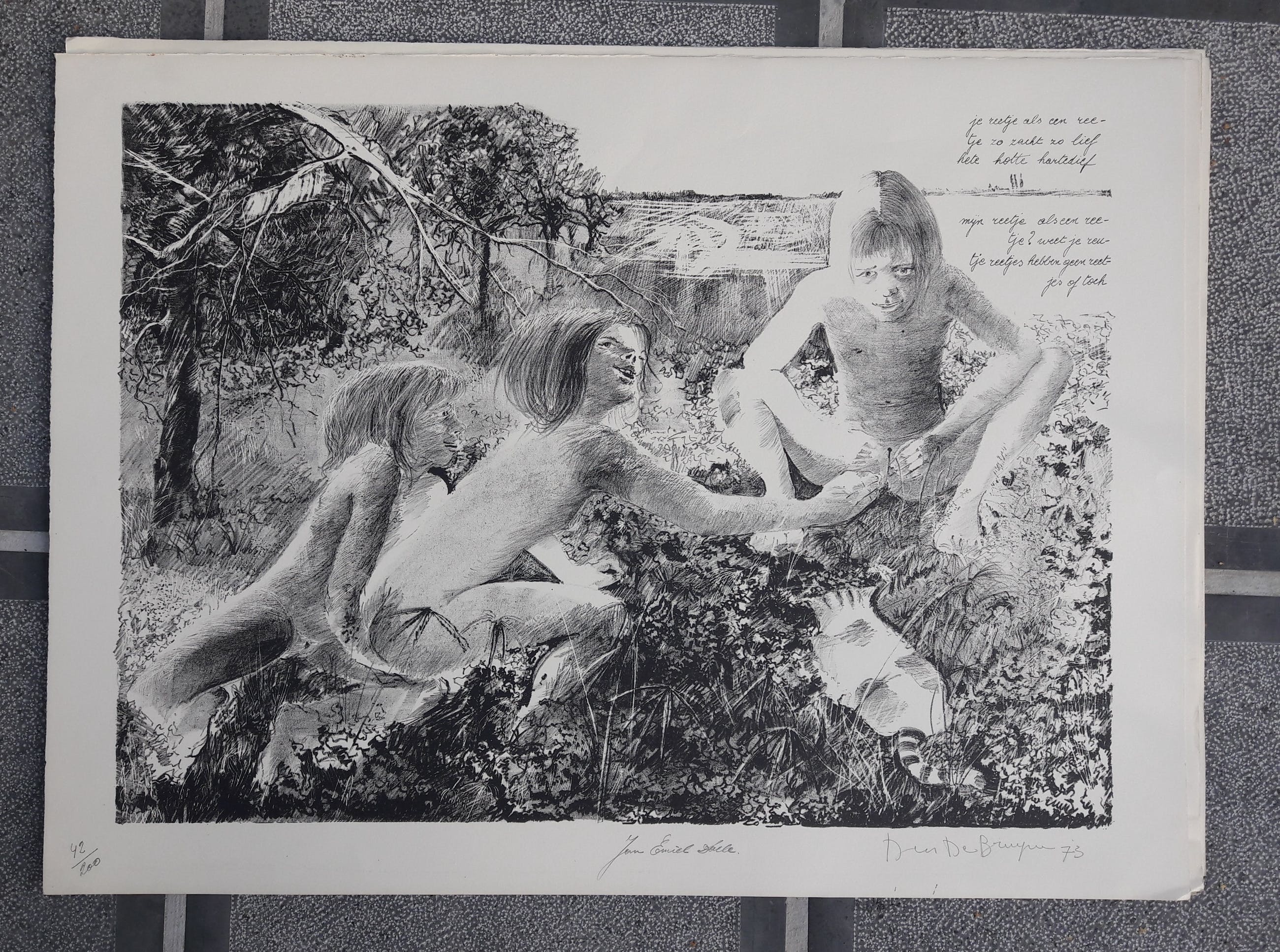 Lithografie van Dees De Bruyne met een erotisch gedicht van Jan Emiel Daele uit reeks 'Eros', uitgebracht in 200 exemplaren