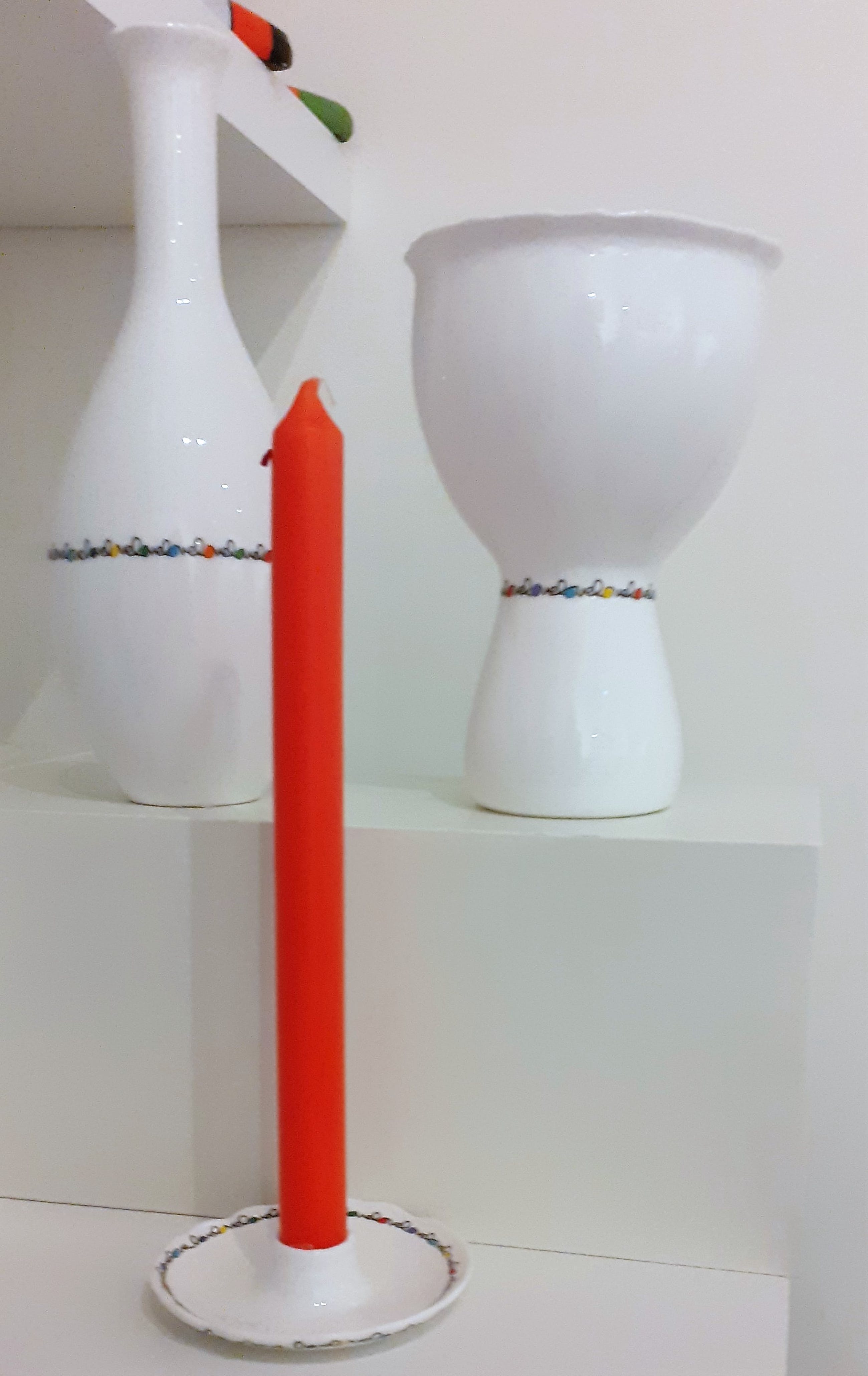 In originele verpakkingen met certificaat! Nieuwstaat! Driedelige set 'Love': 2 vazen (resp. 27 cm en 20 cm hoog) en 1 kandelaar