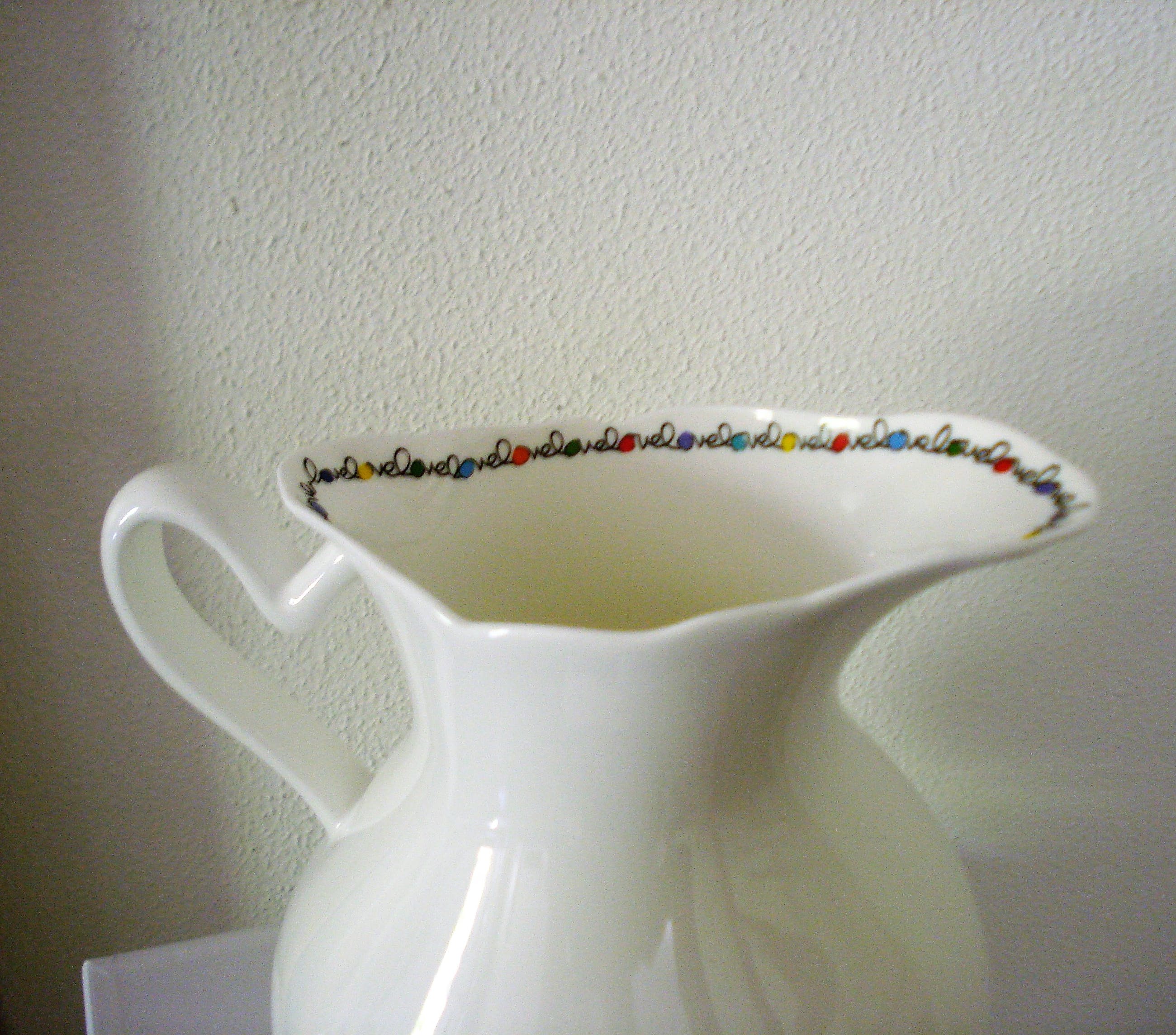 Tafelkan 'Love' (let op leuke uitgekiende details, bijv. het handvat in de vorm van een hart) te gebruiken als vaas, sapkan, melkkan etc.
