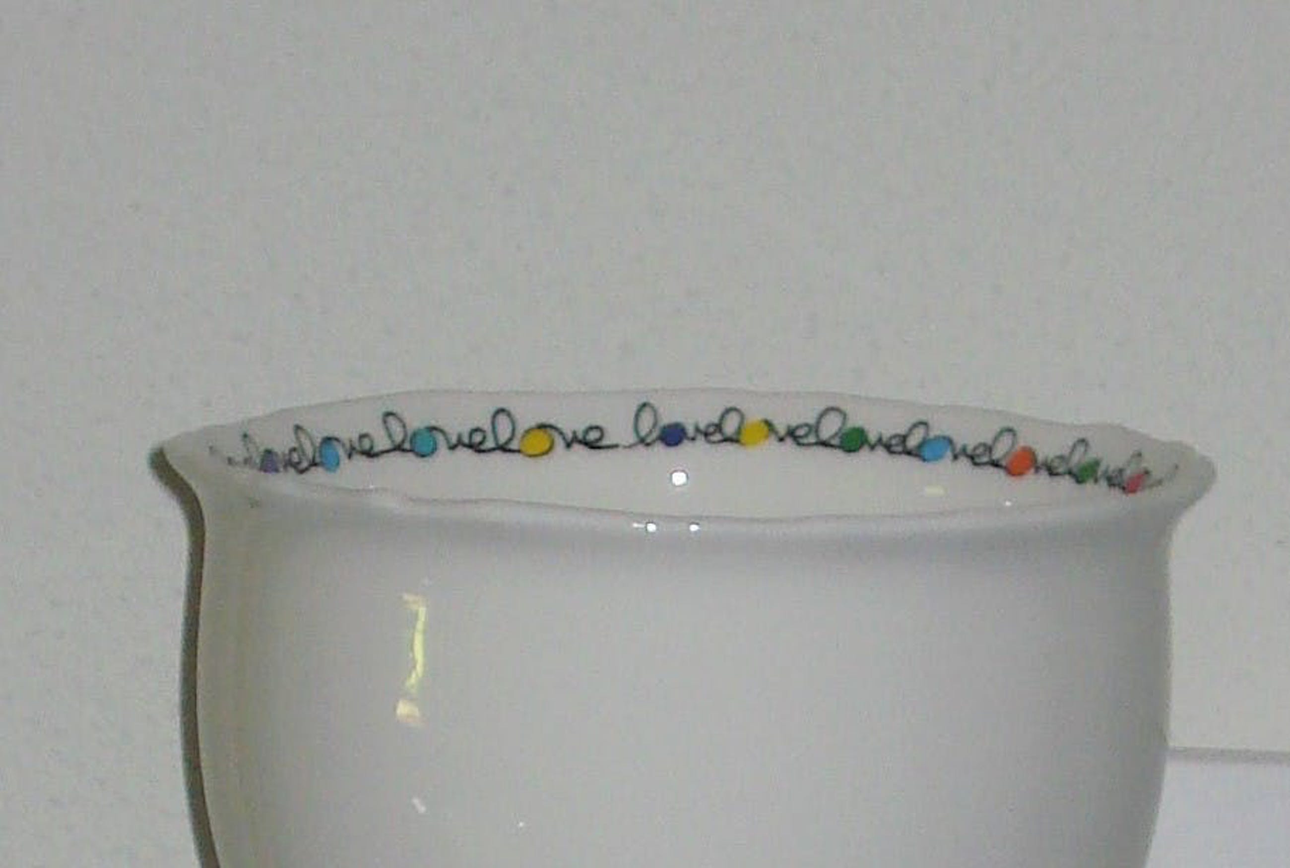 Woorden kunnen ons herinneren aan de essentie van het leven. Delphine Boëls hele bestaan draait om liefde. Liefde is leven en leven is liefde, omdat liefde de kunst van het leven is. Het woord ‘Love’ beheerst dan ook de essentie van de The Art of Dining-collectie van Delphine for SERAX. Delphine Boël is het vierde kind van Koning Albert II van België en zijn minnares Sybille de Selys-Longchamps en bekend als non conformistisch kunstenares.