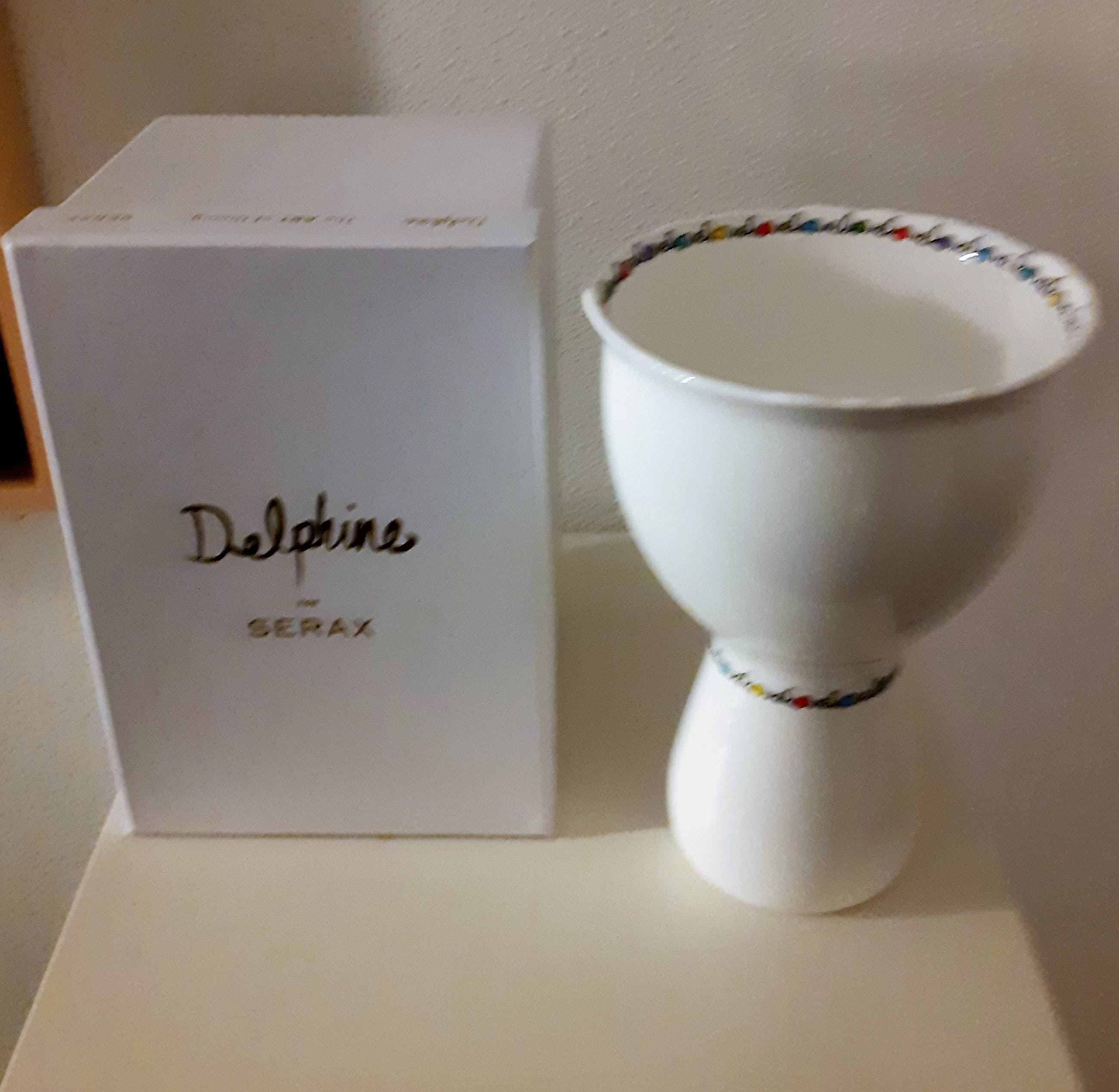 In originele verpakking met certificaat! Nieuwstaat! Vaas 'Love' Woorden kunnen ons herinneren aan de essentie van het leven. Delphine Boëls hele bestaan draait om liefde. Liefde is leven en leven is liefde, omdat liefde de kunst van het leven is. Het woord ‘Love’ beheerst dan ook de essentie van de The Art of Dining-collectie van Delphine for SERAX. De brokkelige rand verwijst naar Delphine’s voorliefde voor papier mâché. Delphine Boël is het vierde kind van Koning Albert II van België en zijn minnares Sybille de Selys-Longchamps en bekend als non conformistisch kunstenares.