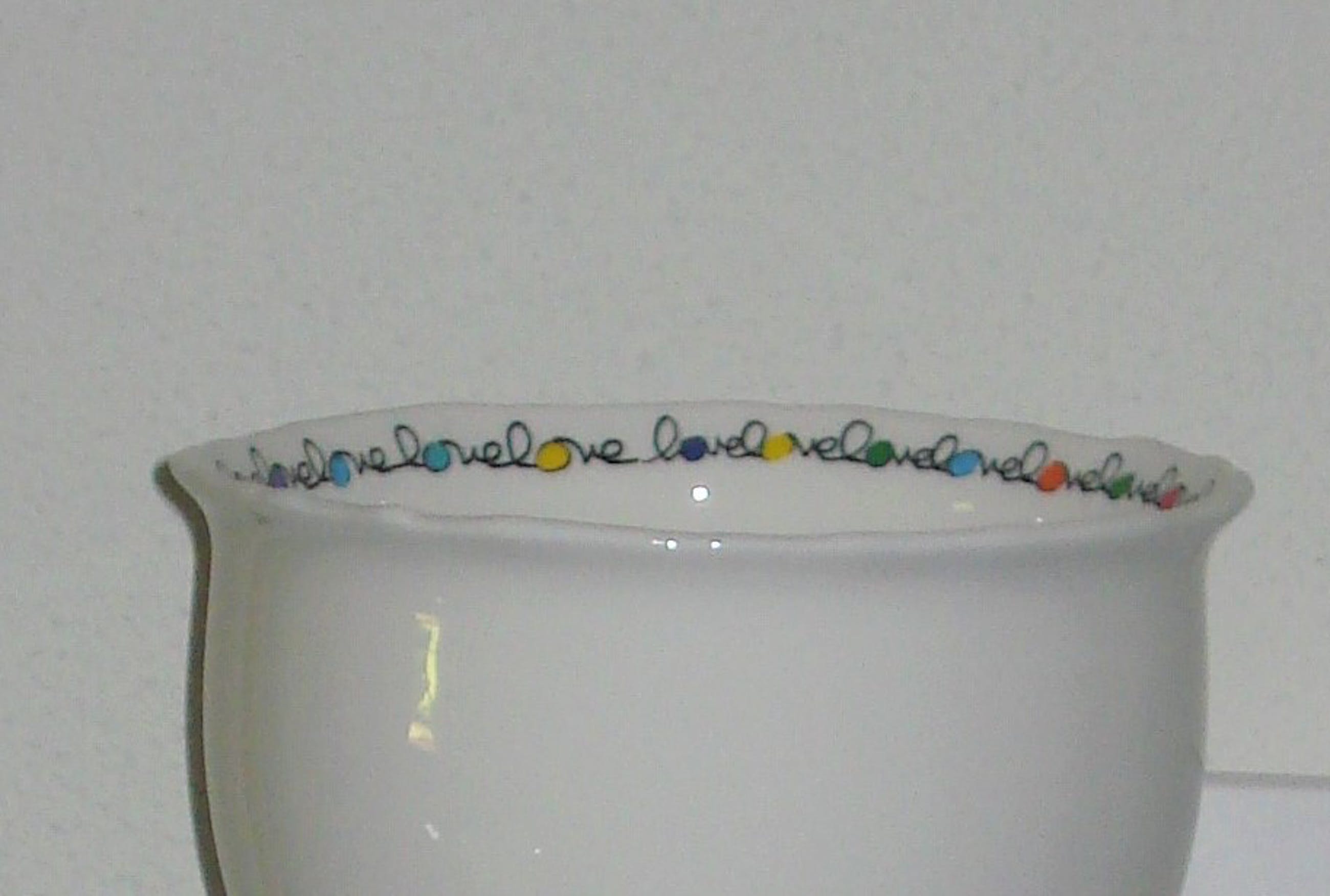 In originele verpakking met certificaat! Nieuwstaat! Vaas 'Love' Woorden kunnen ons herinneren aan de essentie van het leven. Delphine Boëls hele bestaan draait om liefde. Liefde is leven en leven is liefde, omdat liefde de kunst van het leven is. Het woord ‘Love’ beheerst dan ook de essentie van de The Art of Dining-collectie van Delphine for SERAX. De brokkelige rand verwijst naar Delphine’s voorliefde voor papier mâché. Delphine Boël is het vierde kind van Koning Albert II van België en zijn minnares Sybille de Selys-Longchamps en bekend als non conformistisch kunstenares.