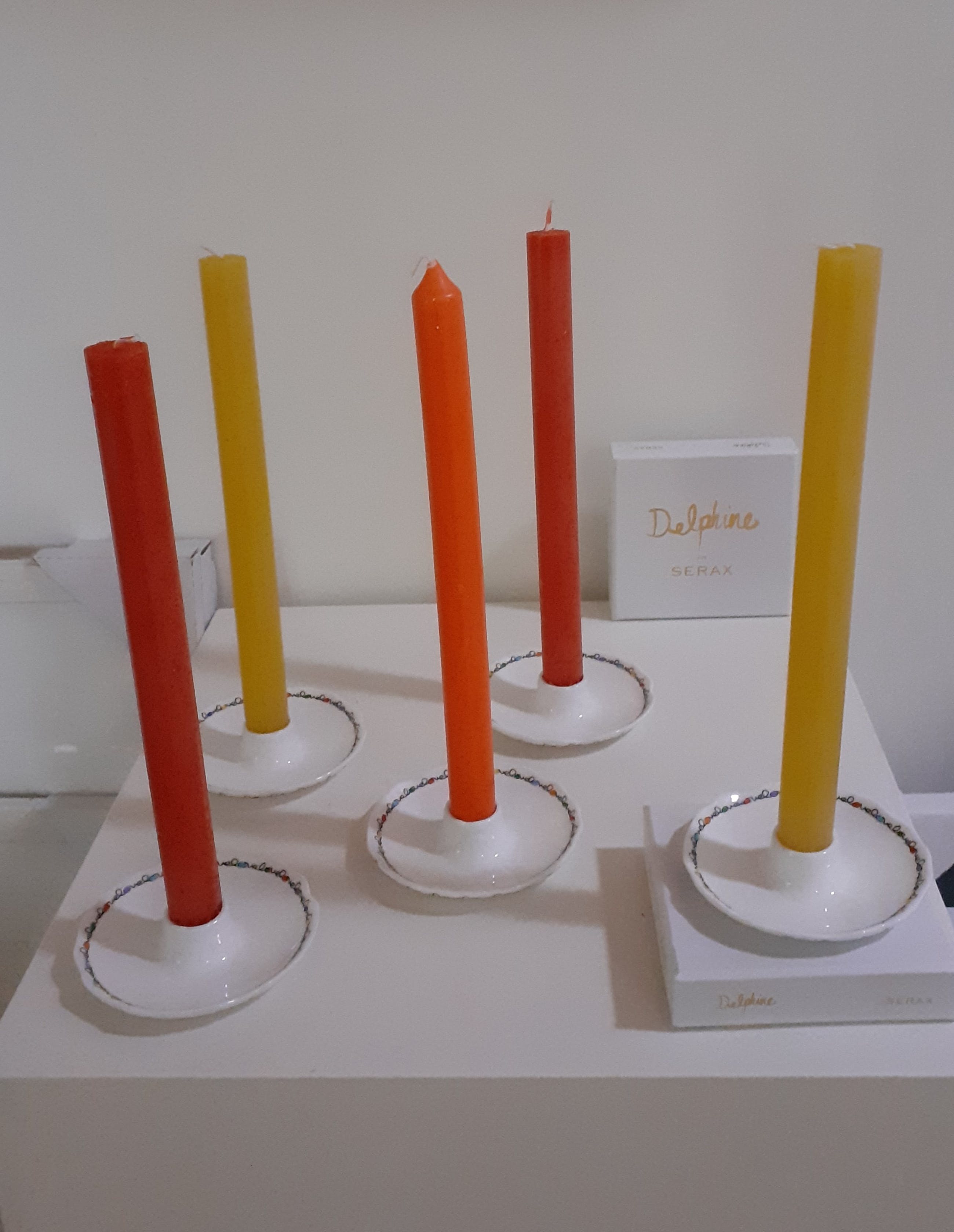 Vijf kandelaren 'Love 'uit The Art of Dining-collectie van Delphine for SERAX.Woorden kunnen ons herinneren aan de essentie van het leven. Delphine Boëls hele bestaan draait om liefde. Liefde is leven en leven is liefde, omdat liefde de kunst van het leven is. Het woord ‘Love’ beheerst dan ook de essentie van de The Art of Dining-collectie van Delphine for SERAX. De brokkelige rand van de stukken verwijst naar Delphine’s voorliefde voor papier mâché. Delphine Boël is het vierde kind van Koning Albert II van België en zijn minnares Sybille de Selys-Longchamps en bekend als non conformistisch kunstenares.