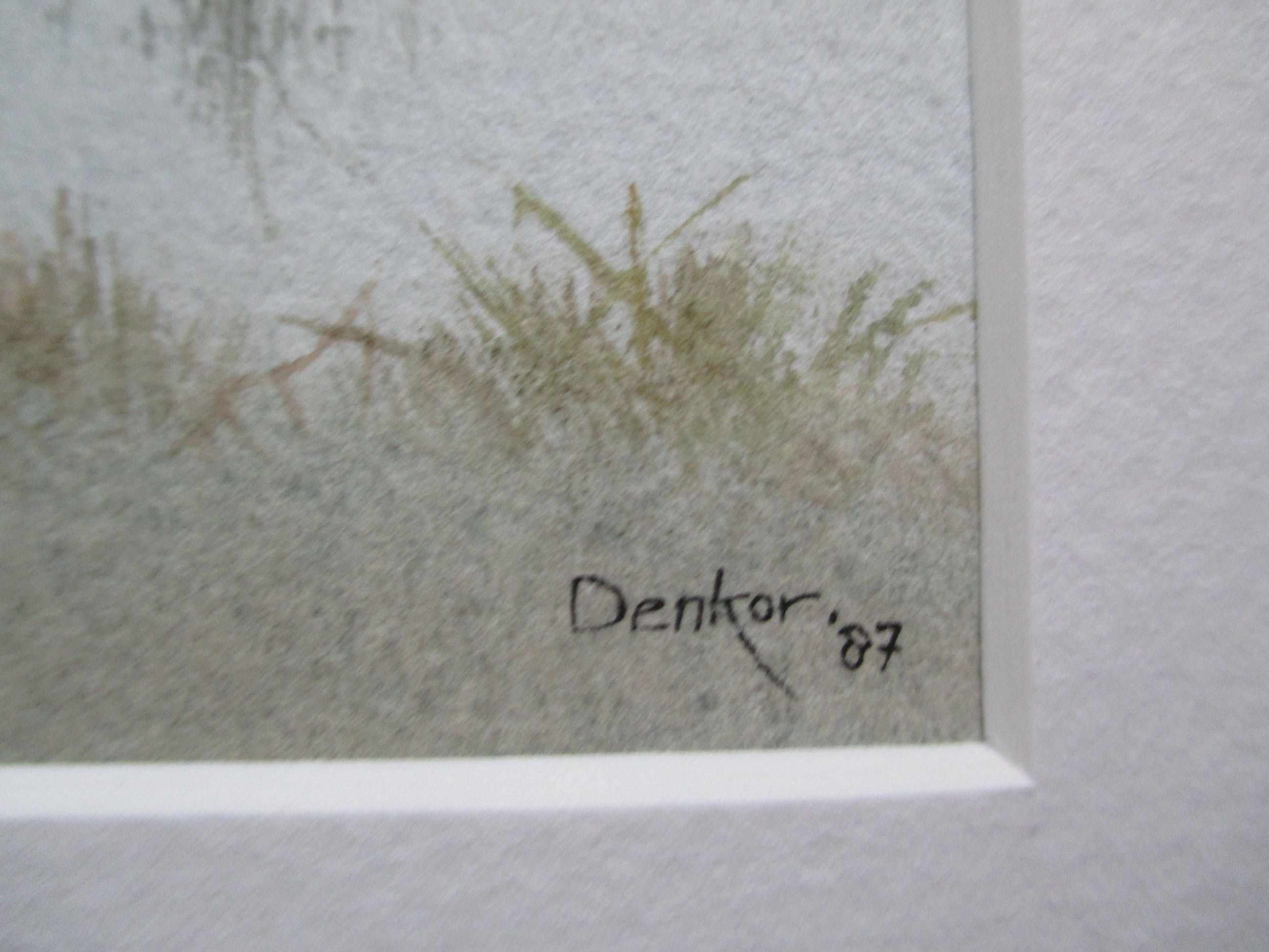 Aquarel van Denkor, r.o gesigneerd en gedateerd '87. Geplaatst achter passe-partout. Het geheel verkeert in perfecte staat.Verzending tussen twee plaatjes, 8 euro, aangetekend 9,65