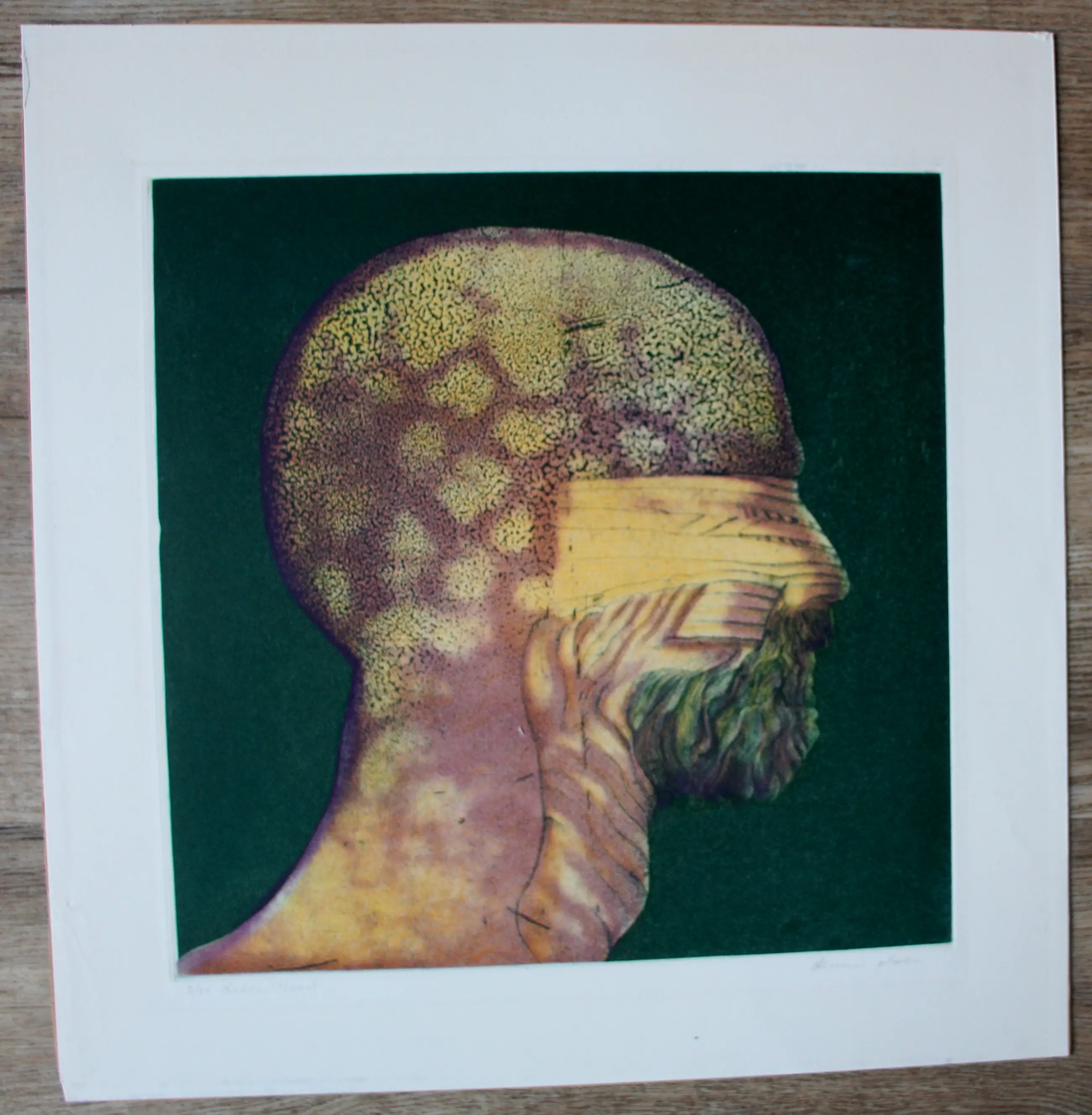 Ets van Dennis Olsen. Afmetingen blad: H47.5 x b46cm. Afmetingen voorstelling: H35 x b35cm. Het werk is rechts onderaan gesigneerd door de kunstenaar. De authenticiteit van het aangeboden werk wordt volledig gegarandeerd. Een certificaat van echtheid kan, op aanvraag, worden gemaild.