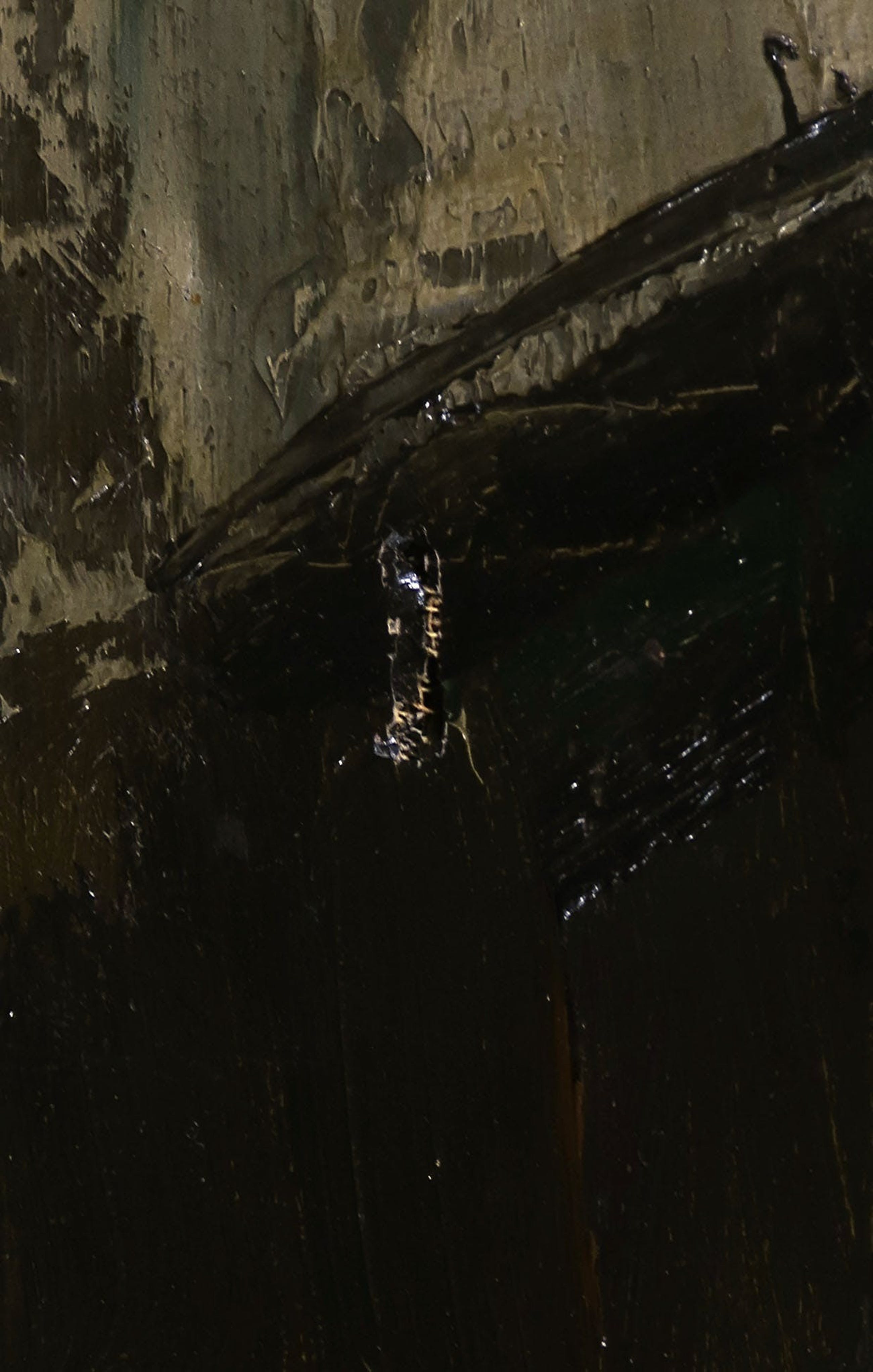 | Het werk verkeert over het algemeen in goede conditie, echter zit er een gaatje in het canvas aan de linkerzijde. Links en rechts zit er een klein deukje in het doek. | |