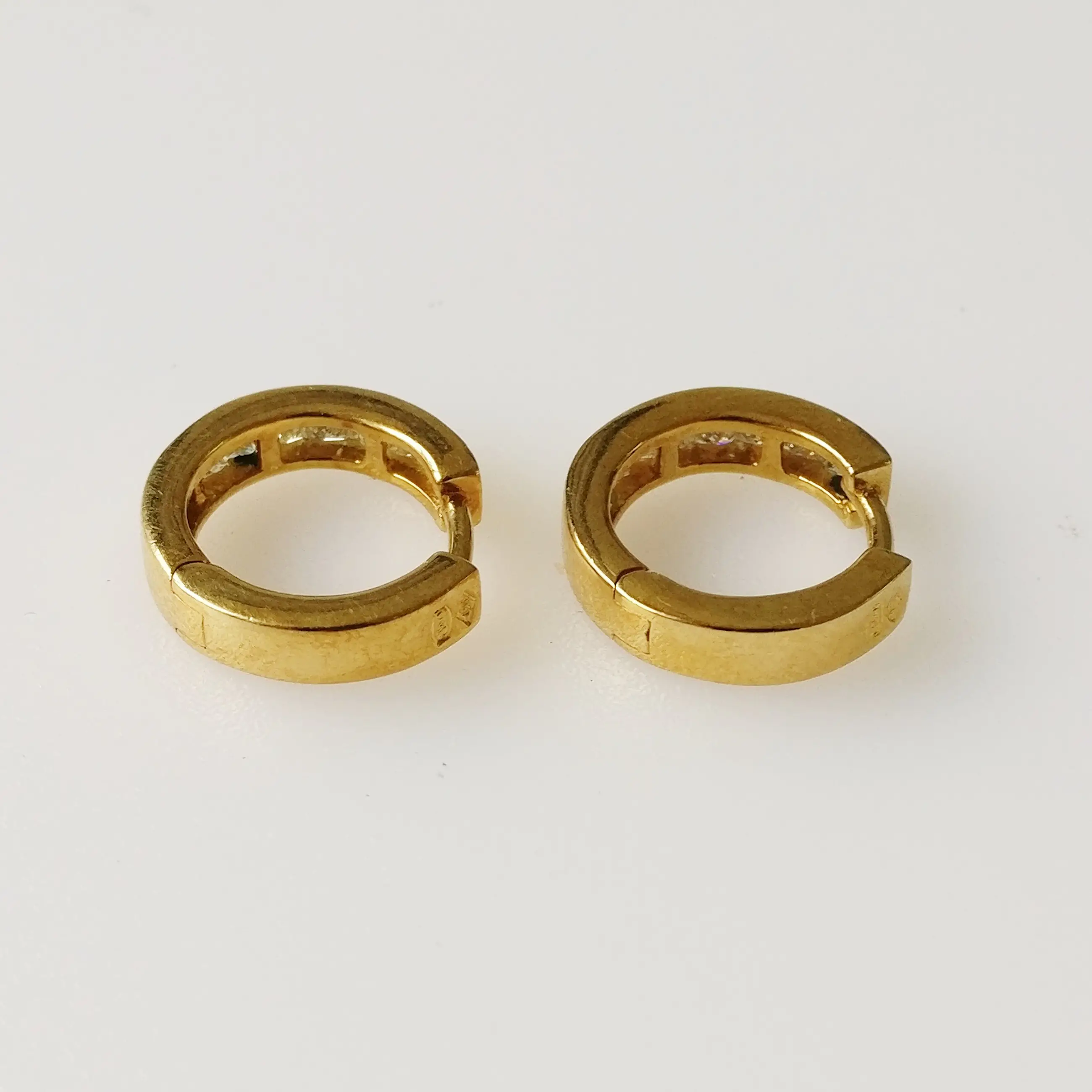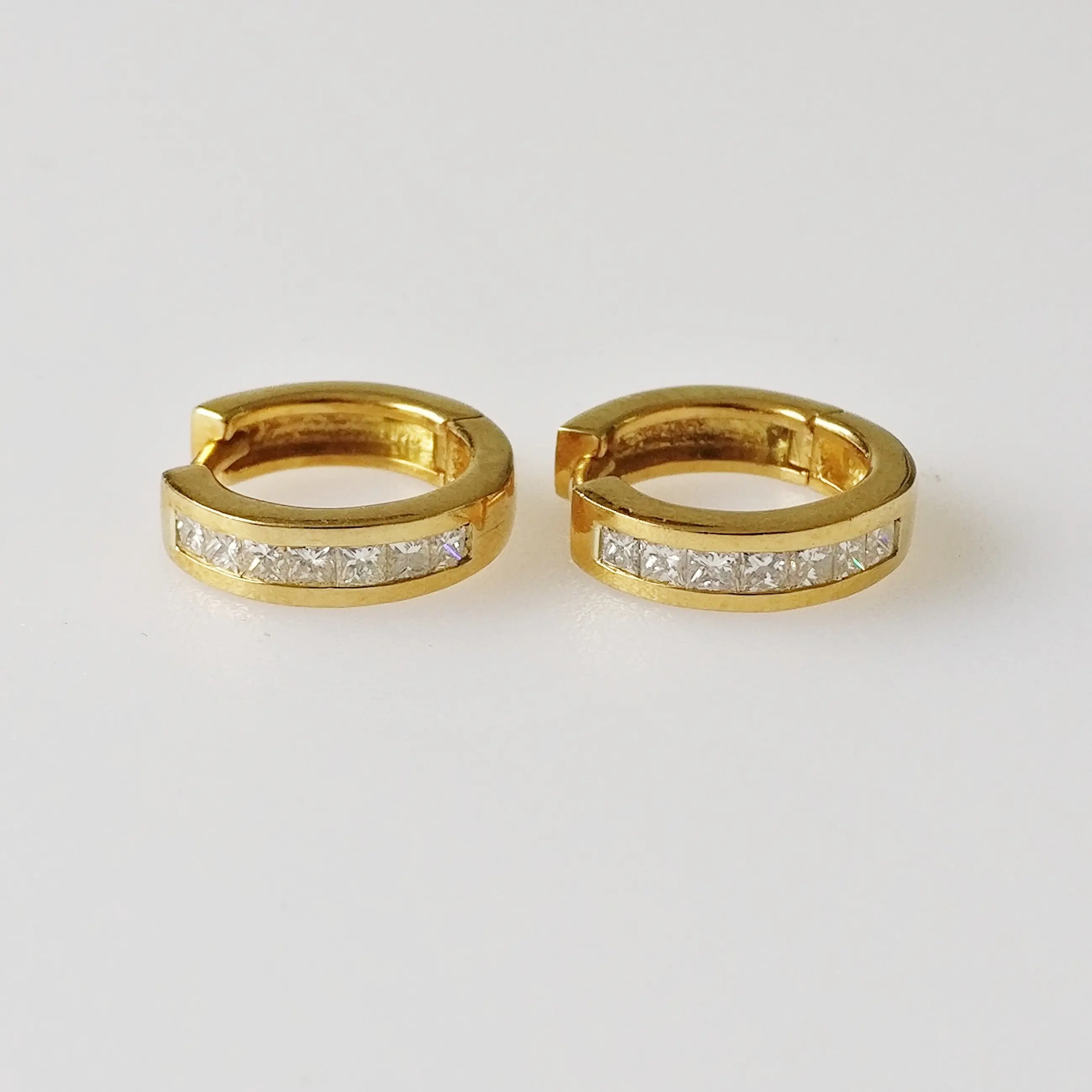 Diamanten oorbellen van 18kt geelgoud Brutogewicht: 4,99 gram Met 14 prinsesgeslepen natuurlijke diamanten met een totaal gewicht van 0,52 ct, EF VS-kwaliteit.