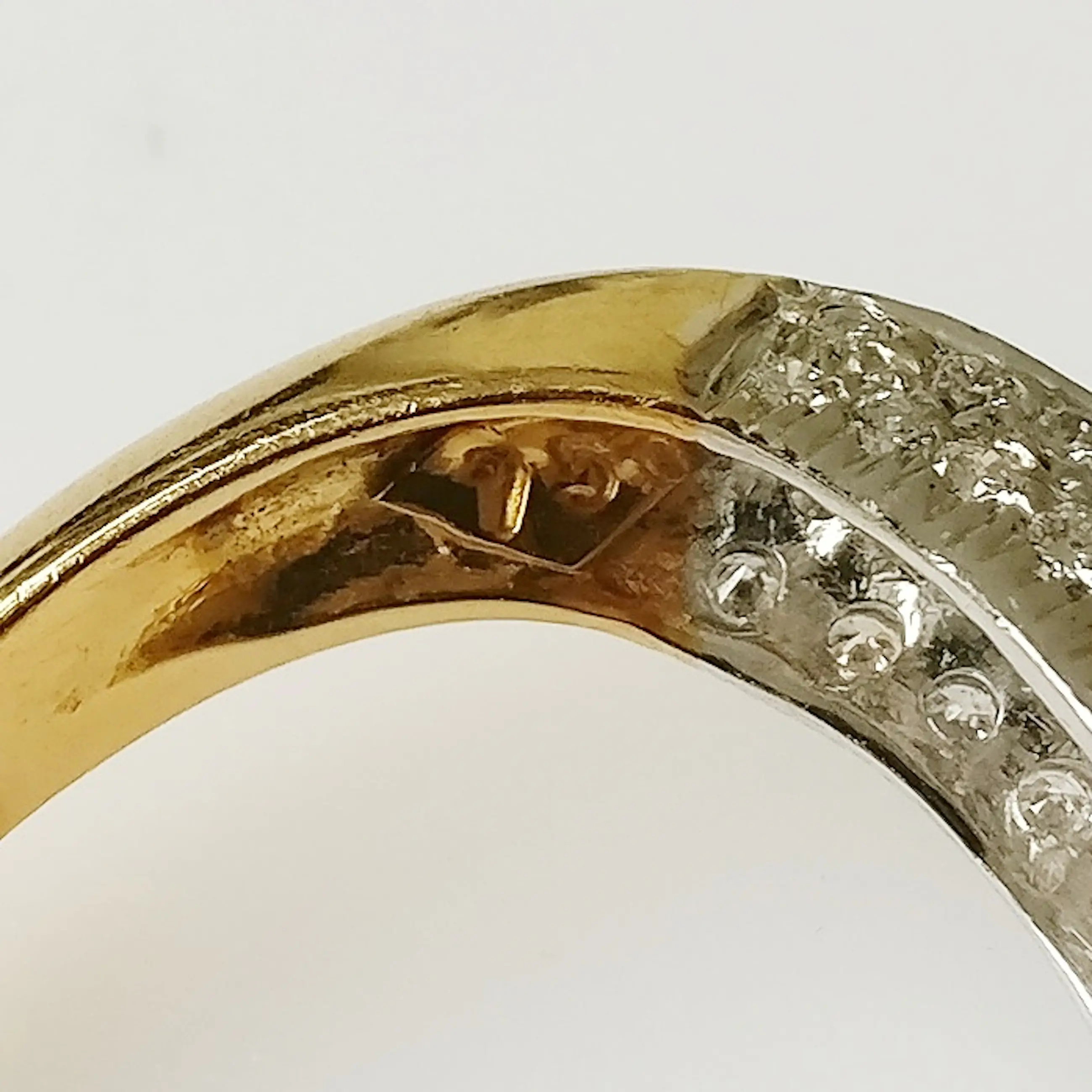 Diamanten ring van 18kt wit en geelgoud Brutogewicht: 6,36 gram Met 87 natuurlijke diamanten met een totaal gewicht van 2,61 ct, FG VS-SI.