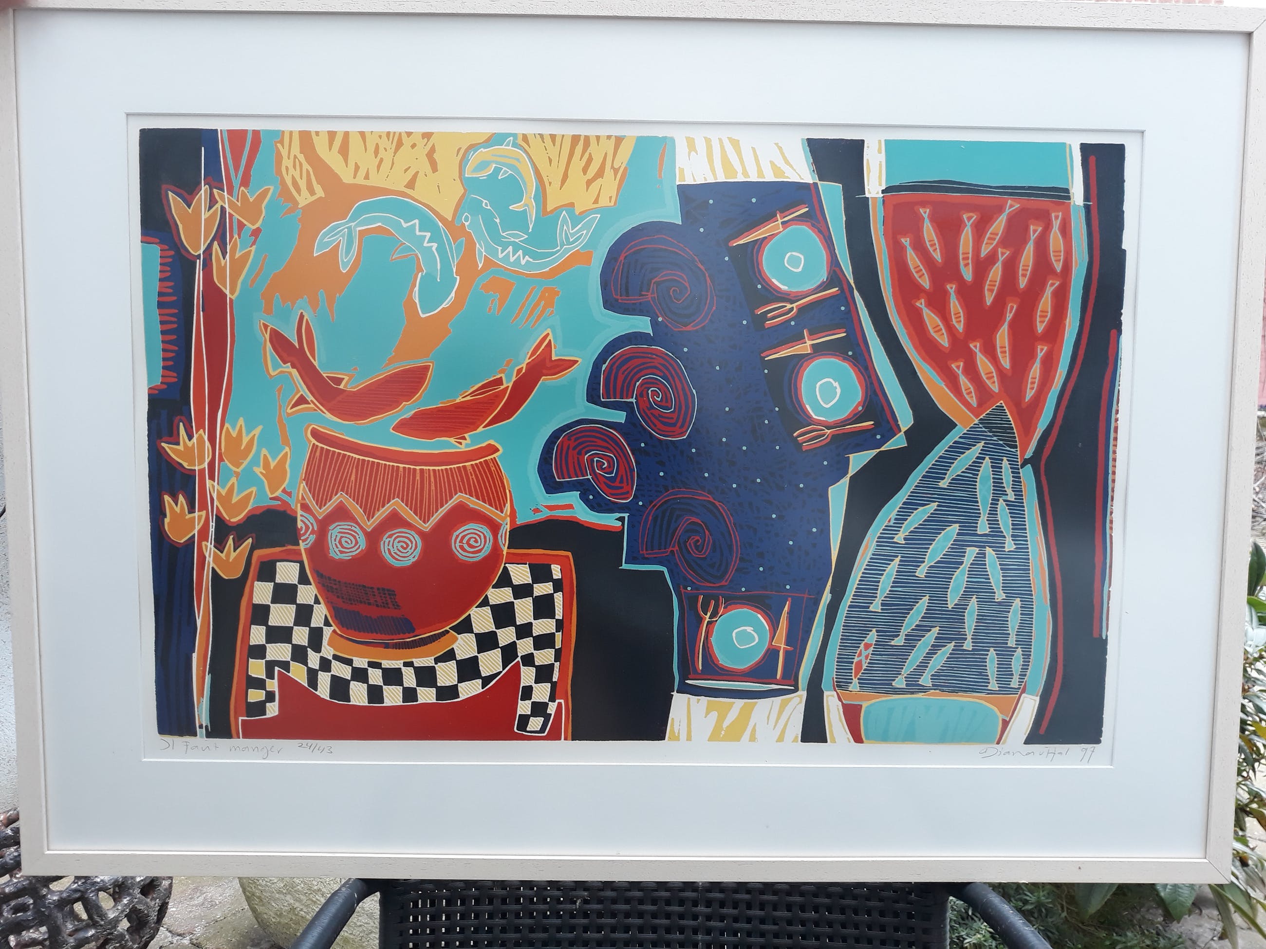 Door kunsthandel ingelijst, met ontspiegeld glas